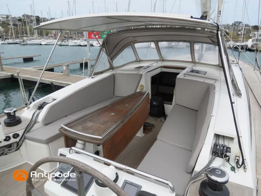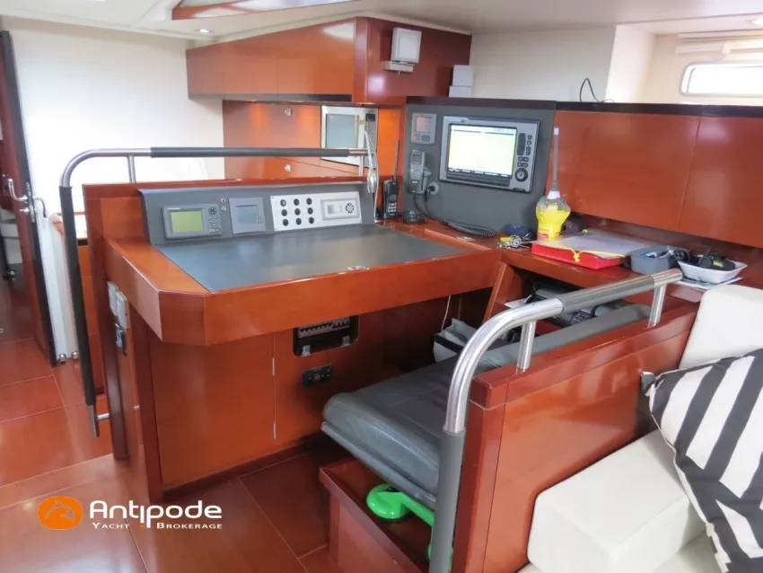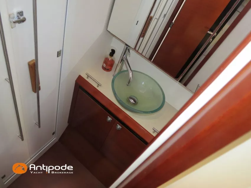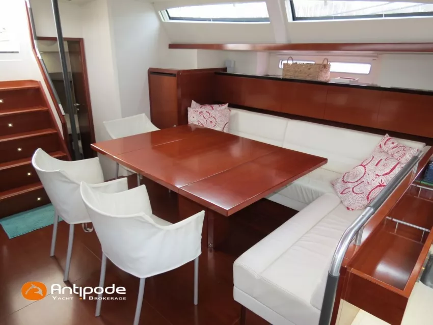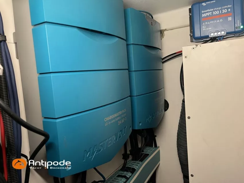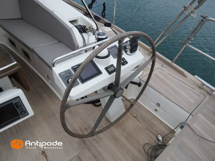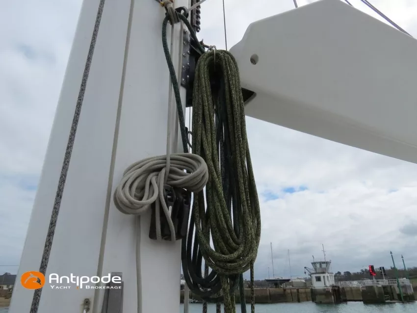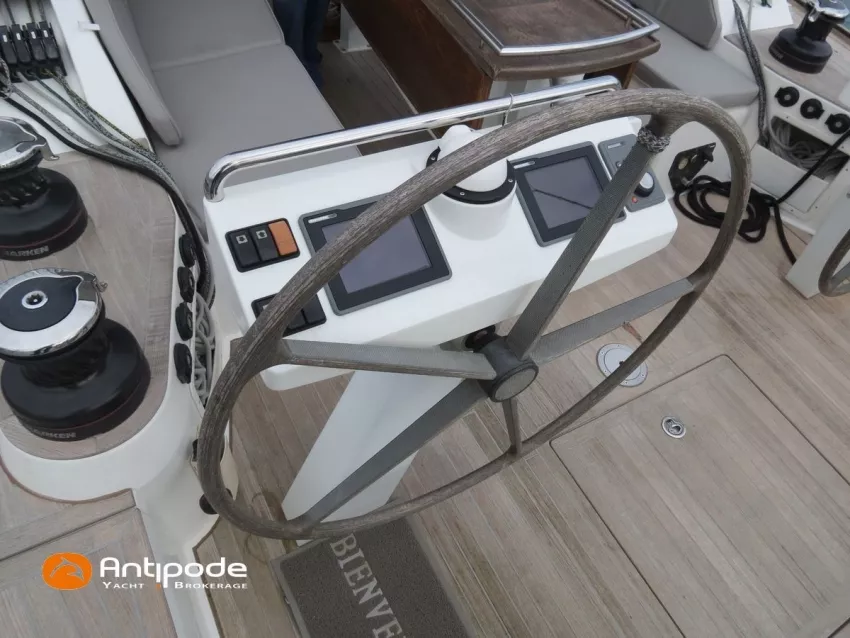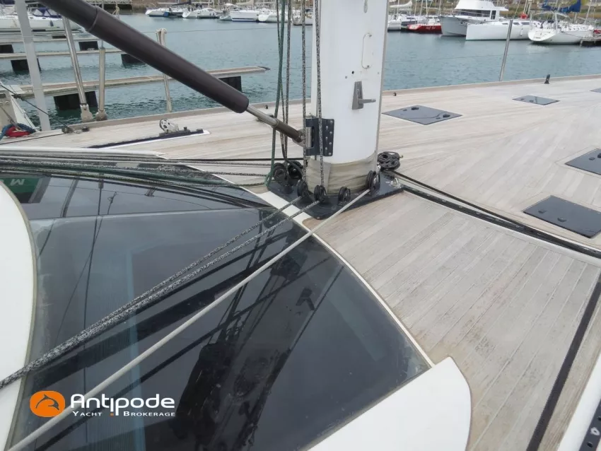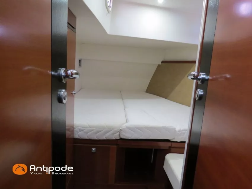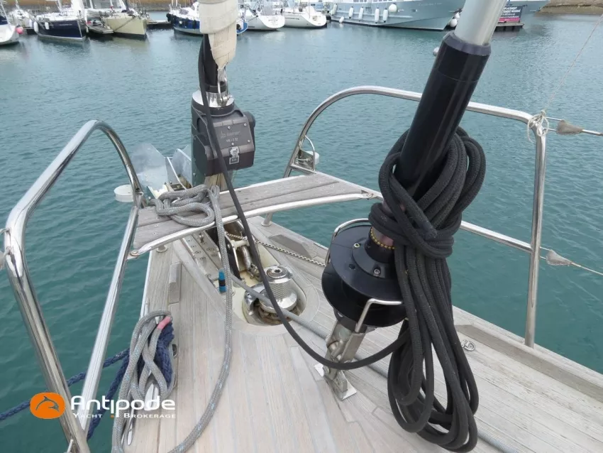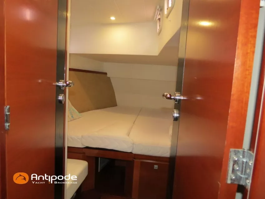 BORDEAUX 60, 2012, VOLVO D4, 180 cv (1714 h), Version d'aménagement intérieur 1 cabine latérale avant avec couchage sur babord, 2 cabines arrières, 3 cabinets de toilettes et douche, Selleries carré cuir blanc crème, 4 winchs électriques dans le cockpit - Harken (2 X 60 / 2 X 70), Passavants teck, Double barres à roue carbone, Capote de roof - 2022, Bimini hard top cockpit with solar panels, Prolongateur du bimioni top au dessus des postes de barres - 2022, Coussins de cockpit avec dossiers - 2025, Guindeau électrique - Lewmar V5 2000 W 24 V, Bossoirs avec palan de levage d'annexe - Simpson Davits, Mât aluminium Maréchal laqué blanc, 3 étages, posé sur la quille, Gréement courant Dyneema 2024, Grand-voile full batten 3 ris 95 sqm - Incidences Hydranet 2021, Rail de guindant de grand voile + chariots de lattes - Harken, Enrouleur de génois électrique - Bamar, Génois sur enrouleur 108 % 85 sqm - Incidences Hydranet 2021, Trinquette autovireuse sur enrouleur 45 sqm - Incidences Hydranet 2022, Pataras réglable, 2 vérins Hydrauliques Navtec, Pilote automatique in board Raymarine + controleur de course SPX 3, Centrale de navigation Raymarine ST 70 PLUS, GPS / lecteur de carte à la table à carte - Raymarine E120 W, GPS / lecteur de carte dans le cockpit - Raymarine E120 W, Radar avec radôme sur support de mât - Raymarine 4 kw, Transpondeur AIS (émetteur récepteur) - AIS 650, Balise de détresse - Kannad, Unité réfrigérante 24 V ouverture par le dessus, Unité réfrigérante 24 V porte frontale, Conservateur froid négatif (freezer) - Vitrifrigo 160 l, Cave de réfrigération 6 bouteilles, Cuisinière 4 feux + four électrique - Techimpex Horizon, Machine à laver le linge / sèche-linge V - Mielle, 2 chargeurs de batteries - Mastervolt 60 amp / 24 V, 1 chargeur de batterie 12 V, Batteries service X 8 Gel Exide Marine 120 amp 24 V- 2023, Convertisseur 24 V / 220 V - Mastervolt 2500 W, Convertisseur 24/12 V pour électronique - Victron, 1 alternateur moteur 24 V, 1 alternateur moteur 12 V, Climatisation intégrée 220 V Webasto 60000 BTU, Générateur fixe 220 V - Cummins Onan 11 kw (1199 h), Dessalinisateur 12 V - Echo-tec 190 l / h 2020, Panneaux solaires - X 4, Toutes vannes de coques remplacées par des vannes PVC renforcé Marine Ball Valve True Design - 2025, Eclairages intérieurs à Leds, Radeau de survie 6 p révise 2025 - Seago Iso 9650-1 - Seago Iso 9650-1 (2020), Mouillage principal ancre DELTA 40 kg + chaine 100 m, Annexe semi rigide 3.10 - Caribe C 12, Moteur hors-bord - Honda 15 , Visible Bretagne. TVA payée. Pour plus d'informations ou pour fixer un rendez-vous de visite, contact : Jérôme Le Joubioux 06 07 45 71 73 - jerome@antipode-yachts.com