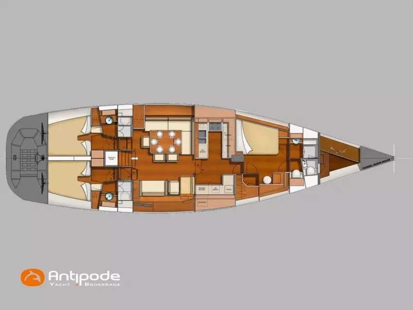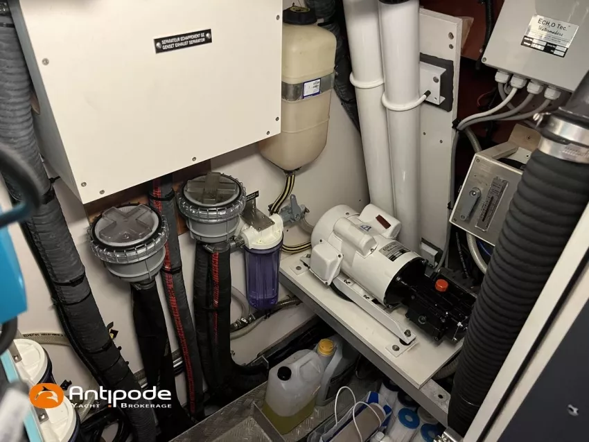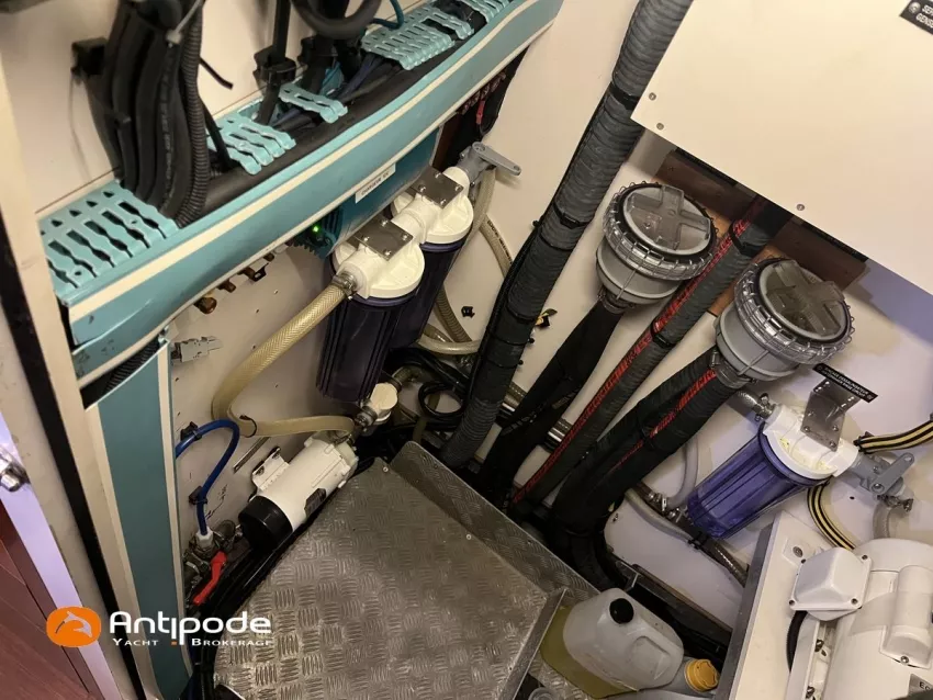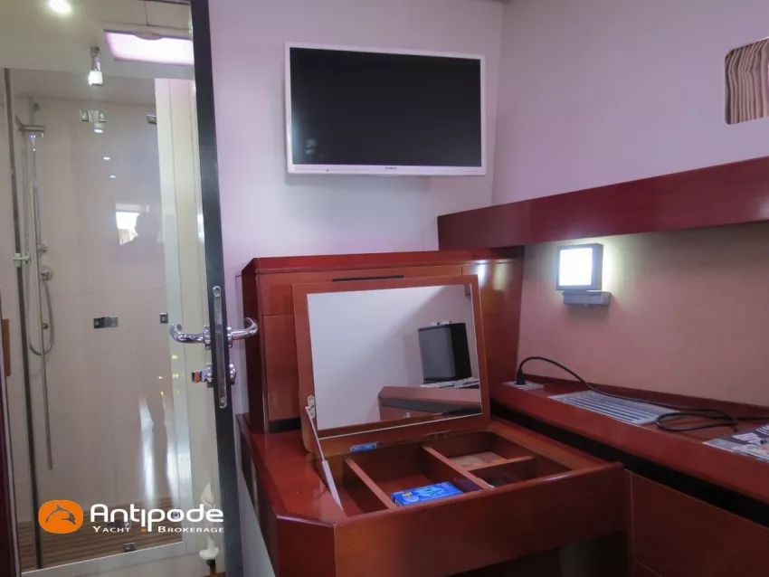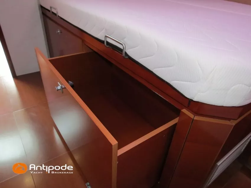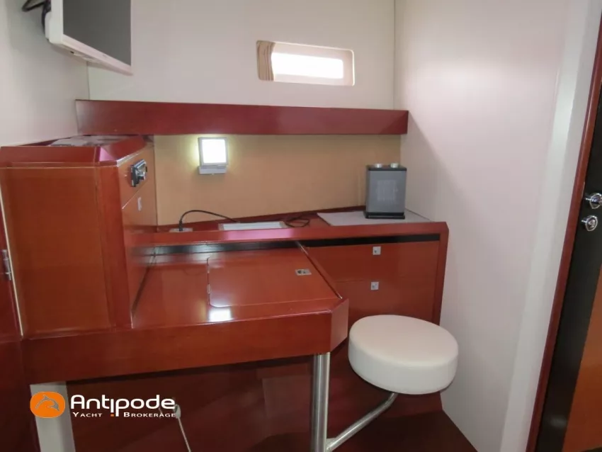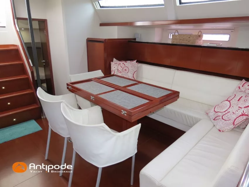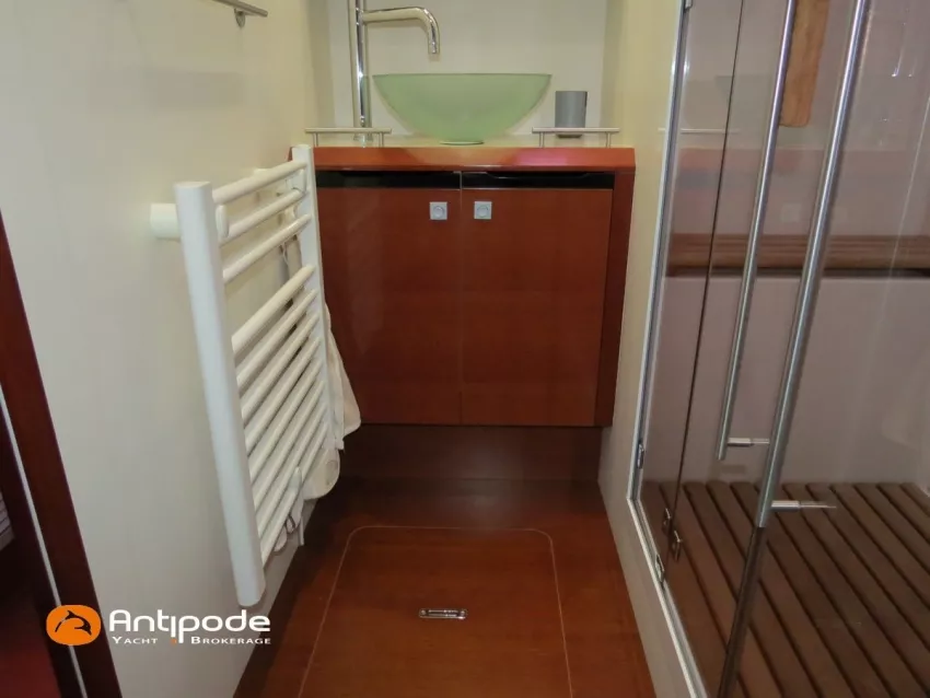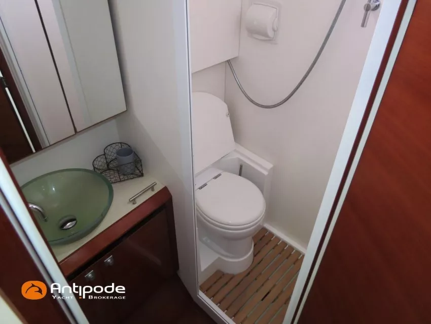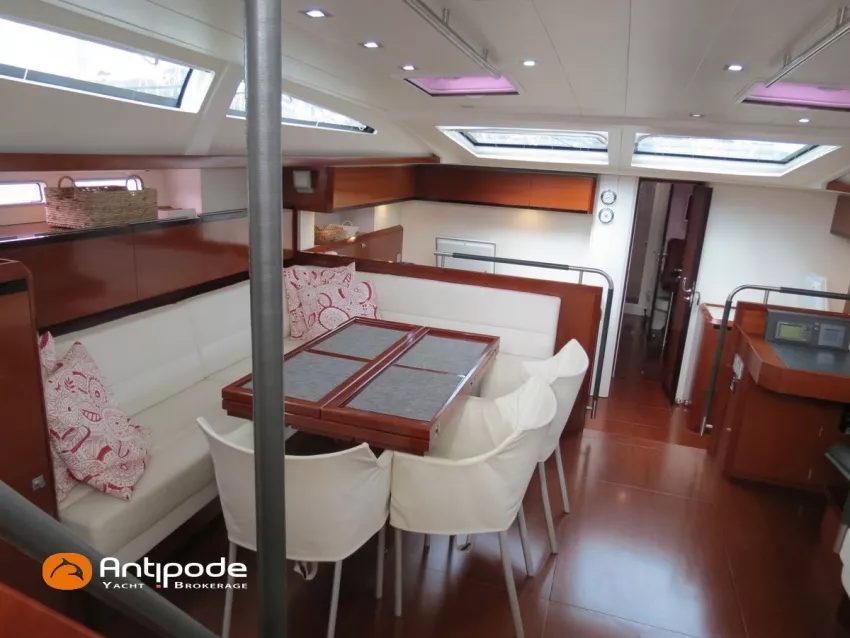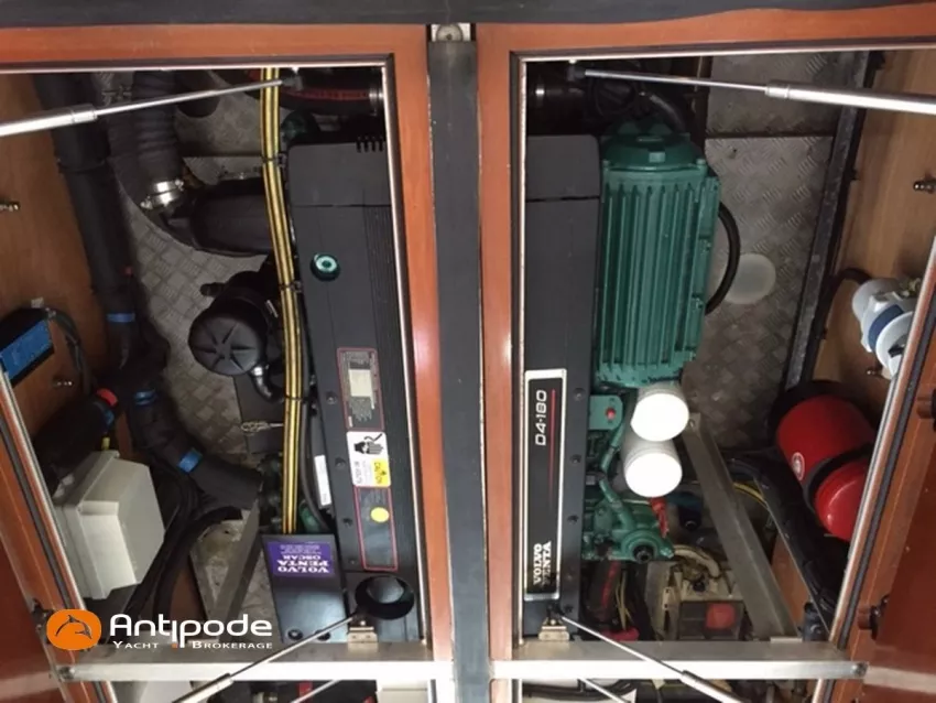 BORDEAUX 60, 2012, VOLVO D4, 180 cv (1714 h), Version d'aménagement intérieur 1 cabine latérale avant avec couchage sur babord, 2 cabines arrières, 3 cabinets de toilettes et douche, Selleries carré cuir blanc crème, 4 winchs électriques dans le cockpit - Harken (2 X 60 / 2 X 70), Passavants teck, Double barres à roue carbone, Capote de roof - 2022, Bimini hard top cockpit with solar panels, Prolongateur du bimioni top au dessus des postes de barres - 2022, Coussins de cockpit avec dossiers - 2025, Guindeau électrique - Lewmar V5 2000 W 24 V, Bossoirs avec palan de levage d'annexe - Simpson Davits, Mât aluminium Maréchal laqué blanc, 3 étages, posé sur la quille, Gréement courant Dyneema 2024, Grand-voile full batten 3 ris 95 sqm - Incidences Hydranet 2021, Rail de guindant de grand voile + chariots de lattes - Harken, Enrouleur de génois électrique - Bamar, Génois sur enrouleur 108 % 85 sqm - Incidences Hydranet 2021, Trinquette autovireuse sur enrouleur 45 sqm - Incidences Hydranet 2022, Pataras réglable, 2 vérins Hydrauliques Navtec, Pilote automatique in board Raymarine + controleur de course SPX 3, Centrale de navigation Raymarine ST 70 PLUS, GPS / lecteur de carte à la table à carte - Raymarine E120 W, GPS / lecteur de carte dans le cockpit - Raymarine E120 W, Radar avec radôme sur support de mât - Raymarine 4 kw, Transpondeur AIS (émetteur récepteur) - AIS 650, Balise de détresse - Kannad, Unité réfrigérante 24 V ouverture par le dessus, Unité réfrigérante 24 V porte frontale, Conservateur froid négatif (freezer) - Vitrifrigo 160 l, Cave de réfrigération 6 bouteilles, Cuisinière 4 feux + four électrique - Techimpex Horizon, Machine à laver le linge / sèche-linge V - Mielle, 2 chargeurs de batteries - Mastervolt 60 amp / 24 V, 1 chargeur de batterie 12 V, Batteries service X 8 Gel Exide Marine 120 amp 24 V- 2023, Convertisseur 24 V / 220 V - Mastervolt 2500 W, Convertisseur 24/12 V pour électronique - Victron, 1 alternateur moteur 24 V, 1 alternateur moteur 12 V, Climatisation intégrée 220 V Webasto 60000 BTU, Générateur fixe 220 V - Cummins Onan 11 kw (1199 h), Dessalinisateur 12 V - Echo-tec 190 l / h 2020, Panneaux solaires - X 4, Toutes vannes de coques remplacées par des vannes PVC renforcé Marine Ball Valve True Design - 2025, Eclairages intérieurs à Leds, Radeau de survie 6 p révise 2025 - Seago Iso 9650-1 - Seago Iso 9650-1 (2020), Mouillage principal ancre DELTA 40 kg + chaine 100 m, Annexe semi rigide 3.10 - Caribe C 12, Moteur hors-bord - Honda 15 , Visible Bretagne. TVA payée. Pour plus d'informations ou pour fixer un rendez-vous de visite, contact : Jérôme Le Joubioux 06 07 45 71 73 - jerome@antipode-yachts.com