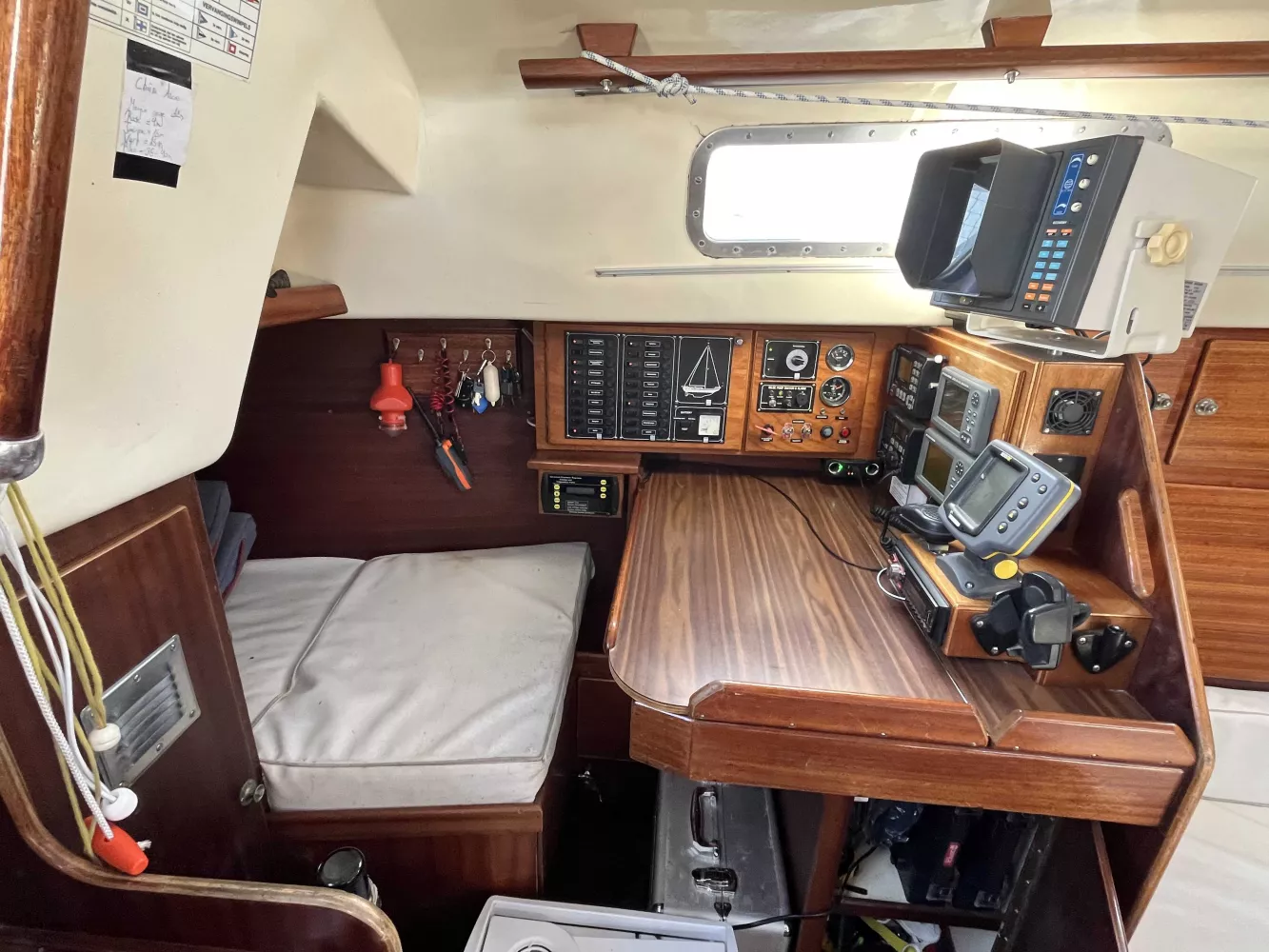 *Électricité / Électronique : Répartiteur de charge, Chargeur de batteries, Batteries de 110Ah (2024), Panneau solaire 50W (2024), GPS, Radar Furuno, Loch/speedo, Girouette/Anémo, Sondeur, Pilote automatique sur secteur de barre (2024), VHF Fixe, AIS émetteur/récepteur (2024).