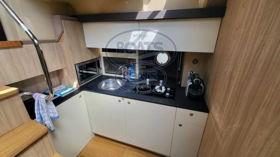 Bel espace cockpit, avec grand carré, évier et frigo extérieur,