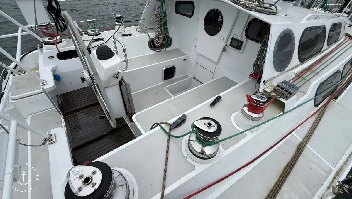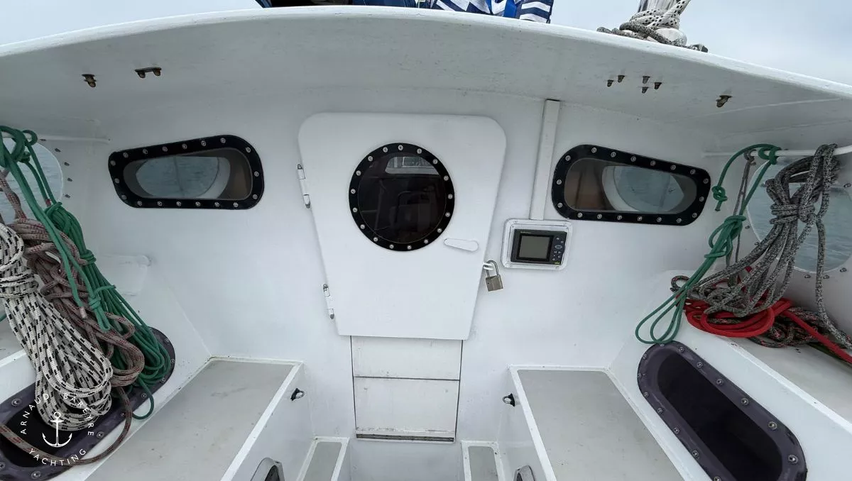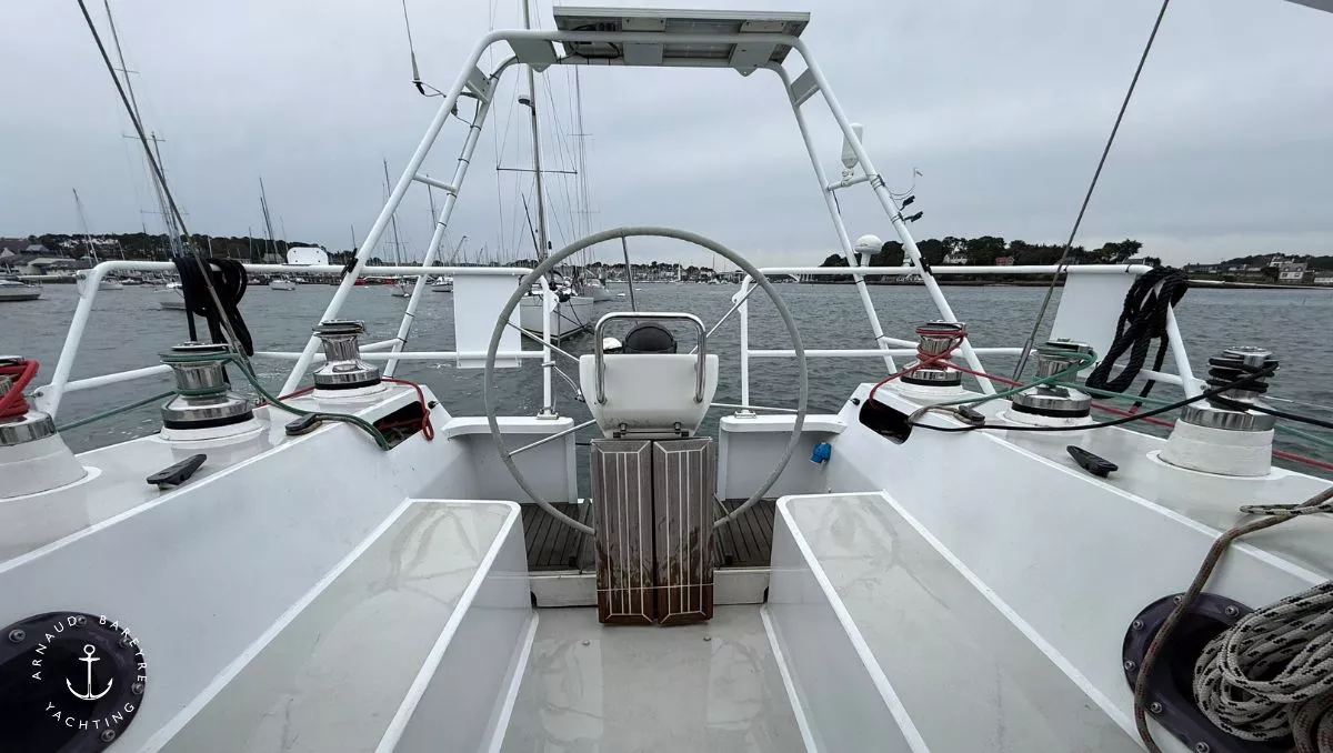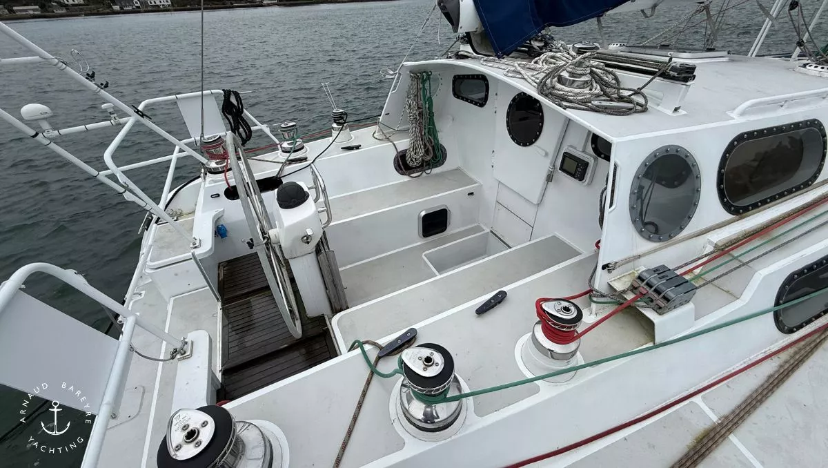 Longueur HT : 13.80 m, rallongé à 14.70 par ajout d'une delphinière alu soudée