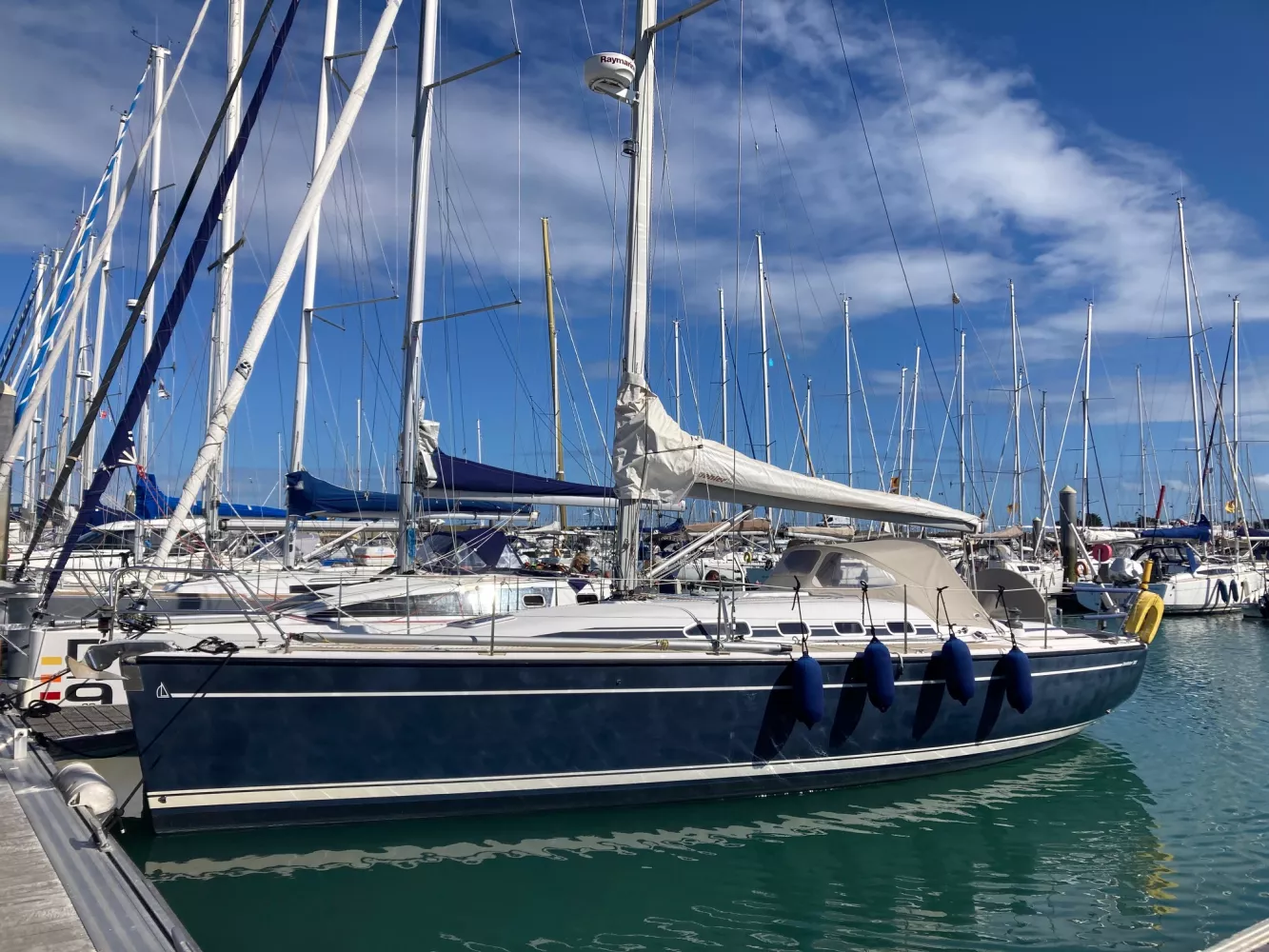 Le Dehler 36 est un voilier de croisière conçu pour offrir une combinaison idéale de performance et de confort. Fabriqué par le constructeur allemand Dehler, il est apprécié pour sa robustesse, son design élégant et ses performances. Polyvalent, il est parfait pour les navigations côtières et les croisières au long cours. Sa construction de qualité et son équipement complet en font un choix fiable pour les amateurs de voile. L’unité proposée très bien équipée a bénéficié d’un entretien soigné. L’état général est excellent. Le bateau est vendu complet prêt à naviguer avec son nouveau propriétaire.