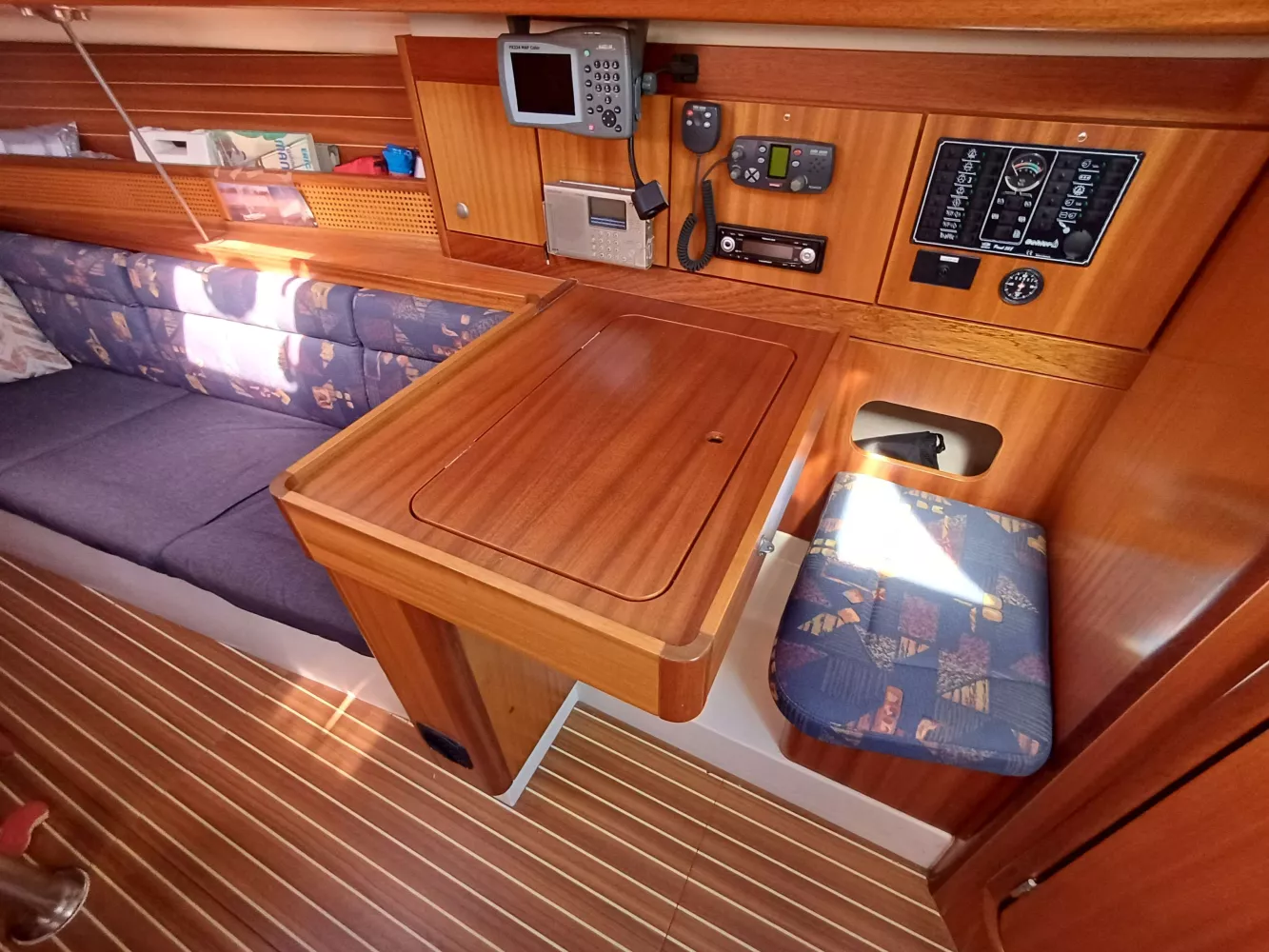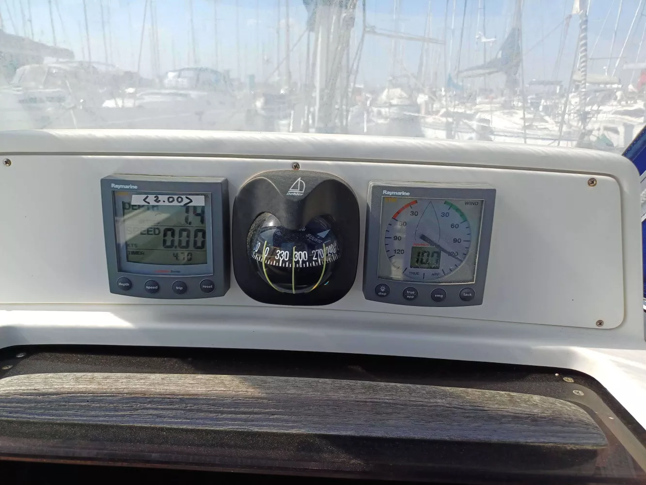 *Électronique : GPS Magellan FX324 MAP Color, Loch/Speedo, Girouette/Anémomètre, Pilote automatique Raymarine ST6001, 2 répétiteurs Raymarine à la descente, VHF fixe Radio Ocean RO4500, Radio + enceintes à l'intérieur.