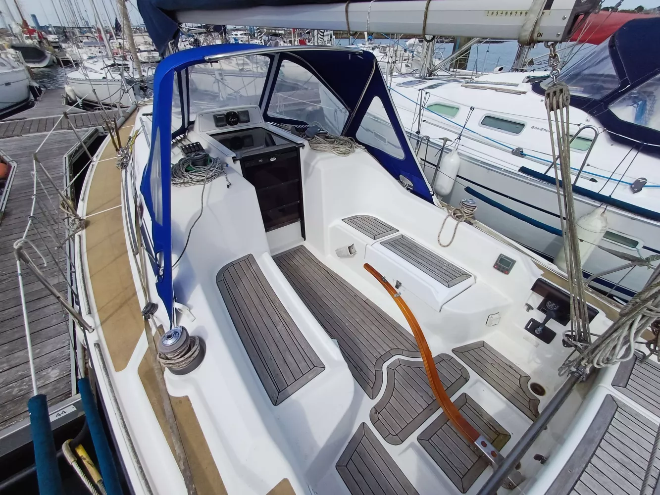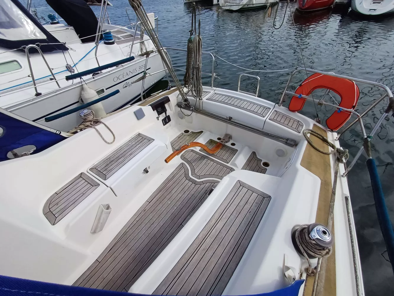 *Extérieur : Barre franche en bois, Capote de roof (2023), Cockpit en teck, Guindeau électrique, Échelle de bain, Emplacement pour bouteille de gaz, Grands coffres de rangement dans le cockpit sur tribord, 4 winchs.