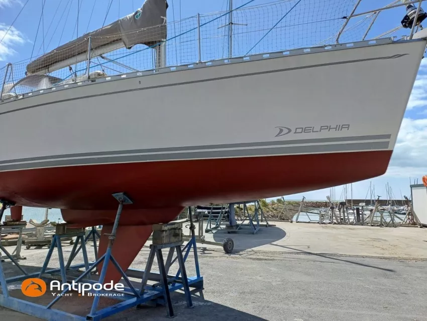 DELPHIA 33, 2009, Volvo D1-20, 20 cv (2070 h), Version d'aménagement intérieur 1 cabine avant, 1 cabine arrière, 1 cabinet de toilette et douche, Menuiseries intérieures Acajou, 2 winchs d'écoutes de génois dans le cockpit - Lewmar 40ST, 2 winchs sur roof pour réglages et manoeuvres - Lewmar 30ST, Rail d'écoute de grand-voile sur le roof, Fond de cockpit latté teck, Assises de cockpit lattées teck, Jupe arrière lattée teck, Rail de fargue aluminium, Barre à roue composite (2022), Capote de roof, Guindeau électrique 700W, Mât aluminium classique posé sur le pont - Selden, Grand-voile full batten - Sextant 27m² (2014), 2 x Prises de ris automatiques, Lazy-bag de grand voile (2024), Enrouleur de génois avec tambour sur le pont - Furlex 200S, Génois sur enrouleur - Sextant 31m² (2015), Spinnaker asymétrique (2021), Chaussette à spi, Pilote automatique in board Raymarine SPX10, Centrale de navigation Raymarine ST 60, GPS / lecteur de carte à la table à carte - Garmin - GPS Map 525, GPS / lecteur de carte dans le cockpit - Raymarine Axiom 7 (2022), Cartographie électronique, VHF ASN AIS à la table à carte - B&G V60 (2022), Unité réfrigérante 12 V ouverture par le dessus, Eau chaude et froide sous pression, Prise de quai 220 V + chargeur de batteries (2019), Batteries service - 3 x 100Ah, Chauffage aérotherme 2 vitesses dans le carré (récupération calorifique moteur), Réservoir rigide eaux noires, Douchette de cockpit eau chaude / eau froide, Eclairages intérieurs à Leds, Pas de radeau de survie, Equipement de sécurité moins de 6 milles à contrôler (pas de gilets auto-gonflants), Mouillage principal ancre Kobra 14kg - 30m de chaine, Mouillage secondaire, Amarres et défenses, Seulement 2 propriétaires, jamais loué, Visible Bretagne. Pour plus d'informations ou pour fixer un rendez-vous de visite, contact : Jean-Baptiste Lemaire 06 10 25 00 03 - jb@antipode-yachts.com