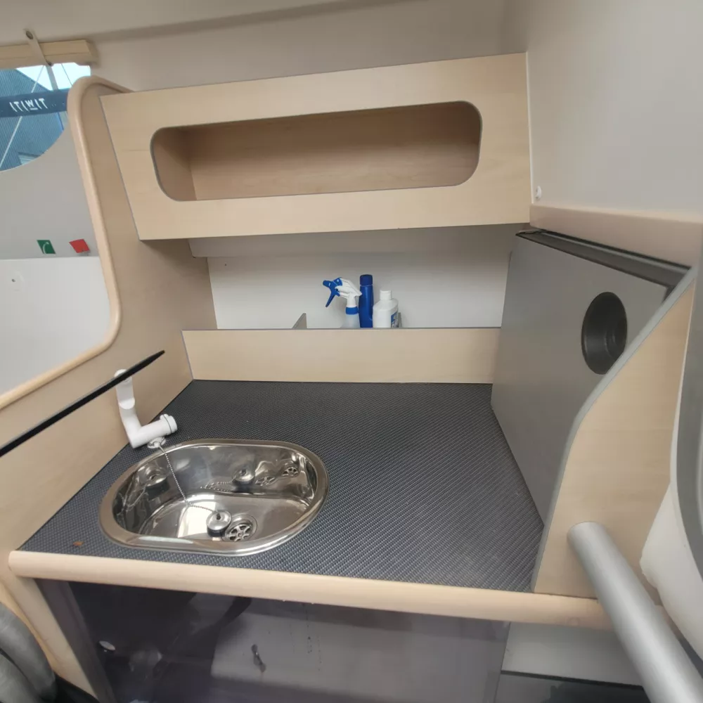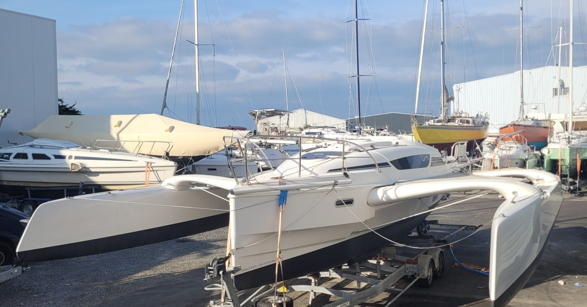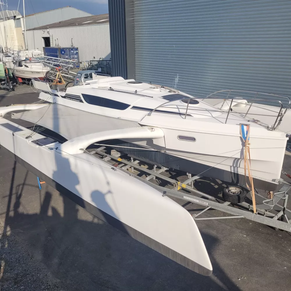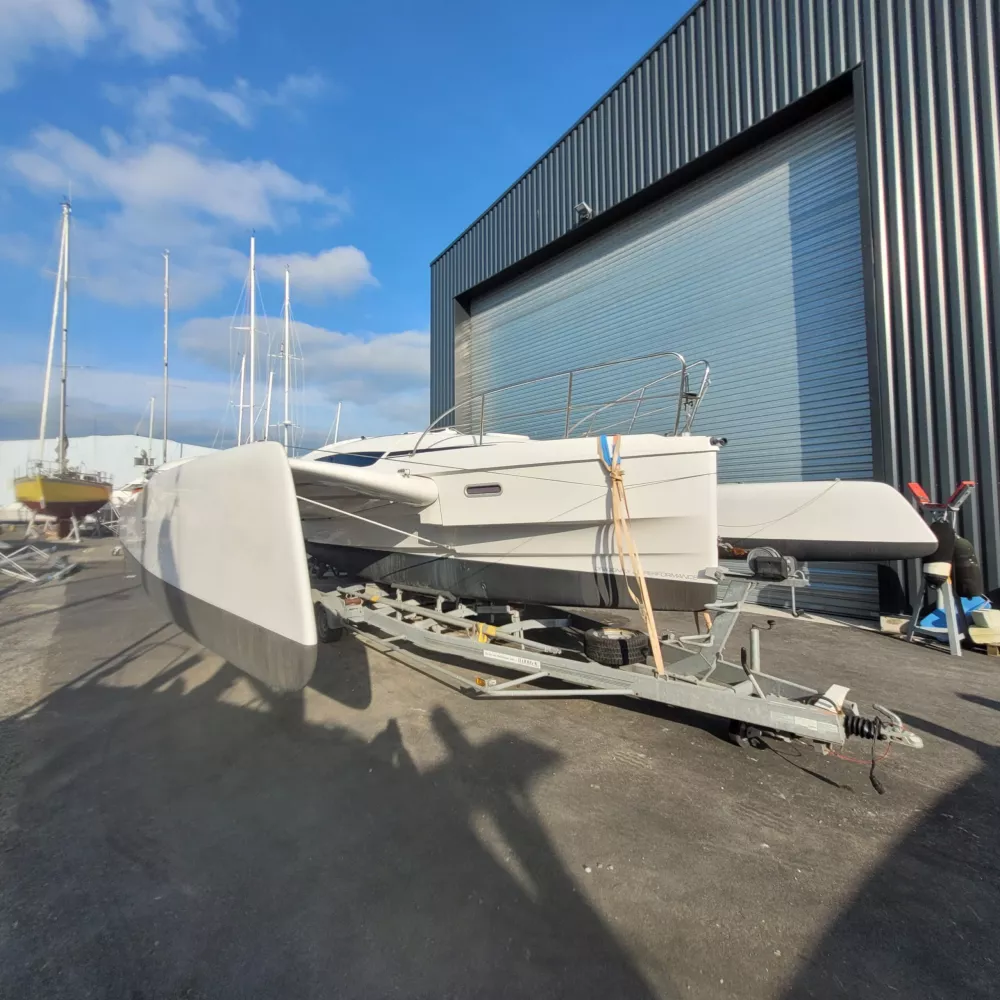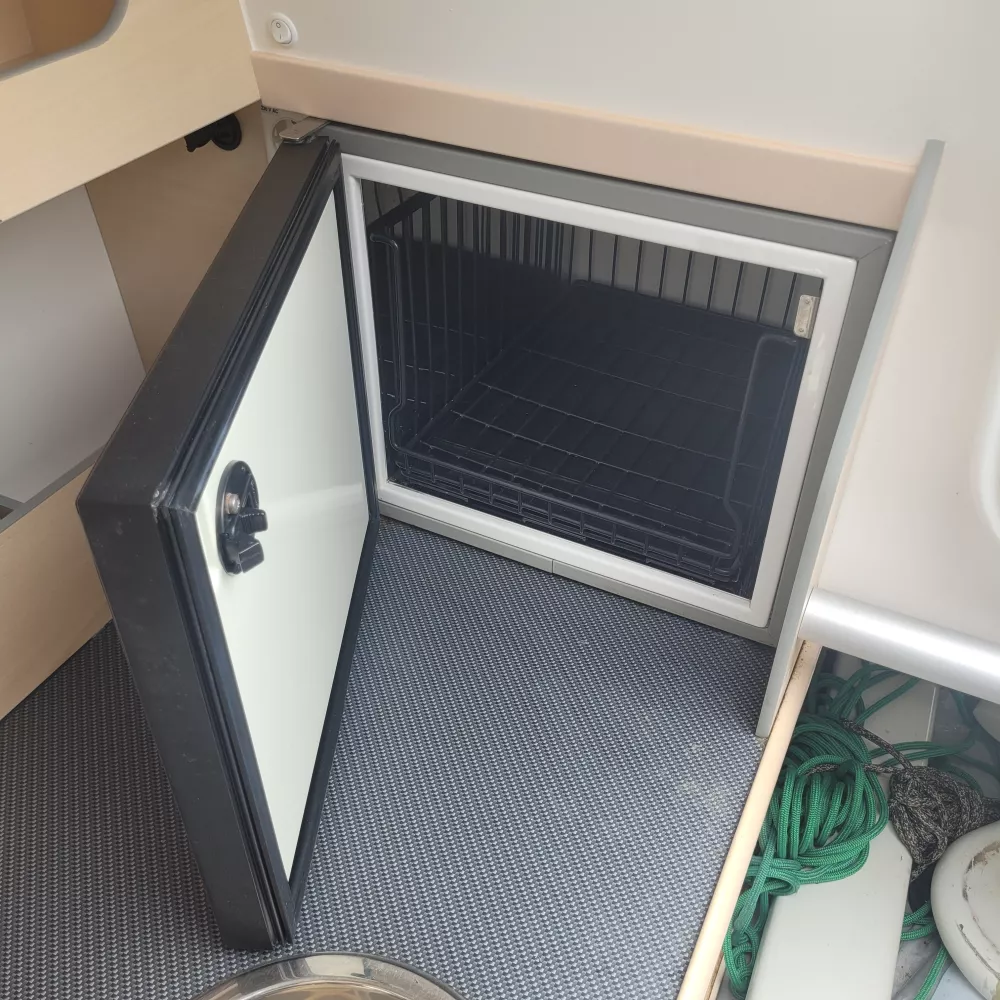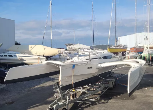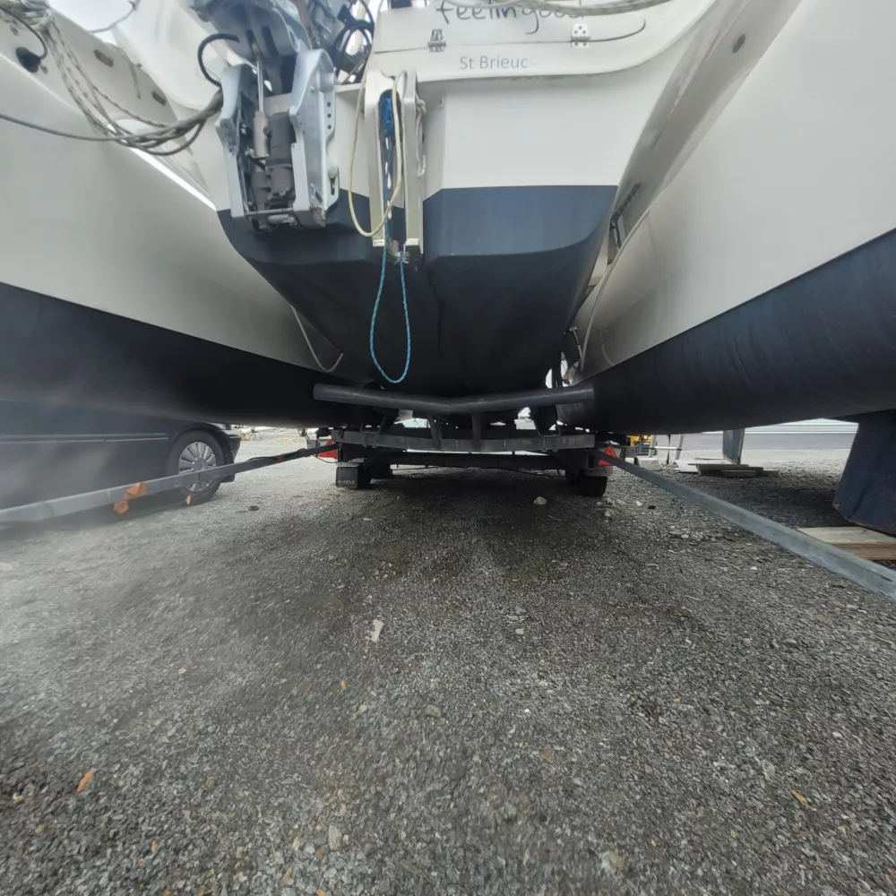1 cabine double à l’avant, 1 cabine d’appoint à l’arrière, 1 toilette séparée, Mât carbone de 13.60m