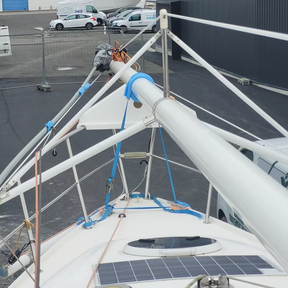 Jeu de voile complet Elvström EPEX: GV 43m², Génois sur enrouleur 21.5m²,. Panneaux solaires (1x50W + 2x38W).