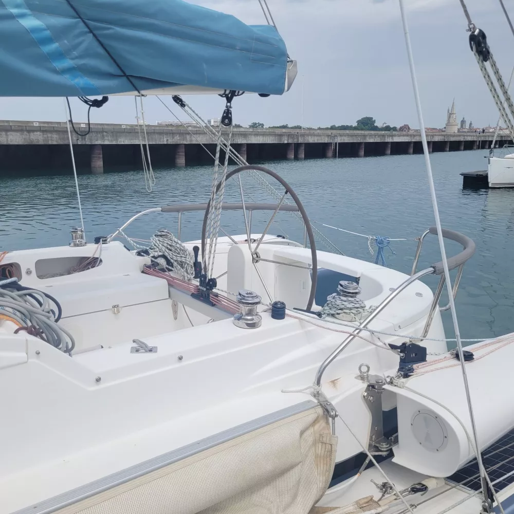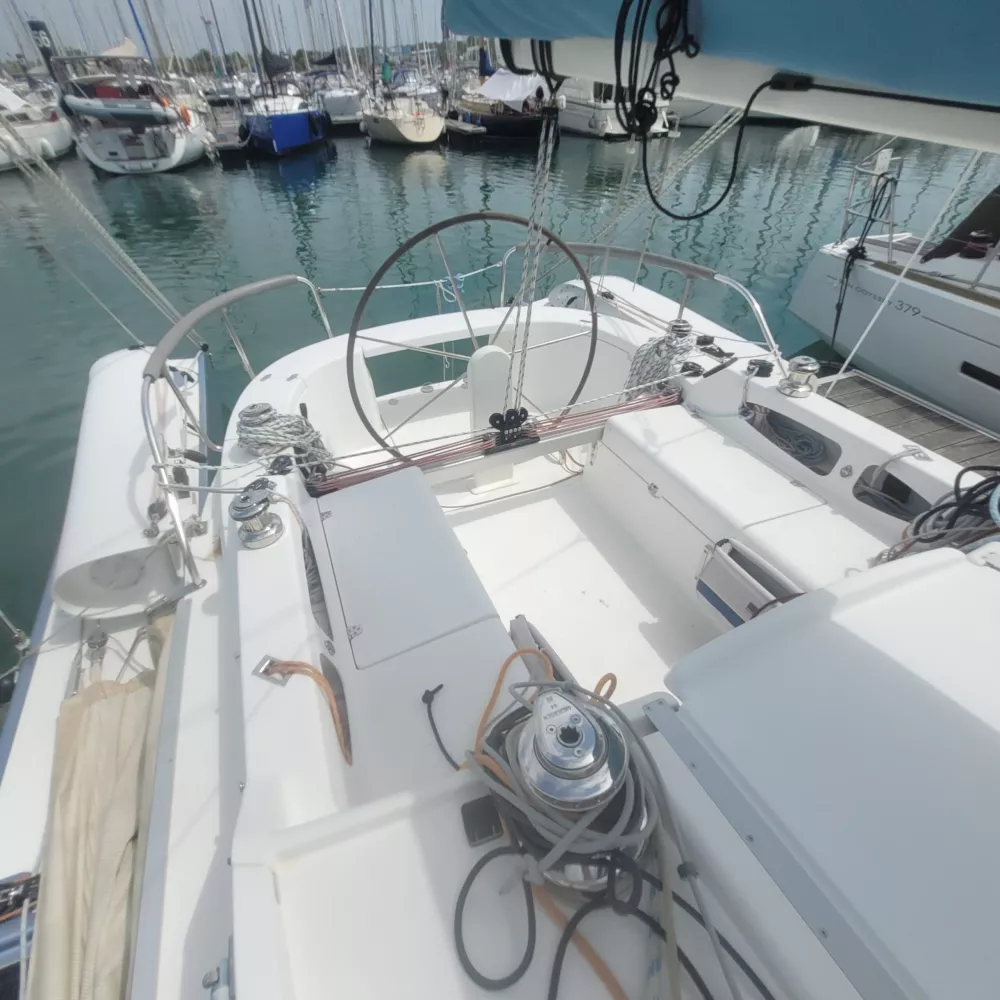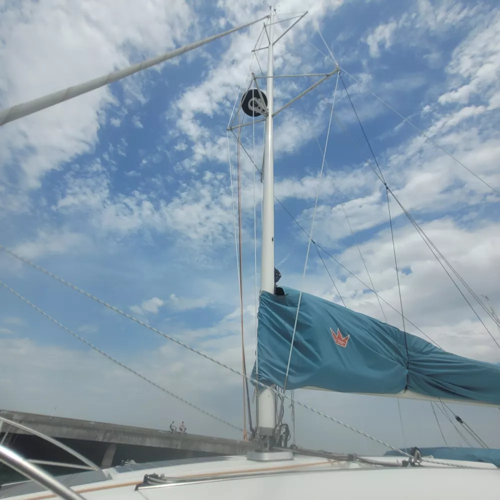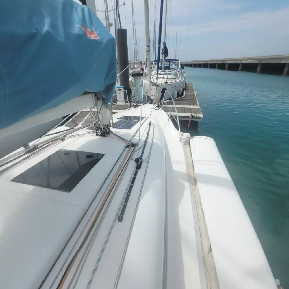 1 cabine double à l’avant, 1 cabine d’appoint à l’arrière, 1 toilette séparée, Mât carbone de 16.70m
