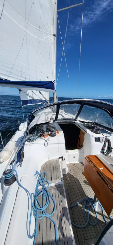 Electronique 2024 : réseau NMEA 2000, 2 traceur B&G Vulkan 12'' (TàC) et 9'' (console cockpit), Radar B&G HALO+, VHF fixe+ AIS, VHF portable (2025), Girouette-anémo B&G avec répéteur de cockpit Triton2 et sonde sondeur. Pilote automatique Raymarine (origine)