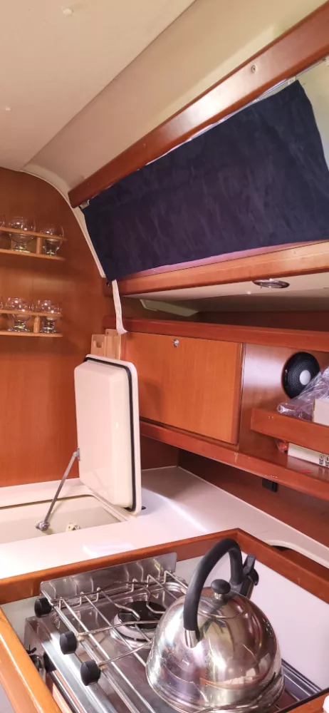 Mouillage : 60 m de chaine de 10 (2024) ancre soc, deuxième mouillage ancre plate et chaine+cablôt.