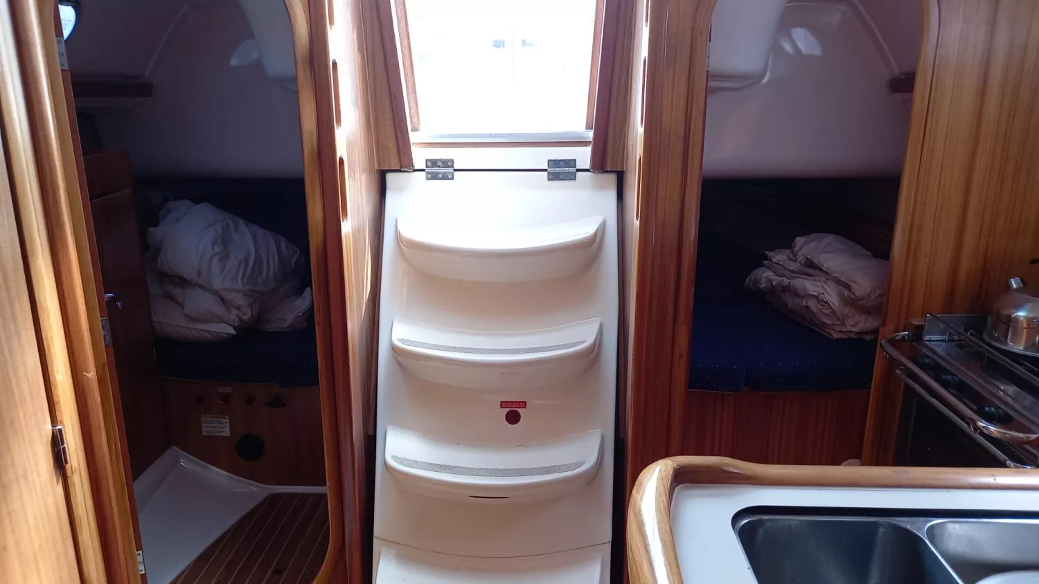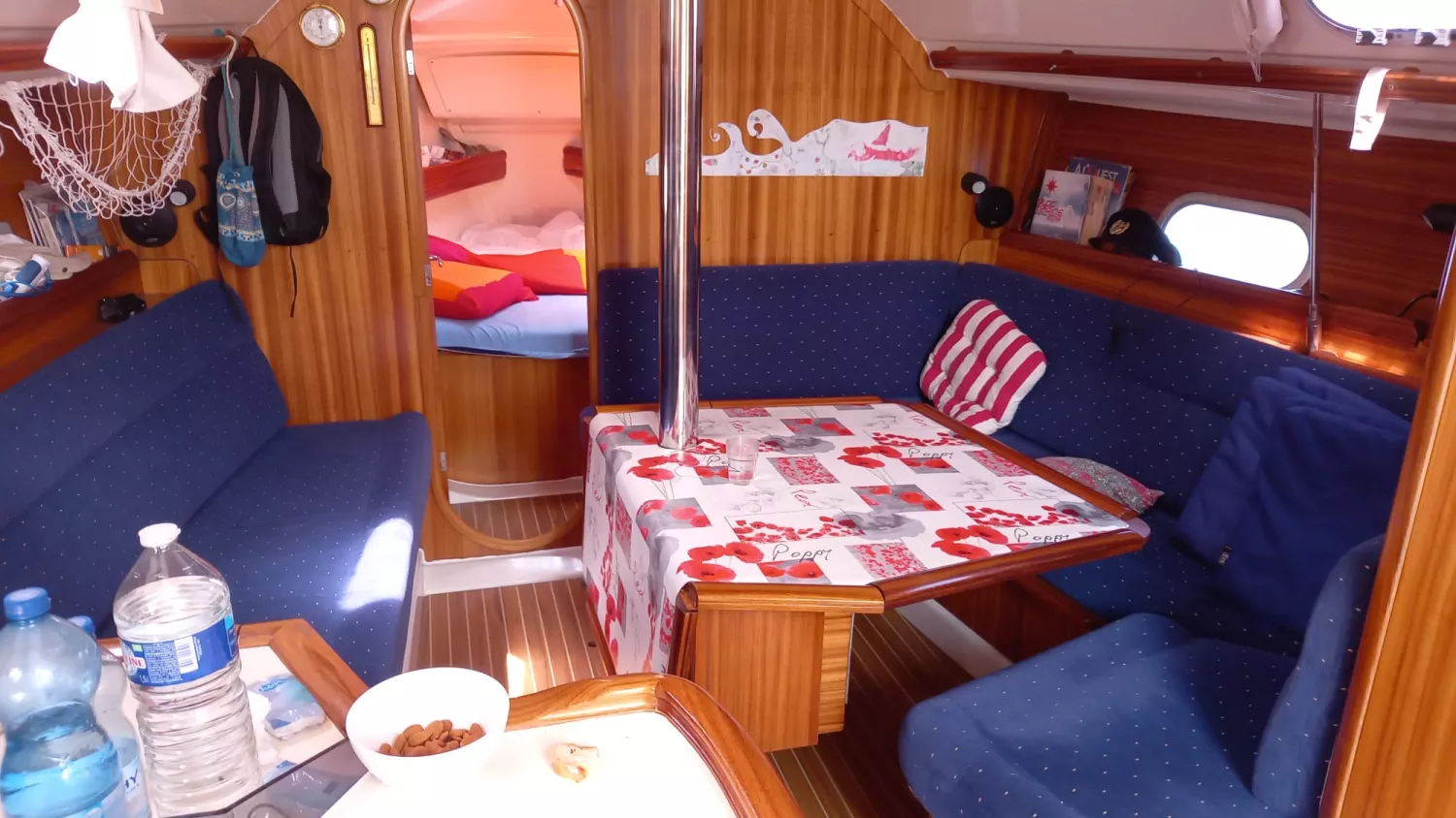 Trois cabines doubles, une salle de bain/douche/WC, une cuisine et un carré confortable peuvent accueillir de 6 à 8 personnes.
