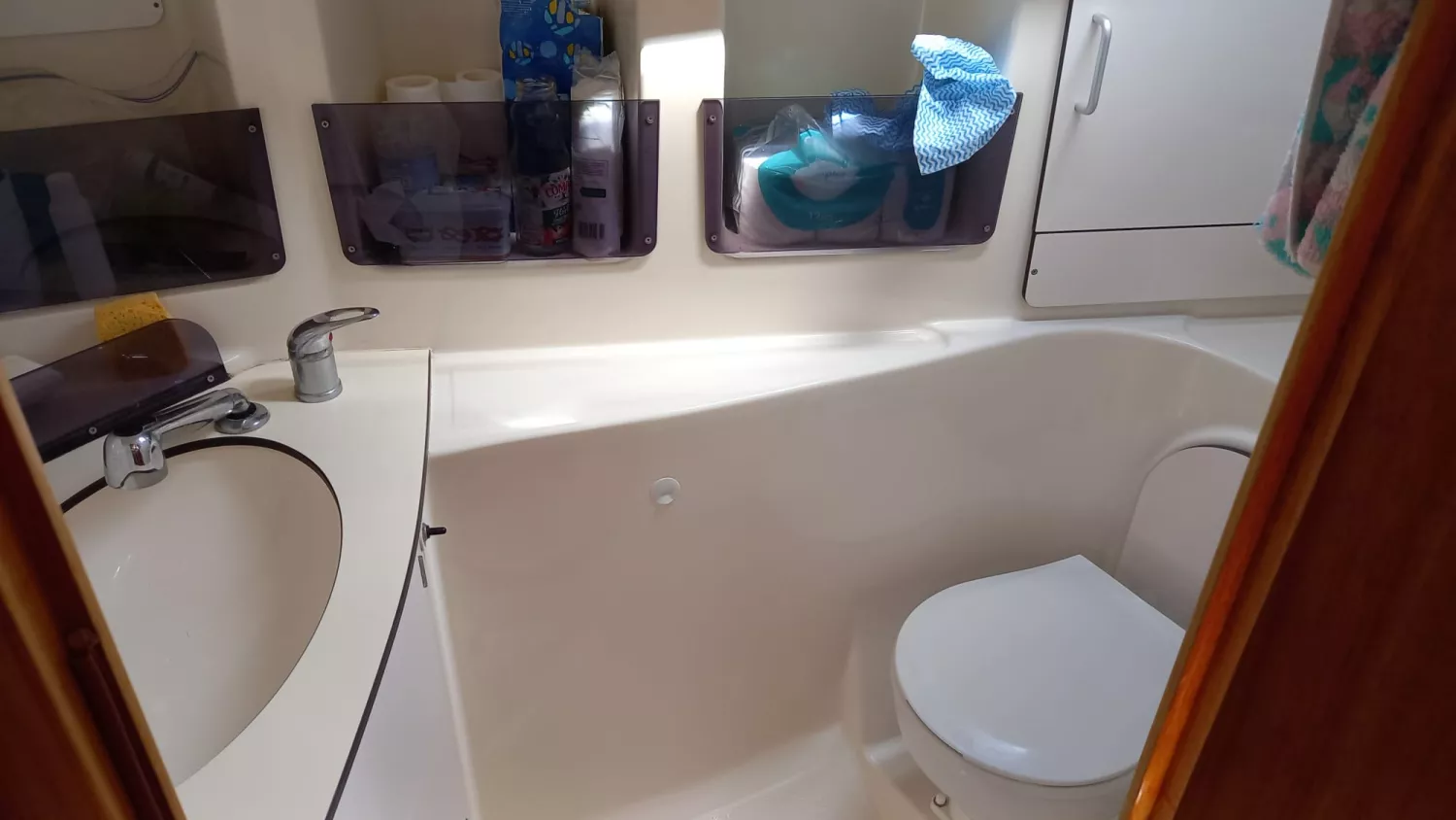 - Chauffage à air soufflé dans le carré, les cabines et la douche.