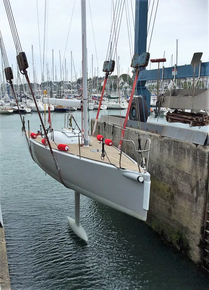 Très beau voilier qui allie performance, lignes élégantes et design unique. Le bateau est amusant, sûr, facile à conduire même en solo et confortable pour les excursions d’une journée et les courtes croisières. Ensemble très léger avec coque , mât, bôme, barre et bout dehors en carbone