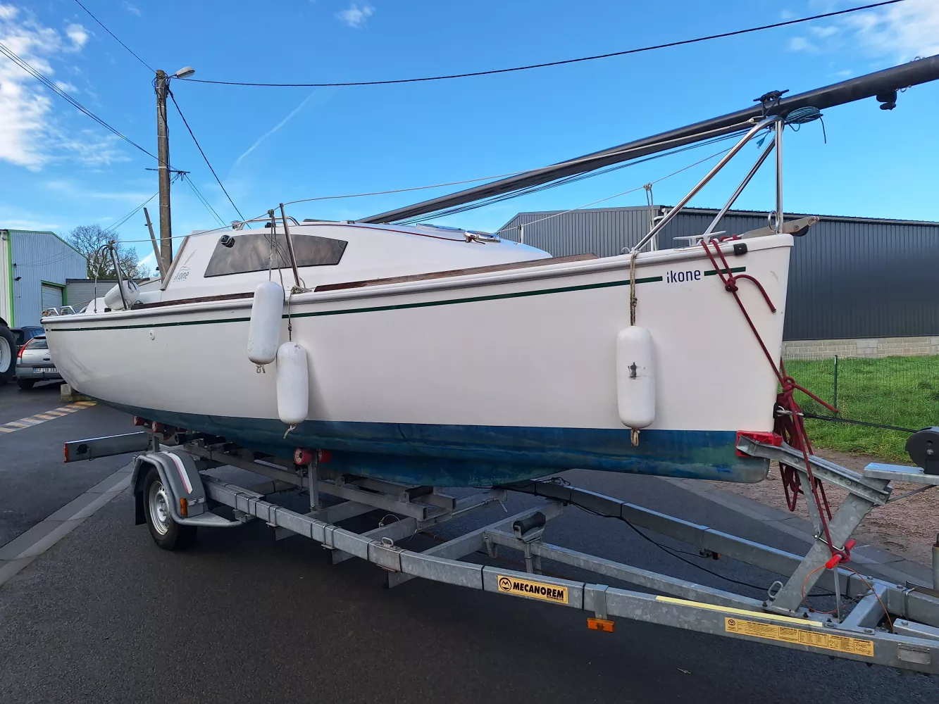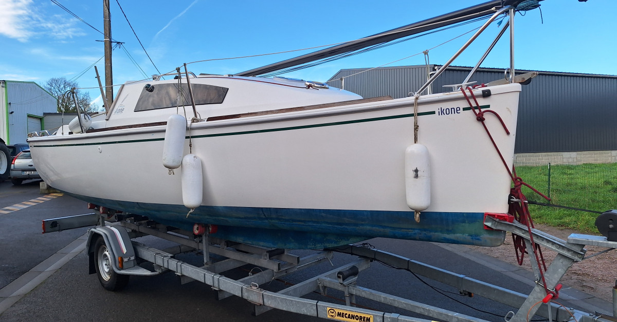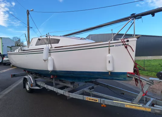 Vends voilier IKONE 6. Voilier en très bon état 20128, largeur 2,55 m, longueur 6 m avec remorque de route de marque MÉCANOREM de type MTX951F D avec rouleaux guide quille. Moteur SUZUK puissance 15 à essence. Révision moteur faite en février 2024. Equipements : WC chimique, réchaud, évier inoxydable avec pompe à main, gréement catboat, spots led, feux de navigation, table pliante aérateur de pont, peigne de barre, armement côtier à remettre à jour, VHF portable RT411 Pack, GPS/sondeur Garmin. Béquilles échouement, taud de soleil, bout dehors, barre franche, mât carbone, compas etc.