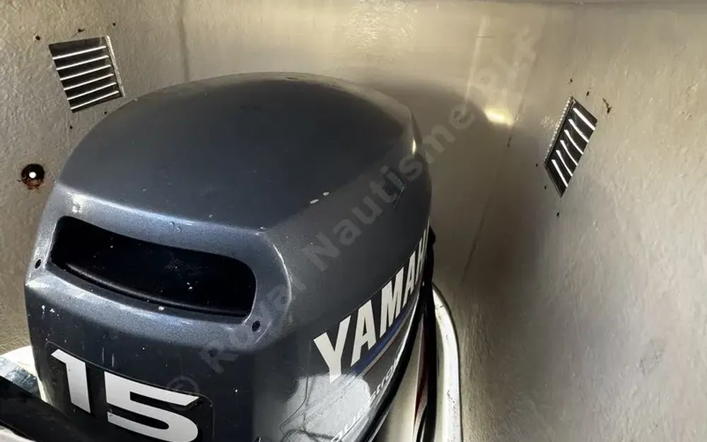 Equipé d’un moteur HB Yamaha, en puits, de 15 ch, 4 temps, avec commande à distance.