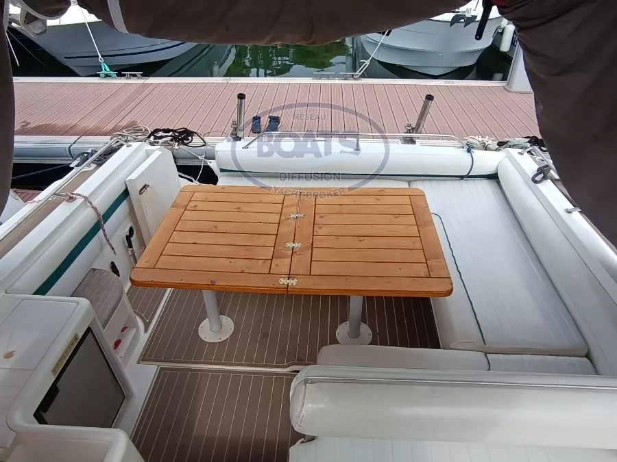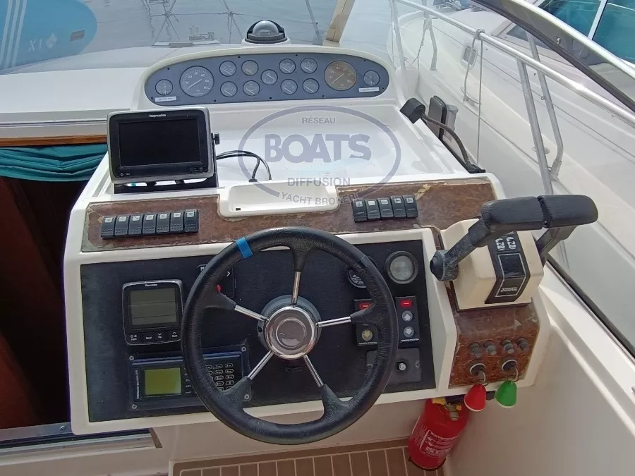 Vedette open de plus de 9 mètres en bon Etat Général. Ce Fairline Targa 31 est idéale pour les croisières en famille. Equipé de moteurs essence Volvo Penta 4,3L GS (2x225cv). Sellerie de cockpit neuve (2024) et teck synthétique récent. Une belle cabine transformable, coin cuisine avec micro-onde et plaque électrique. Une deuxième cabine arrière pour deux personnes. Sur le pont la part belle est donné au grand cockpit avec un salon confortable, réfrigérateur, évier, table avec rallonge. Un poste de pilotage confortable avec un grand fauteuil et un tableau de bord complet. Une belle vedette Open de plus de 9 m.