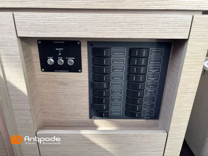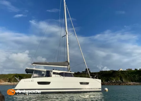 LUCIA 40, 2019, 1ère main, 2 X VOLVO D1-30, 2 X 30 cv (821 h), Version d'aménagement intérieur 4 cabines, Soutes à voiles dans les poste avant, 2 cabinets de toilettes et douche, Table de carré convertible en couchette double, Moustiquaires de hublots et panneaux de pont, Manivelle de winch électrique, Table de cockpit en teck avec rallonge, Housse de barre à roue, Coussin siège de barre, Coussins de cockpit : banquette, méridienne, banquette arrière, Coussins bains de soleil plage avant et roof, Guindeau électrique (motoréducteur remplacé en 2025), Bossoirs inox avec palan de levage d'annexe, Bimini poste de barre, Tauds de fermeture arrière complète du cockpit, Grand-voile full batten, Lazy-bag de grand voile, Lazy-jacks de grand voile, Enrouleur de génois avec tambour sur le pont - Profurl, Génois sur enrouleur, Pilote automatique in board Raymarine avec pupitre P70S, Répétiteur Raymarine I70 poste de barre, GPS / lecteur de carte à la table à carte - B&G Zeus, GPS / lecteur de carte au poste de barre - Raymarine Axiom 9, Cartographie électronique, Transpondeur AIS (émetteur récepteur) - Raymarine AIS 700, VHF ASN à la table à carte - Raymarine RAY 73, Système audio Fusion RA70 + HP, Hauts-parleurs cockpit , Balise de détresse, Unité réfrigérante 12 V double-porte frontales, Chargeur Convertisseur 12 V / 220 V - 2400W - Victron Energy (2025), Prises intérieures 220 V dans carré, cabines et salles d'eau, Dessalinisateur 12 V - 65 l/h - Aquabase (2024), Réservoirs rigides eaux noires, 4 x Panneaux solaires - 4 x 150W - Sun Power, Feux de navigations à Leds, Eclairages intérieurs à Leds, Radeau de survie et armement hauturier 8 pers., Mouillage principal, Annexe 3.80m , Moteur hors-bord Yamaha 6cv, Visible Méditerranée. Pour plus d'informations ou pour fixer un rendez-vous de visite, contact : Jean-Baptiste Lemaire 06 10 25 00 03 - jb@antipode-yachts.com
