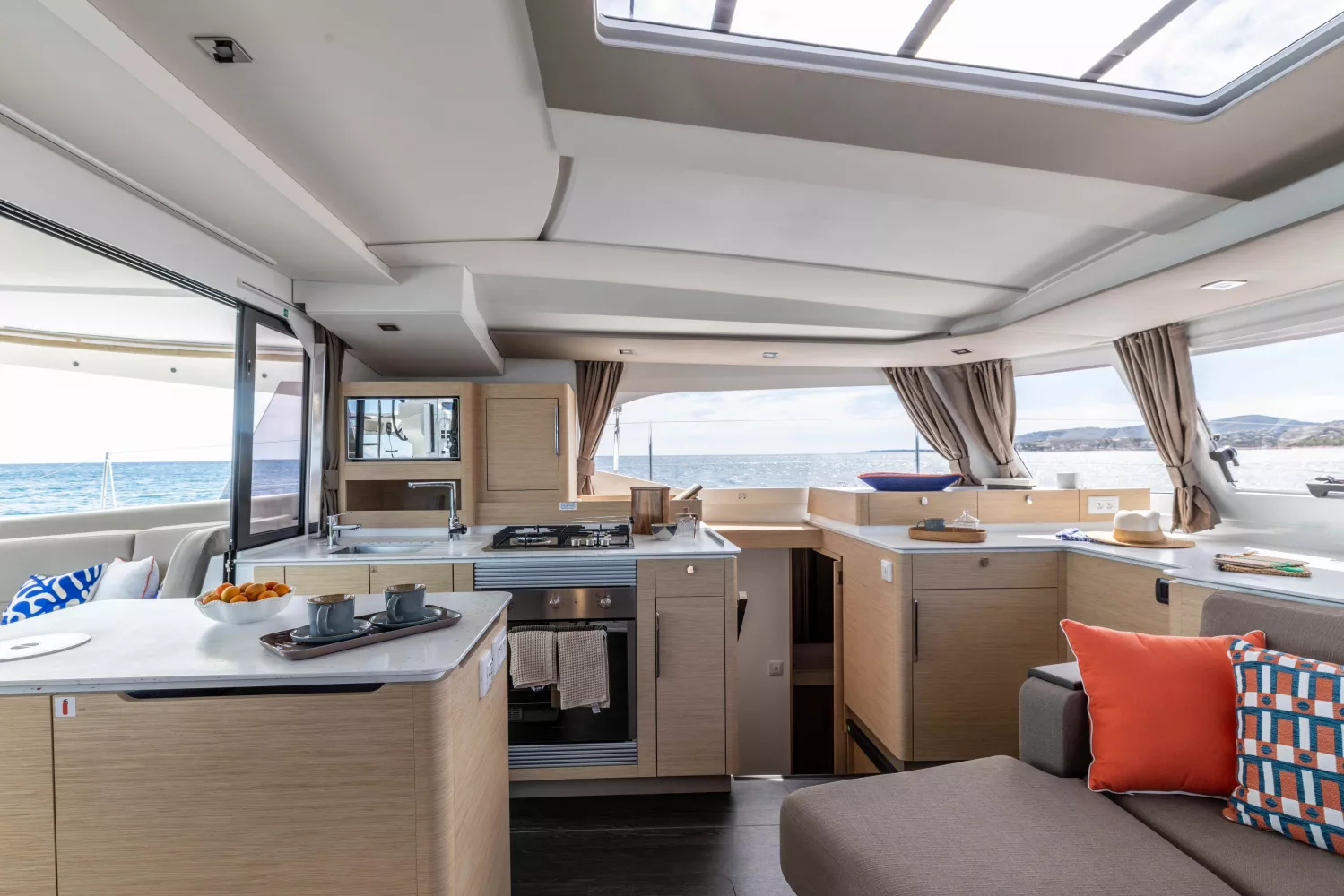 Véritable concentré d’élégance, de confort et d’innovation, ce catamaran a été imaginé pour répondre aux attentes des navigateurs modernes : performance maîtrisée, sécurité, autonomie et bien-être absolu.