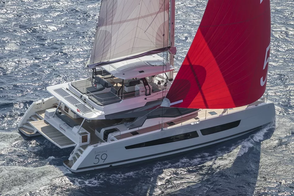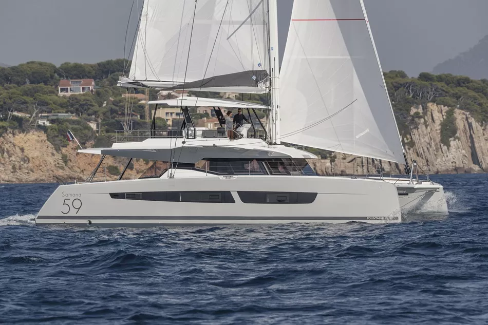 Découvrez le SAMANA 59, le grand catamaran de croisière de Fountaine Pajot doté du plus vaste flybridge de sa catégorie, pensé pour les propriétaires exigeants et les équipages nombreux. Spacieux, polyvalent et élégant ; il est conçu pour la grande croisière, il allie confort de vie, performance et sécurité. Avec ses lignes tendues, son cockpit XL, ses espaces de détente multiples, sa circulation fluide du pont au carré, et ses cabines lumineuses… tout est pensé pour garantir bien-être, intimité et convivialité à bord.