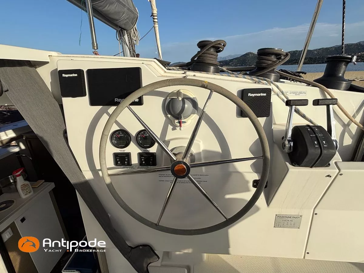 LUCIA 40, 2019, 1ère main, 2 X VOLVO D1-30, 2 X 30 cv (821 h), Version d'aménagement intérieur 4 cabines, Soutes à voiles dans les poste avant, 2 cabinets de toilettes et douche, Table de carré convertible en couchette double, Moustiquaires de hublots et panneaux de pont, Manivelle de winch électrique, Table de cockpit en teck avec rallonge, Housse de barre à roue, Coussin siège de barre, Coussins de cockpit : banquette, méridienne, banquette arrière, Coussins bains de soleil plage avant et roof, Guindeau électrique (motoréducteur remplacé en 2025), Bossoirs inox avec palan de levage d'annexe, Bimini poste de barre, Tauds de fermeture arrière complète du cockpit, Grand-voile full batten, Lazy-bag de grand voile, Lazy-jacks de grand voile, Enrouleur de génois avec tambour sur le pont - Profurl, Génois sur enrouleur, Pilote automatique in board Raymarine avec pupitre P70S, Répétiteur Raymarine I70 poste de barre, GPS / lecteur de carte à la table à carte - B&G Zeus, GPS / lecteur de carte au poste de barre - Raymarine Axiom 9, Cartographie électronique, Transpondeur AIS (émetteur récepteur) - Raymarine AIS 700, VHF ASN à la table à carte - Raymarine RAY 73, Système audio Fusion RA70 + HP, Hauts-parleurs cockpit , Balise de détresse, Unité réfrigérante 12 V double-porte frontales, Chargeur Convertisseur 12 V / 220 V - 2400W - Victron Energy (2025), Prises intérieures 220 V dans carré, cabines et salles d'eau, Dessalinisateur 12 V - 65 l/h - Aquabase (2024), Réservoirs rigides eaux noires, 4 x Panneaux solaires - 4 x 150W - Sun Power, Feux de navigations à Leds, Eclairages intérieurs à Leds, Radeau de survie et armement hauturier 8 pers., Mouillage principal, Annexe 3.80m , Moteur hors-bord Yamaha 6cv, Visible Méditerranée. Pour plus d'informations ou pour fixer un rendez-vous de visite, contact : Jean-Baptiste Lemaire 06 10 25 00 03 - jb@antipode-yachts.com