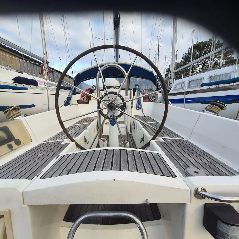 - eau sous pression : 2 réservoirs inox 300 litres/cockpit teck refait en 2017.