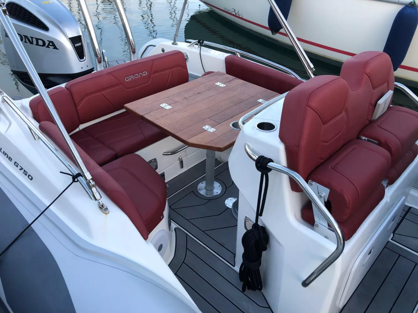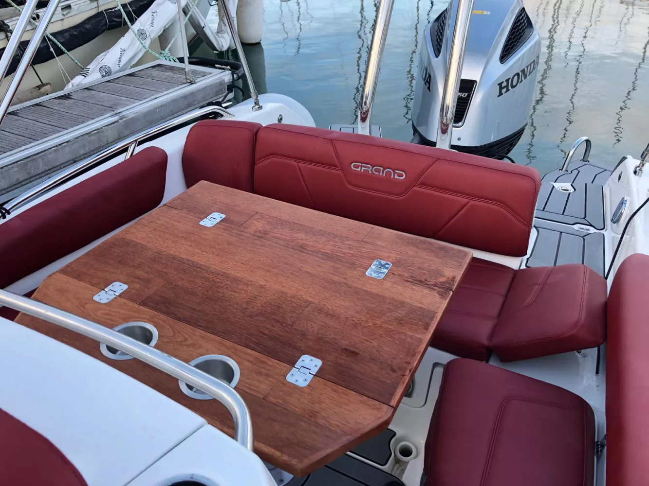 Motorisation : Moteur HONDA 250 Cv AL. Année 2015. 765 h. Entretien pro’s. Réservoir 260 Lts. Equipements : Anneau ski nautique, GPS GARMIN Echomap 9, Radio Fusion, Guindeau, Bimini, Tauds, Table de cockpit, Armement sécurité, Traitement carène. Inventaire détaillé sur demande.