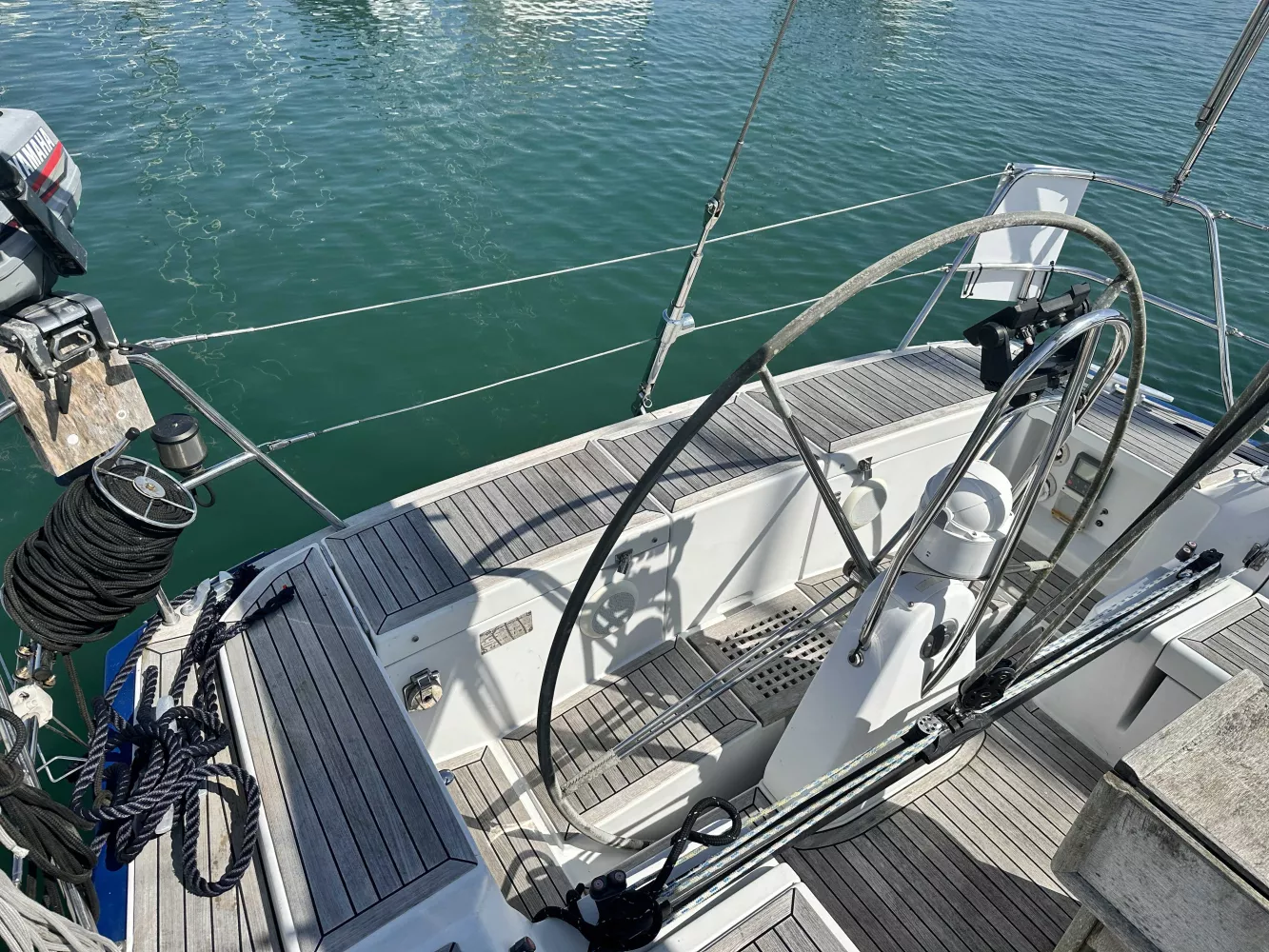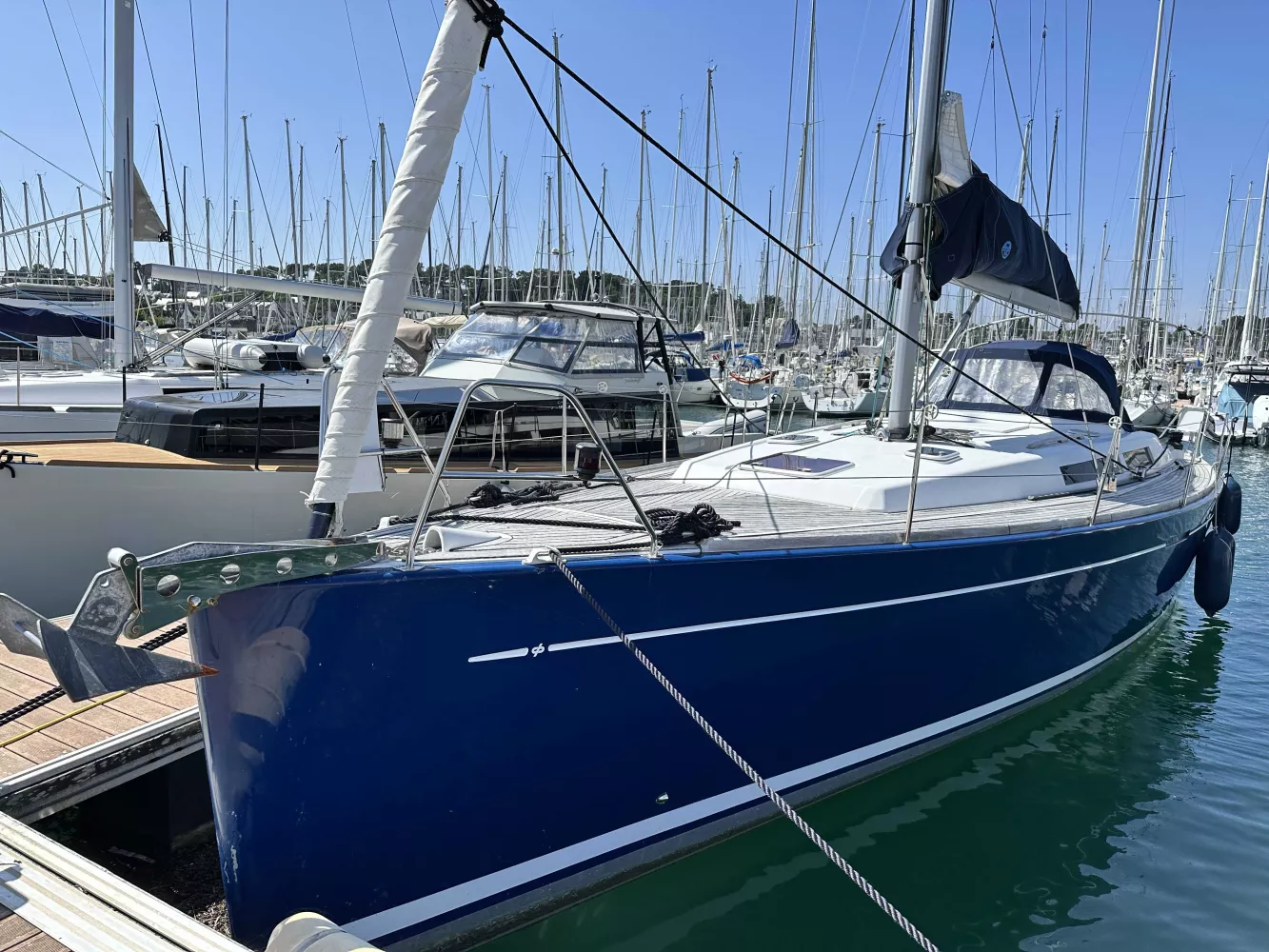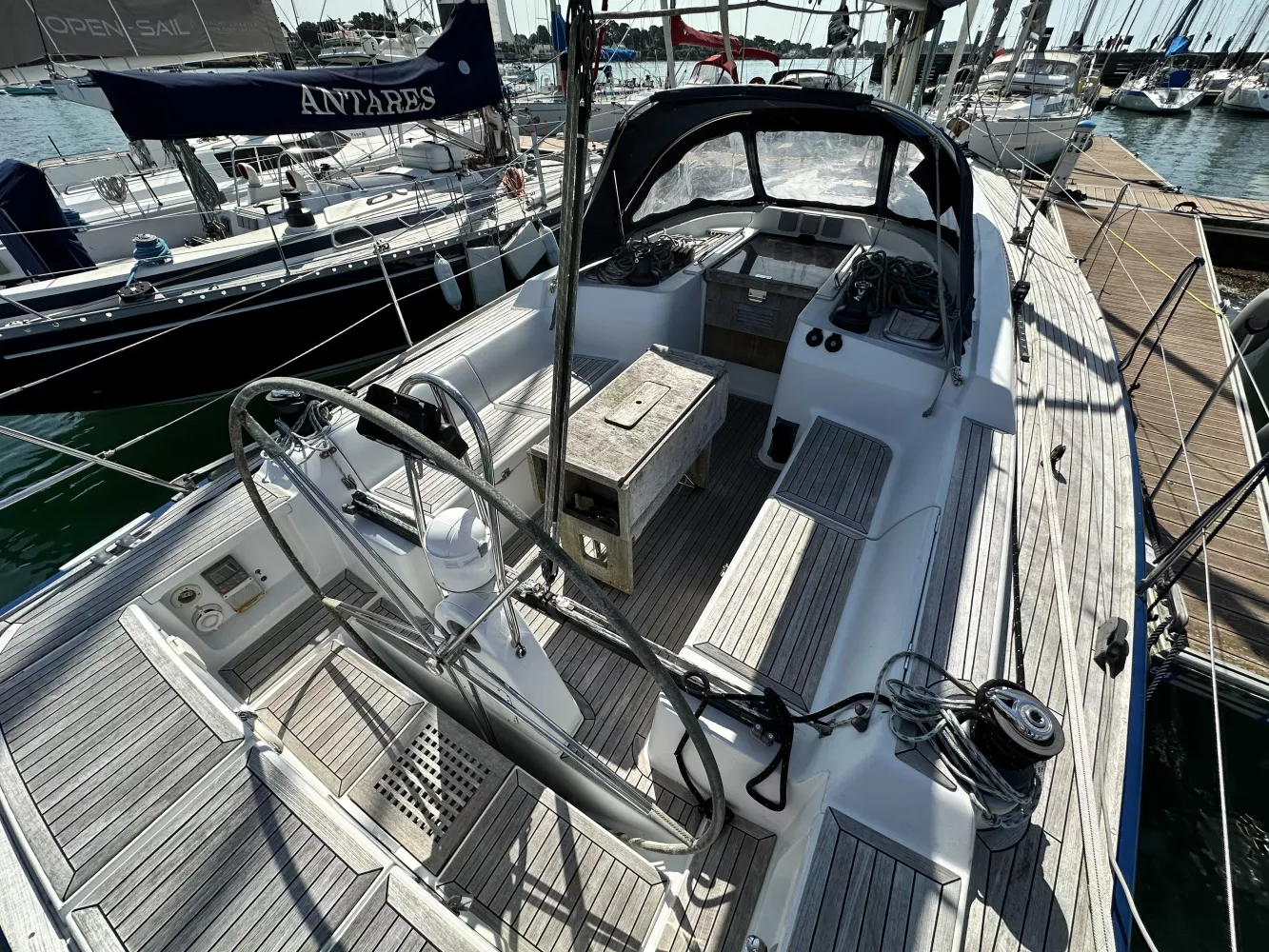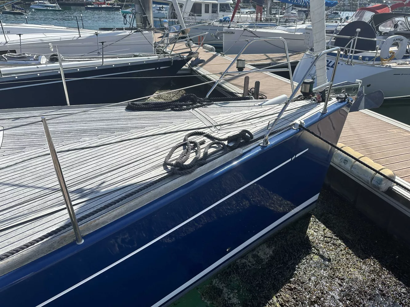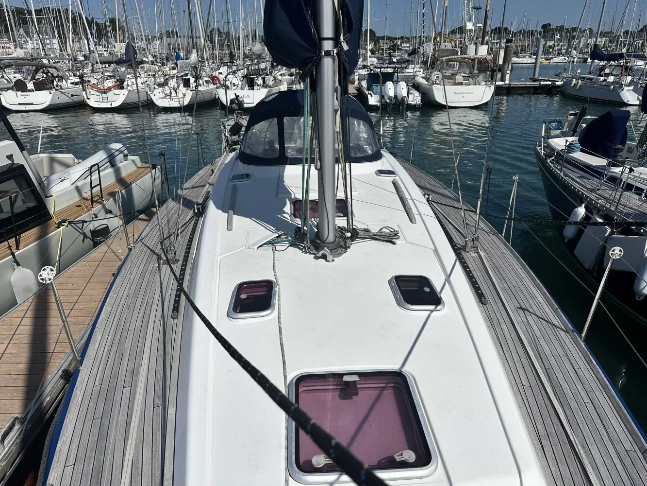 Peinture de coque refaite en 2016, moteur Volvo D2-55 CV 1000 h, joint de sail drive et coude d’échappement remplacés en 2023, vannes et passes-coques remplacés en 2024, toutes les batteries ont été changées en mars 2025, GV full batten North Sails, génois sur enrouleur All Purpose de 2021, Spi asymétrique incidence, lazy bag et lazy jack, hale-bas rigide, pataras réglable, 1 winch électrique, pont en teck, plateforme de bain avec échelle, capote de roof et bimini, guindeau électrique changé en 2015, douchette de cockpit eau chaude, chauffage à air pulsé, convertisseur 800 W 12/220 V, chauffe-eau, WC marin manuel, dessalinisateur à réviser, GPS Garmin Echomap UHD 72 CV au poste de barre (2022), loch/sondeur/speedo Raymarine ST60, girouette-anémomètre Raymarine ST60, pilote auto, radar Furuno 1623, VHF fixe Raymarine RAY54E, système audio Fusion MS-RA70, annexe 3D Tender Twin Vib Air 250 (2022).