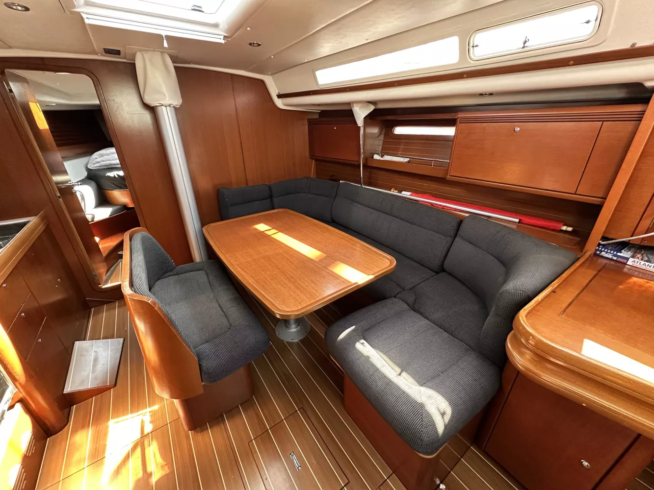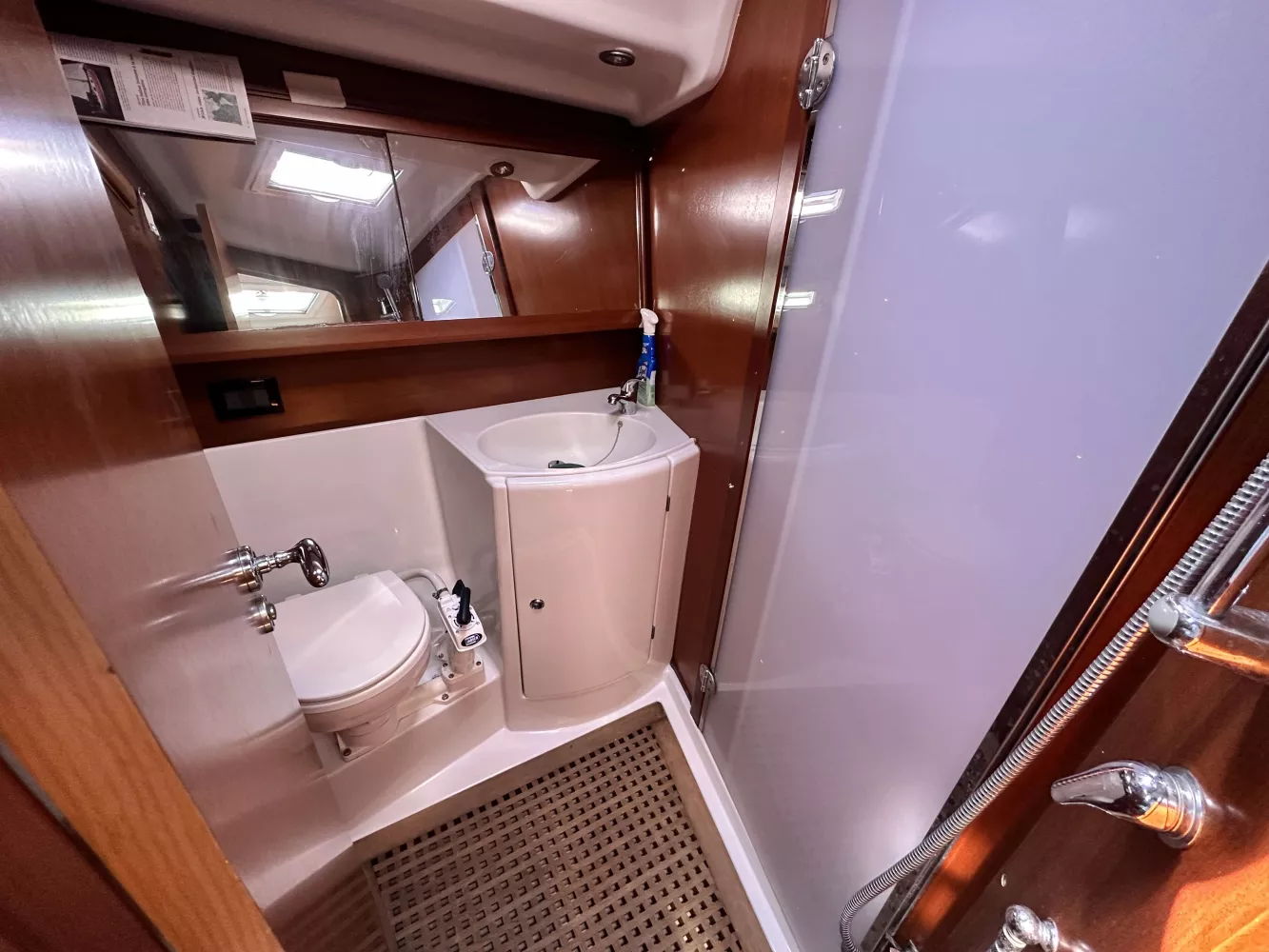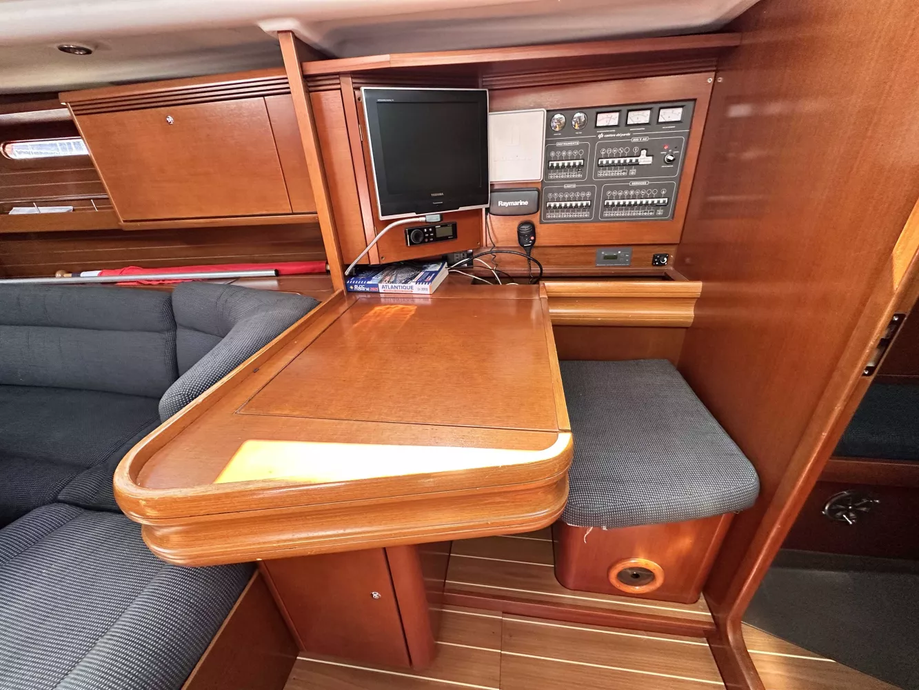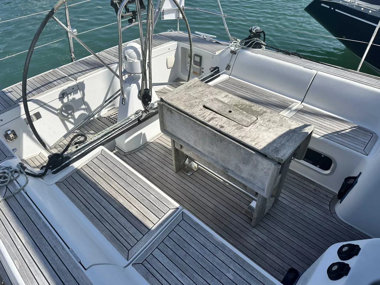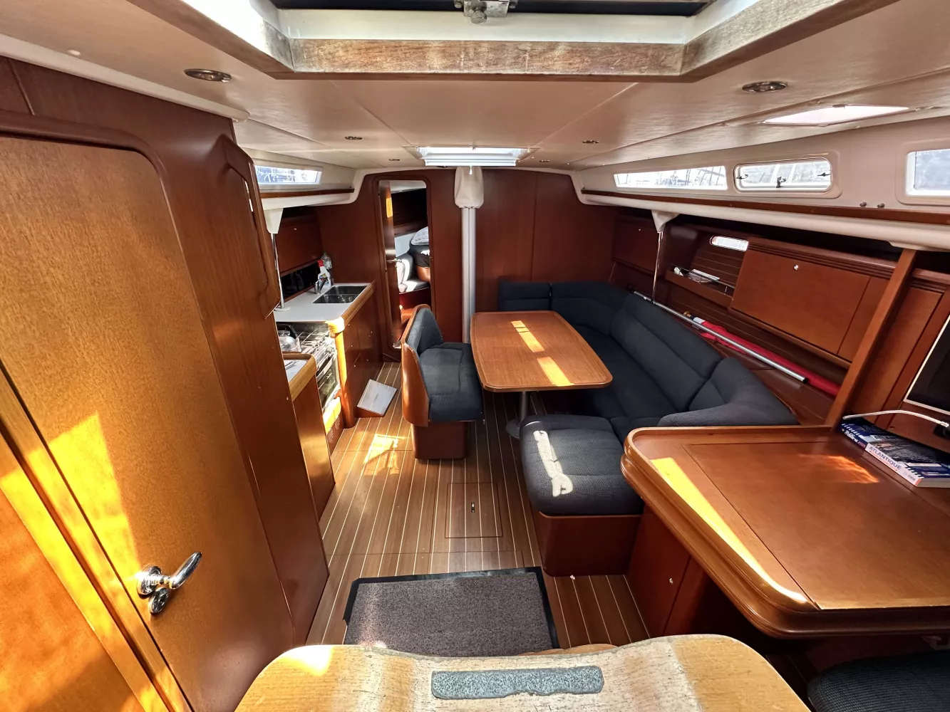 Peinture de coque refaite en 2016, moteur Volvo D2-55 CV 1000 h, joint de sail drive et coude d’échappement remplacés en 2023, vannes et passes-coques remplacés en 2024, toutes les batteries ont été changées en mars 2025, GV full batten North Sails, génois sur enrouleur All Purpose de 2021, Spi asymétrique incidence, lazy bag et lazy jack, hale-bas rigide, pataras réglable, 1 winch électrique, pont en teck, plateforme de bain avec échelle, capote de roof et bimini, guindeau électrique changé en 2015, douchette de cockpit eau chaude, chauffage à air pulsé, convertisseur 800 W 12/220 V, chauffe-eau, WC marin manuel, dessalinisateur à réviser, GPS Garmin Echomap UHD 72 CV au poste de barre (2022), loch/sondeur/speedo Raymarine ST60, girouette-anémomètre Raymarine ST60, pilote auto, radar Furuno 1623, VHF fixe Raymarine RAY54E, système audio Fusion MS-RA70, annexe 3D Tender Twin Vib Air 250 (2022).