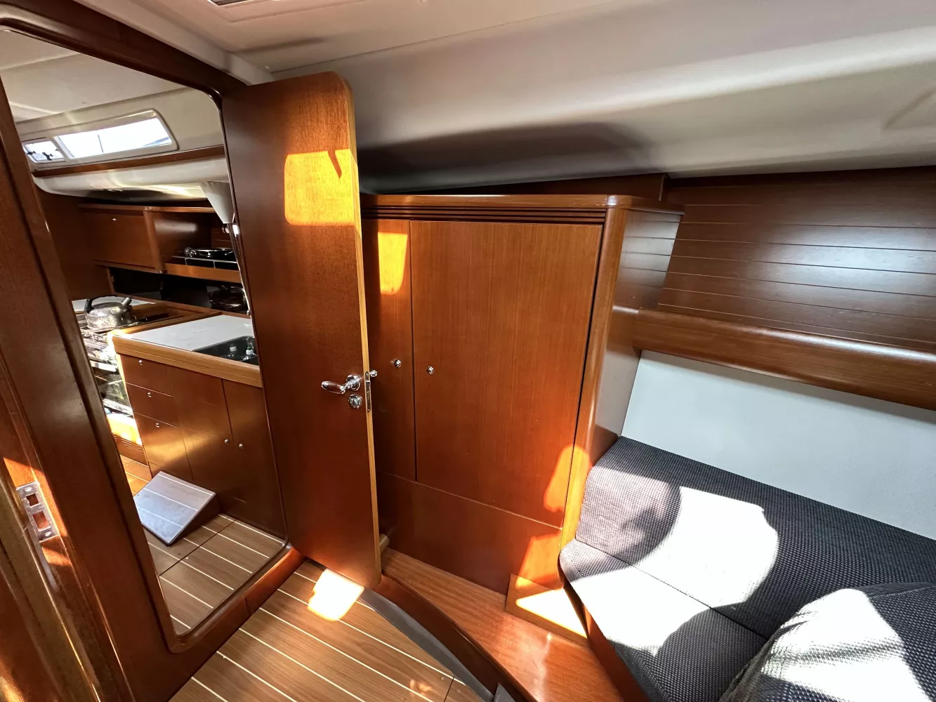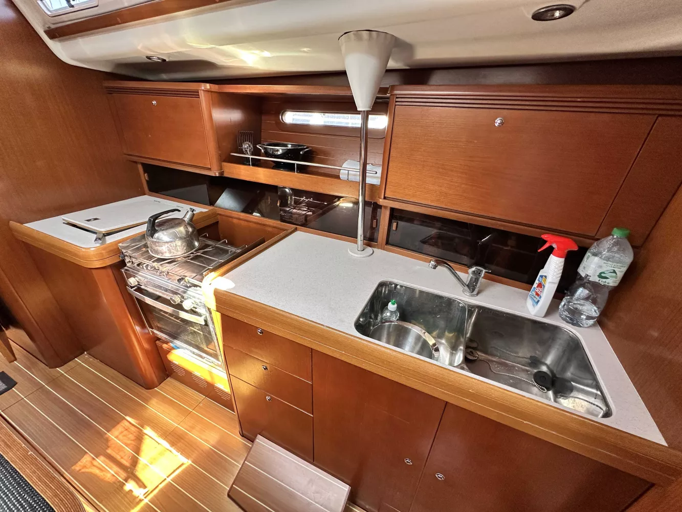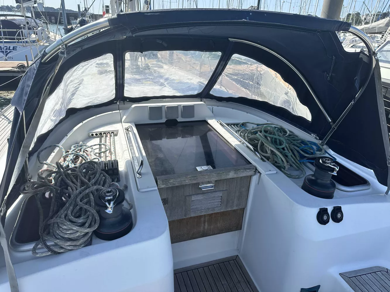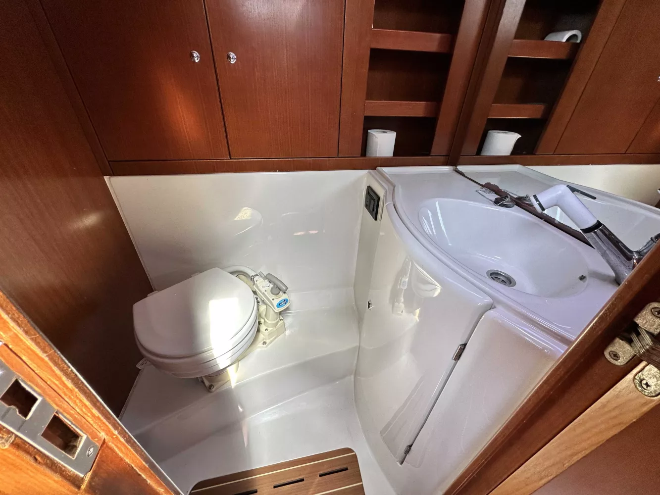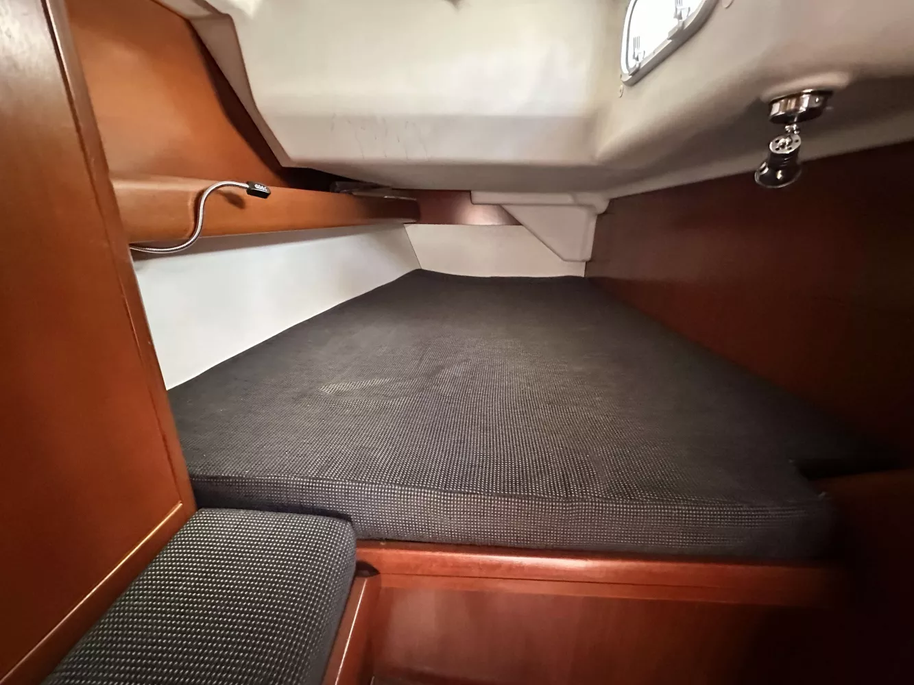 Peinture de coque refaite en 2016, moteur Volvo D2-55 CV 1000 h, joint de sail drive et coude d’échappement remplacés en 2023, vannes et passes-coques remplacés en 2024, toutes les batteries ont été changées en mars 2025, GV full batten North Sails, génois sur enrouleur All Purpose de 2021, Spi asymétrique incidence, lazy bag et lazy jack, hale-bas rigide, pataras réglable, 1 winch électrique, pont en teck, plateforme de bain avec échelle, capote de roof et bimini, guindeau électrique changé en 2015, douchette de cockpit eau chaude, chauffage à air pulsé, convertisseur 800 W 12/220 V, chauffe-eau, WC marin manuel, dessalinisateur à réviser, GPS Garmin Echomap UHD 72 CV au poste de barre (2022), loch/sondeur/speedo Raymarine ST60, girouette-anémomètre Raymarine ST60, pilote auto, radar Furuno 1623, VHF fixe Raymarine RAY54E, système audio Fusion MS-RA70, annexe 3D Tender Twin Vib Air 250 (2022).
