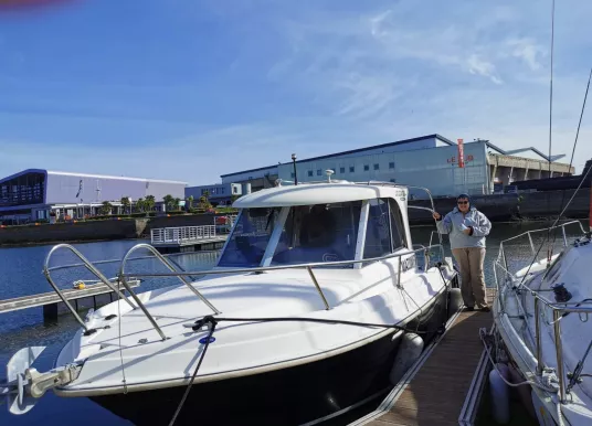 GUY MARINE EVADA 740 bateau pêche promenade habitable bien entretenu année 2006 (moteurs 2006,2x90CV TOATSU TIdI)