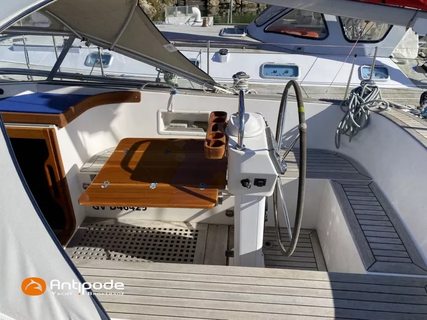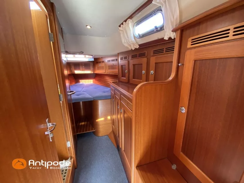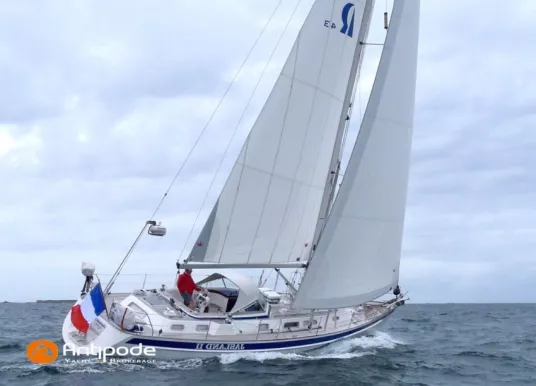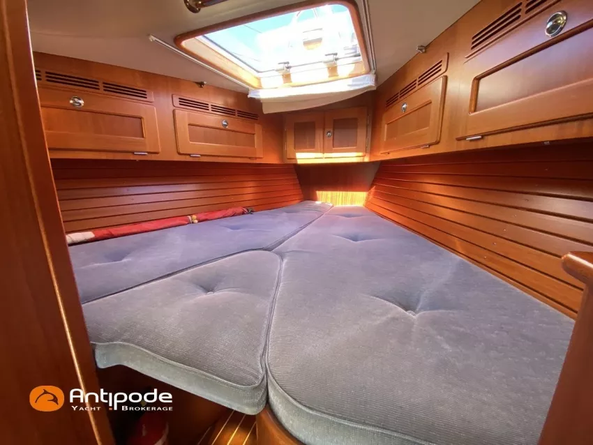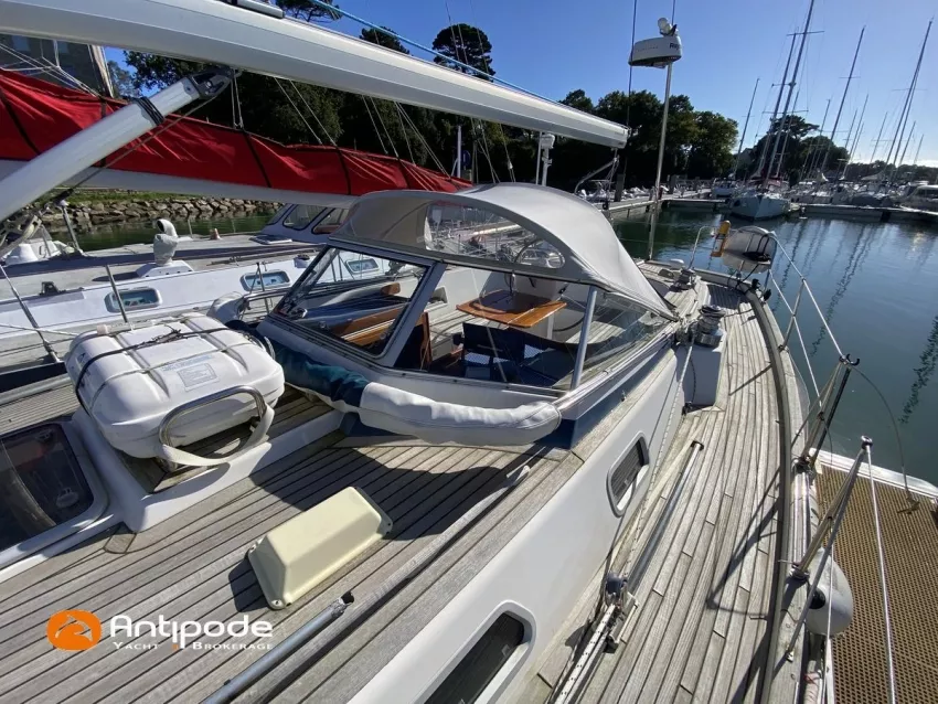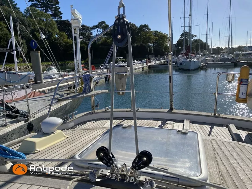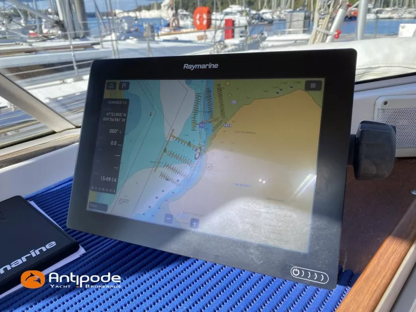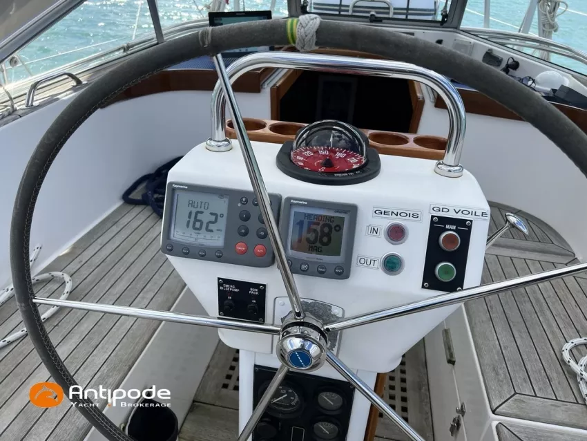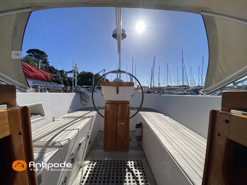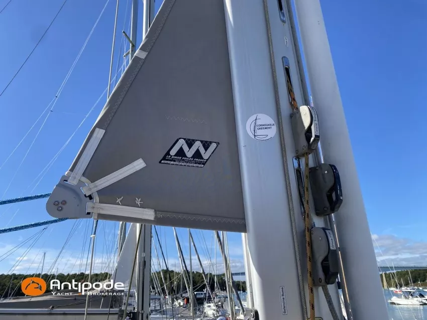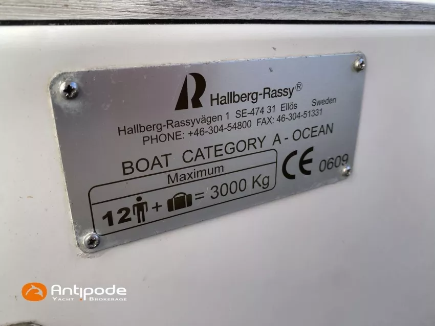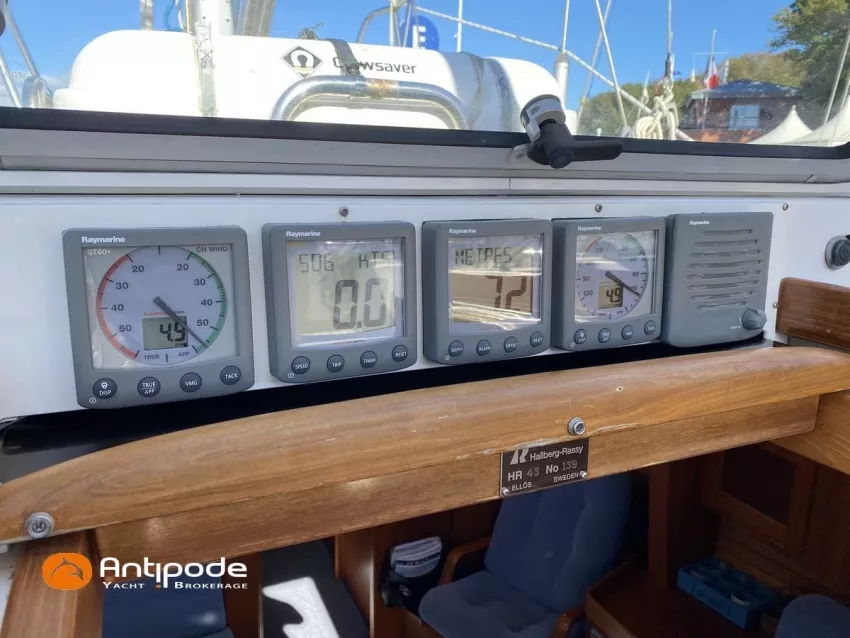 HALLBERG RASSY 43, 2007, 1ère main, VOLVO D2 75, 75 cv (2154 h), Propulseur d'étrave, Version d'aménagement intérieur 1 cabine avant, 1 cabine arrière, 2 cabinets de toilettes et douche, 2 winchs électriques d'écoute de génois , Winch électrique de manoeuvre sur roof, Bout-dehors inox pour spi asymétrique, Passavants teck, Fond de cockpit latté teck, Table de cockpit avec abattants bois, 2x Capote de roof - (2014/2024), Bimini top cockpit, Taud d'hivernage, Portique moteur d'annexe, Gréement dormant câble monotoron - 2018, Grand-voile enrouleur - LE BIHAN Hydranet 2016, Enrouleur de grand-voile electriqye - Furlex, Enrouleur de génois electrique - Furlex, Génois sur enrouleur - LE BIHAN Hydranet 2014, Etai largable avec système de tension, Voile de brise pour étai largable, Tangon carbone - 2009, Spinnaker triradial classique, Code 0 sur emmagasineur , Pataras réglable révisé 2018, Pilote automatique in board, Télécommande à distance du pilote -NKE, Répétiteur (s) Raymarine ST 60 cockpit, GPS / lecteur de carte dans le cockpit - AXIOM 12' 2022, Radar avec radôme sur pataras - Quantum Q24d 2022, Transpondeur AIS (émetteur récepteur) - 2010, Unité réfrigérante 12 V ouverture par le dessus, Conservateur froid négatif (freezer), Four à micro-ondes, Machine à laver le linge / sèche-linge V - candy, Prise de quai 220 V + chargeur de batteries - Mastervolt 12v /75A 2025, Batterie moteur - 71Ah 2021, Convertisseur 12 V / 220 V - Mastervolt, Contrôleur / gestionnaire de batteries, Chauffage WEBASTO, Générateur fixe 220 V - Whisper 3.5 mastervolt 2008 64h, Dessalinisateur 12 V - Dessalator 60l/h 2007 130h, 2x WC électrique, Radeau de survie - Crewsaver 6pl -24h 2024 + grab-bag, Mouillage principal ancre DELTA 20kg + 65m de chaine, Annexe - Zodiac cadet 260, Moteur hors-bord - Suzuki 2.5 cv 2018, Visible Bretagne. Pour plus d'informations ou pour fixer un rendez-vous de visite, contact : François Mouchel 06 62 30 97 30 - francois@antipode-yachts.com