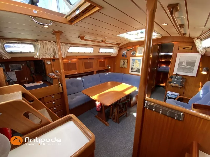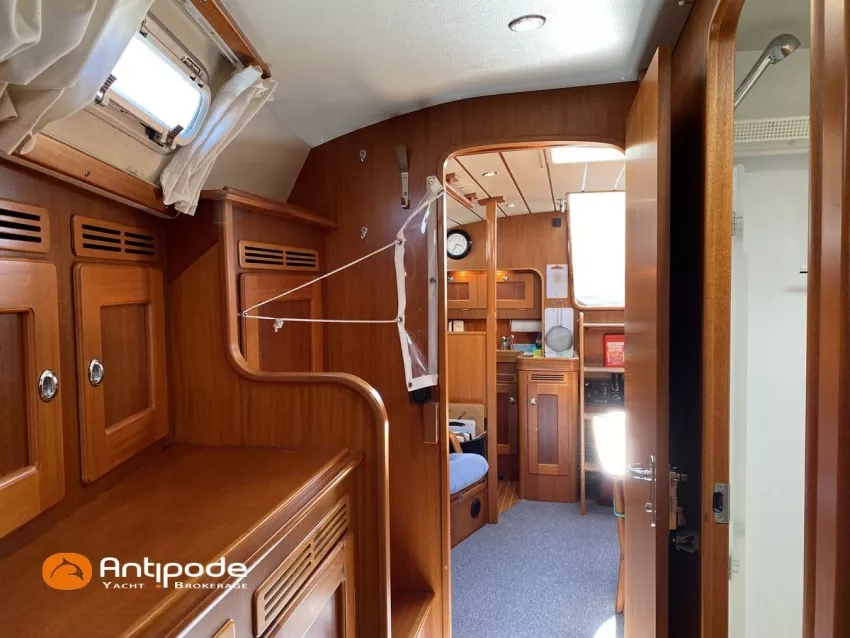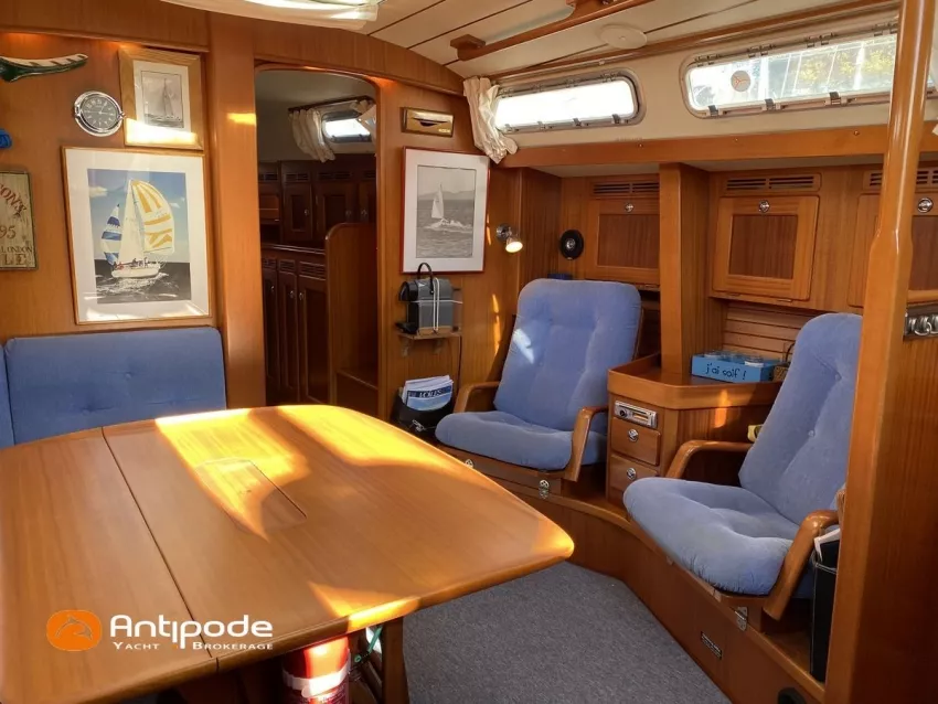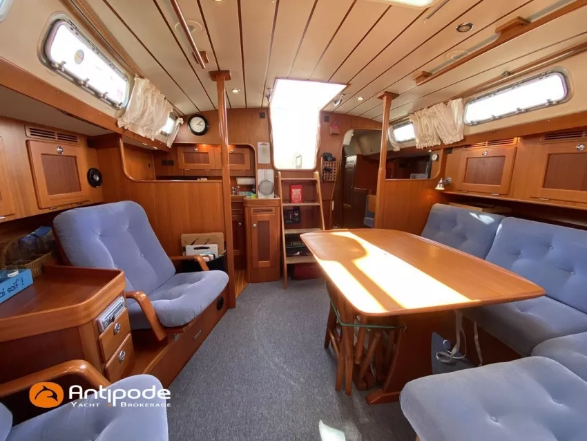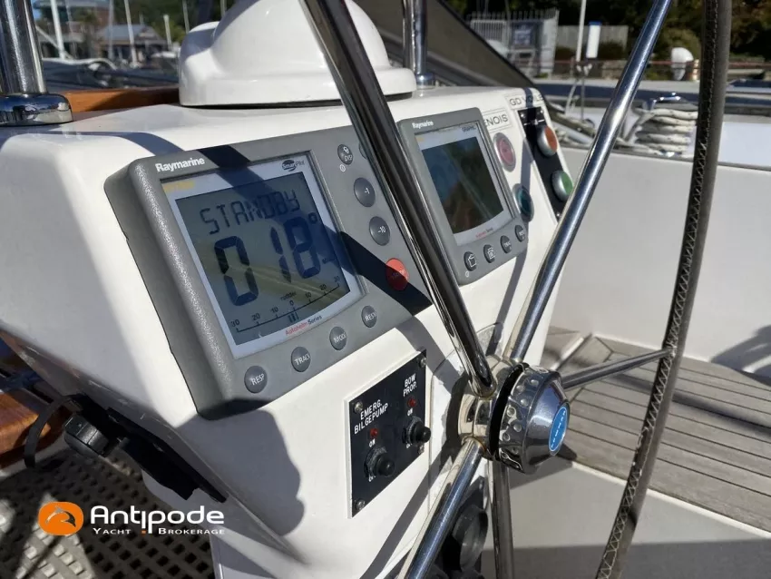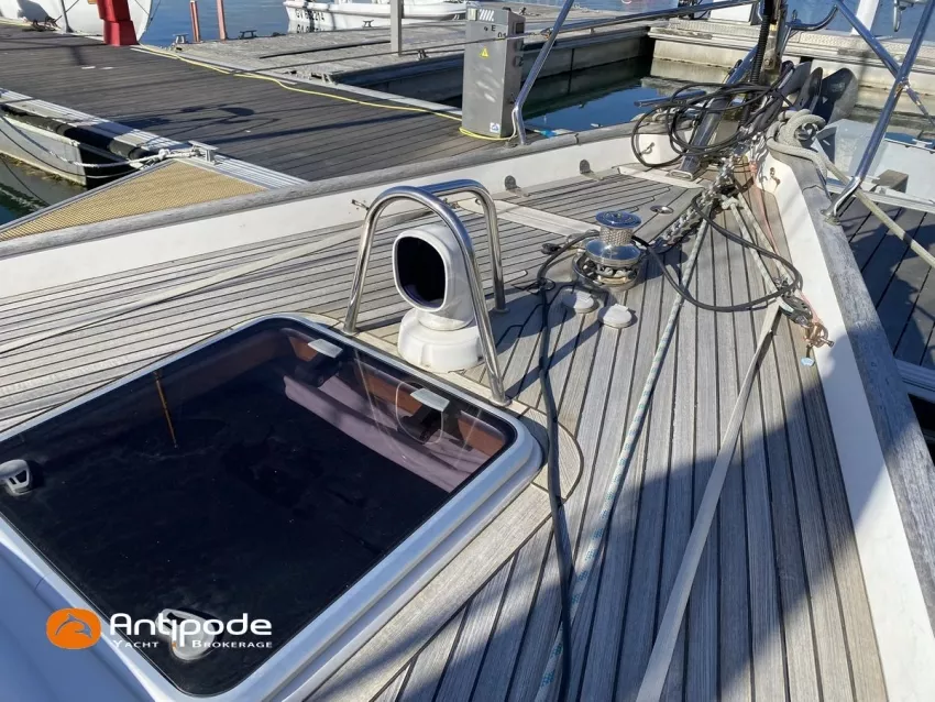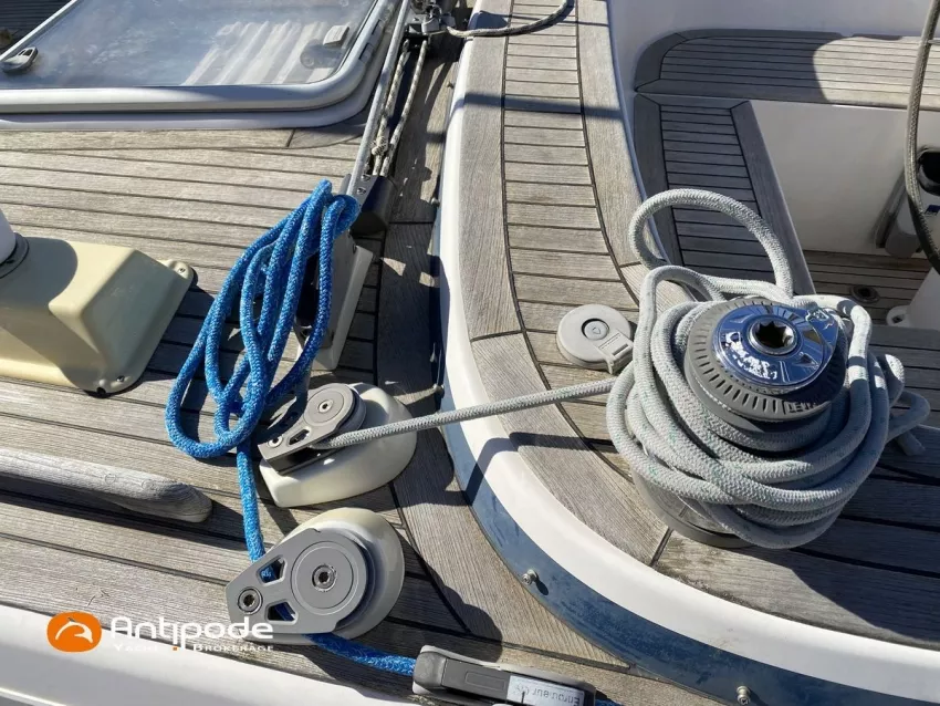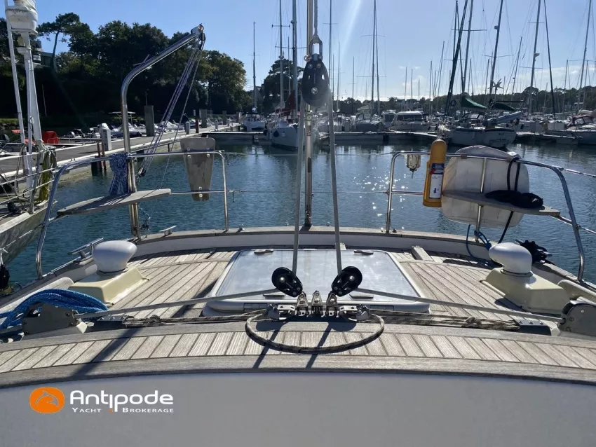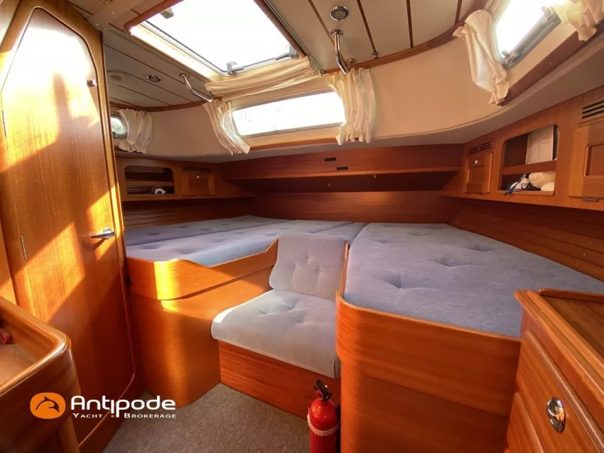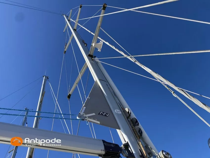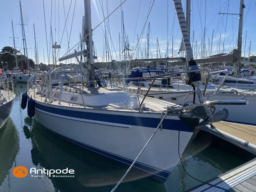 HALLBERG RASSY 43, 2007, 1ère main, VOLVO D2 75, 75 cv (2154 h), Propulseur d'étrave, Version d'aménagement intérieur 1 cabine avant, 1 cabine arrière, 2 cabinets de toilettes et douche, 2 winchs électriques d'écoute de génois , Winch électrique de manoeuvre sur roof, Bout-dehors inox pour spi asymétrique, Passavants teck, Fond de cockpit latté teck, Table de cockpit avec abattants bois, 2x Capote de roof - (2014/2024), Bimini top cockpit, Taud d'hivernage, Portique moteur d'annexe, Gréement dormant câble monotoron - 2018, Grand-voile enrouleur - LE BIHAN Hydranet 2016, Enrouleur de grand-voile electriqye - Furlex, Enrouleur de génois electrique - Furlex, Génois sur enrouleur - LE BIHAN Hydranet 2014, Etai largable avec système de tension, Voile de brise pour étai largable, Tangon carbone - 2009, Spinnaker triradial classique, Code 0 sur emmagasineur , Pataras réglable révisé 2018, Pilote automatique in board, Télécommande à distance du pilote -NKE, Répétiteur (s) Raymarine ST 60 cockpit, GPS / lecteur de carte dans le cockpit - AXIOM 12' 2022, Radar avec radôme sur pataras - Quantum Q24d 2022, Transpondeur AIS (émetteur récepteur) - 2010, Unité réfrigérante 12 V ouverture par le dessus, Conservateur froid négatif (freezer), Four à micro-ondes, Machine à laver le linge / sèche-linge V - candy, Prise de quai 220 V + chargeur de batteries - Mastervolt 12v /75A 2025, Batterie moteur - 71Ah 2021, Convertisseur 12 V / 220 V - Mastervolt, Contrôleur / gestionnaire de batteries, Chauffage WEBASTO, Générateur fixe 220 V - Whisper 3.5 mastervolt 2008 64h, Dessalinisateur 12 V - Dessalator 60l/h 2007 130h, 2x WC électrique, Radeau de survie - Crewsaver 6pl -24h 2024 + grab-bag, Mouillage principal ancre DELTA 20kg + 65m de chaine, Annexe - Zodiac cadet 260, Moteur hors-bord - Suzuki 2.5 cv 2018, Visible Bretagne. Pour plus d'informations ou pour fixer un rendez-vous de visite, contact : François Mouchel 06 62 30 97 30 - francois@antipode-yachts.com