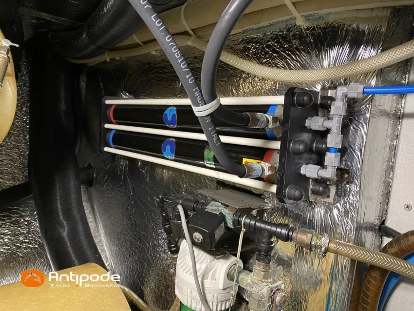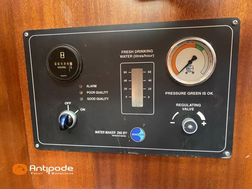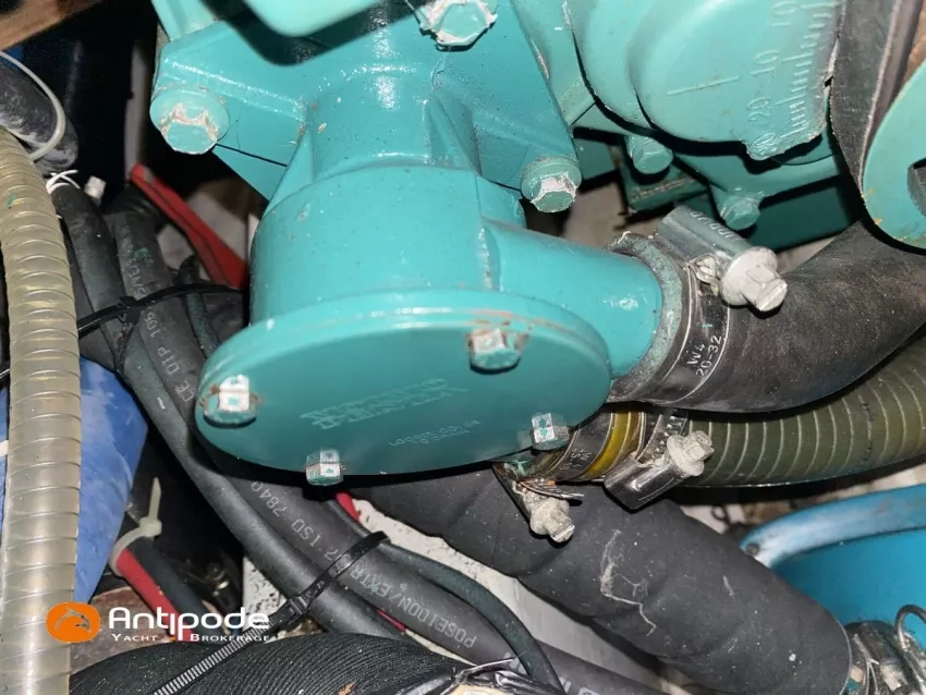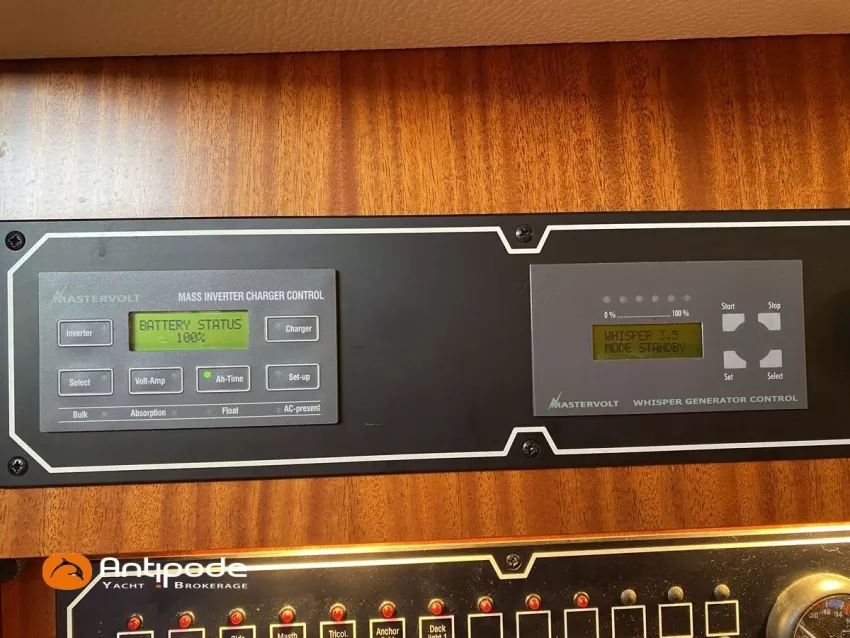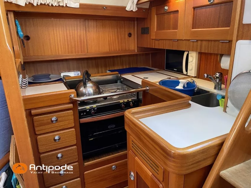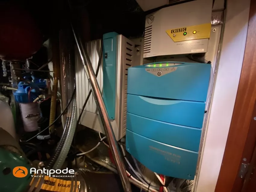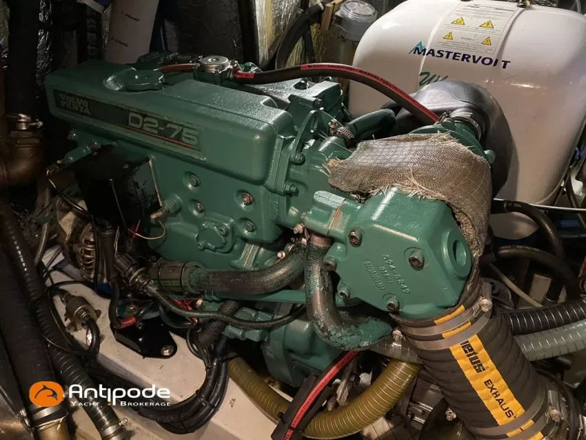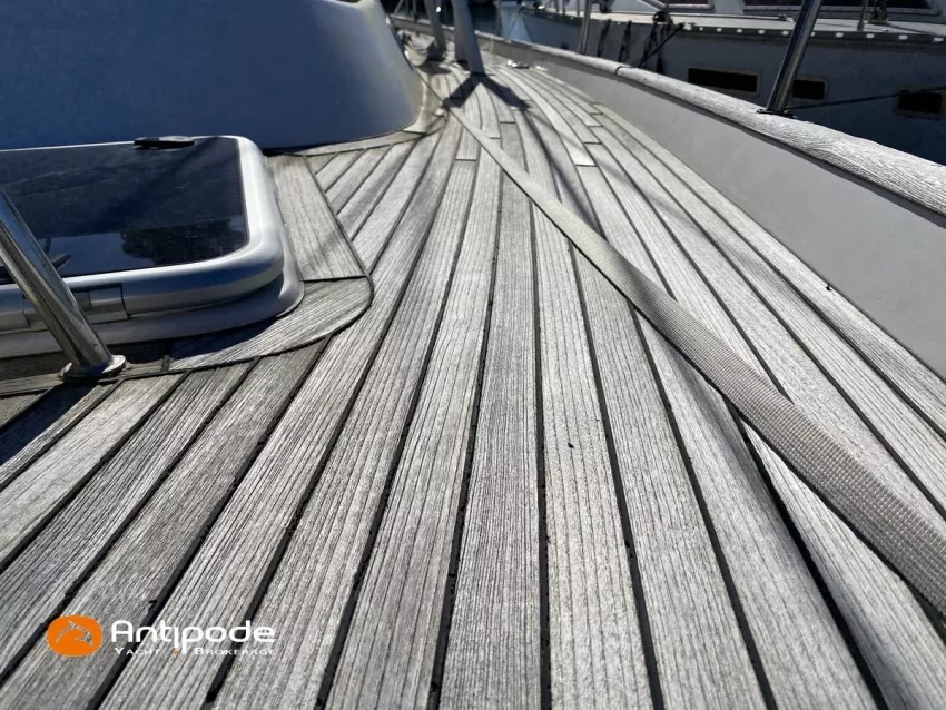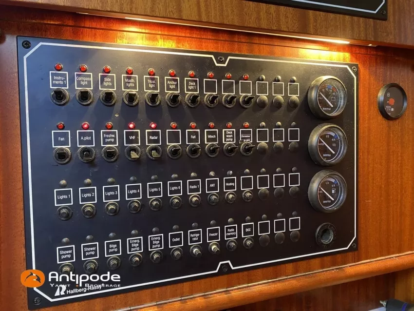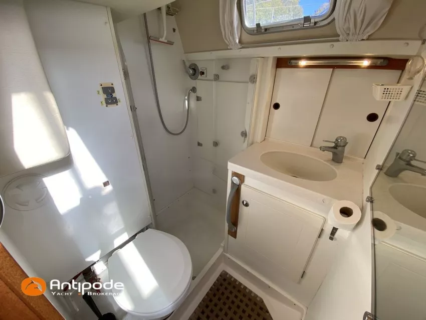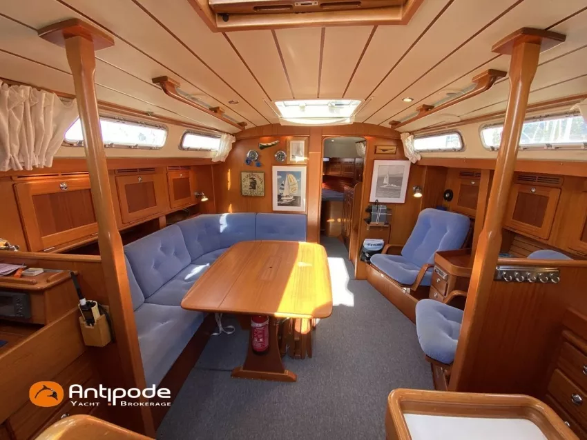 HALLBERG RASSY 43, 2007, 1ère main, VOLVO D2 75, 75 cv (2154 h), Propulseur d'étrave, Version d'aménagement intérieur 1 cabine avant, 1 cabine arrière, 2 cabinets de toilettes et douche, 2 winchs électriques d'écoute de génois , Winch électrique de manoeuvre sur roof, Bout-dehors inox pour spi asymétrique, Passavants teck, Fond de cockpit latté teck, Table de cockpit avec abattants bois, 2x Capote de roof - (2014/2024), Bimini top cockpit, Taud d'hivernage, Portique moteur d'annexe, Gréement dormant câble monotoron - 2018, Grand-voile enrouleur - LE BIHAN Hydranet 2016, Enrouleur de grand-voile electriqye - Furlex, Enrouleur de génois electrique - Furlex, Génois sur enrouleur - LE BIHAN Hydranet 2014, Etai largable avec système de tension, Voile de brise pour étai largable, Tangon carbone - 2009, Spinnaker triradial classique, Code 0 sur emmagasineur , Pataras réglable révisé 2018, Pilote automatique in board, Télécommande à distance du pilote -NKE, Répétiteur (s) Raymarine ST 60 cockpit, GPS / lecteur de carte dans le cockpit - AXIOM 12' 2022, Radar avec radôme sur pataras - Quantum Q24d 2022, Transpondeur AIS (émetteur récepteur) - 2010, Unité réfrigérante 12 V ouverture par le dessus, Conservateur froid négatif (freezer), Four à micro-ondes, Machine à laver le linge / sèche-linge V - candy, Prise de quai 220 V + chargeur de batteries - Mastervolt 12v /75A 2025, Batterie moteur - 71Ah 2021, Convertisseur 12 V / 220 V - Mastervolt, Contrôleur / gestionnaire de batteries, Chauffage WEBASTO, Générateur fixe 220 V - Whisper 3.5 mastervolt 2008 64h, Dessalinisateur 12 V - Dessalator 60l/h 2007 130h, 2x WC électrique, Radeau de survie - Crewsaver 6pl -24h 2024 + grab-bag, Mouillage principal ancre DELTA 20kg + 65m de chaine, Annexe - Zodiac cadet 260, Moteur hors-bord - Suzuki 2.5 cv 2018, Visible Bretagne. Pour plus d'informations ou pour fixer un rendez-vous de visite, contact : François Mouchel 06 62 30 97 30 - francois@antipode-yachts.com
