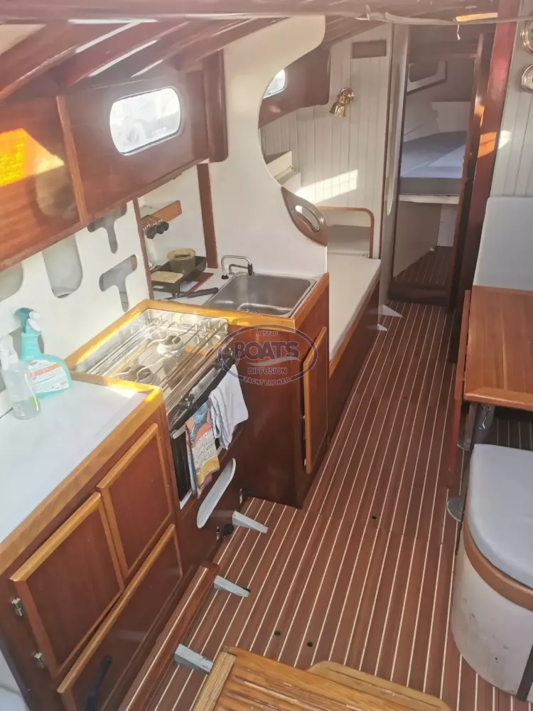 VISIBLE À LA ROCHELLE - CONTACTEZ JEAN-PIERRE OU AUDREY AU 06 09 42 34 55 - europeanboatcourtage@gmail.com - Le Golden Hind 31, construit en 1968, est un bateau ancien mais sain, ayant bénéficié d’une grosse rénovation sérieuse, nécessitant aujourd’hui un entretien courant et quelques remises à niveau, mais reposant sur une très bonne base. Il est adapté à la croisière côtière ainsi qu'à la navigation hauturière. Ce croiseur à quille à faible tirant d'eau est échouable.