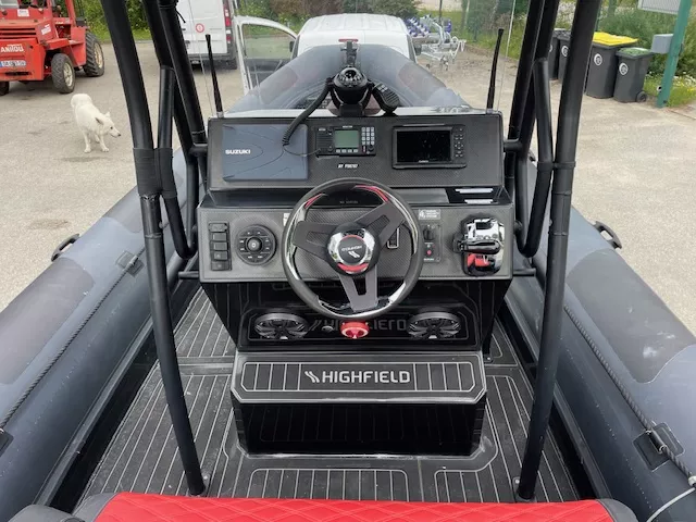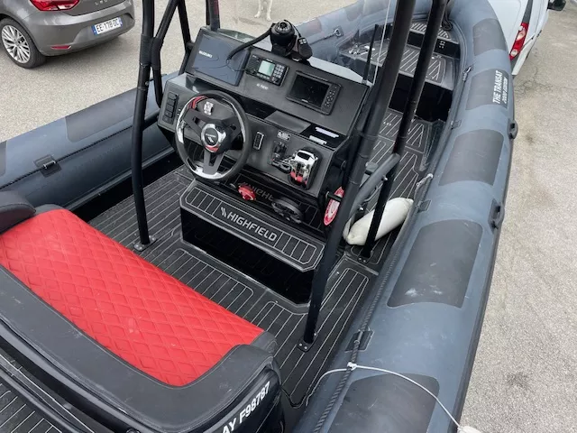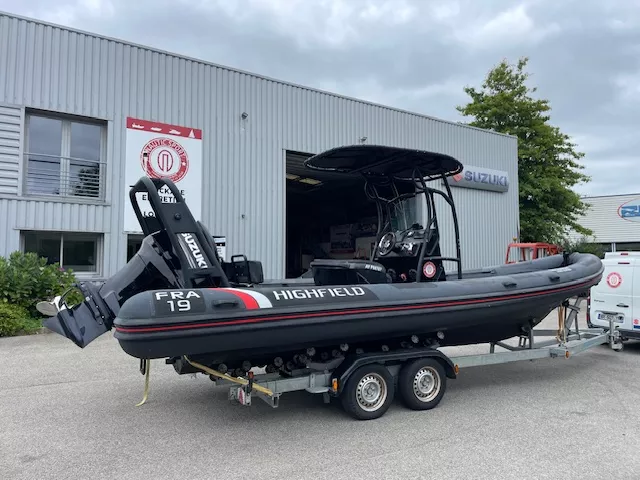 Options inclus : Remorque routière Sun Way – GPS/SONDEUR GARMIN – ECRAN SUZUKI – Système son – VHF fixe avec antenne – T-Top – Roll bar avec point de traction en hauteur – Coussins de cockpit – Sol Evateck – Bitte d’amarrage + cadène de levage – Echelle de bain – Flotteurs hypalon – Armement de sécurité – Antifouling