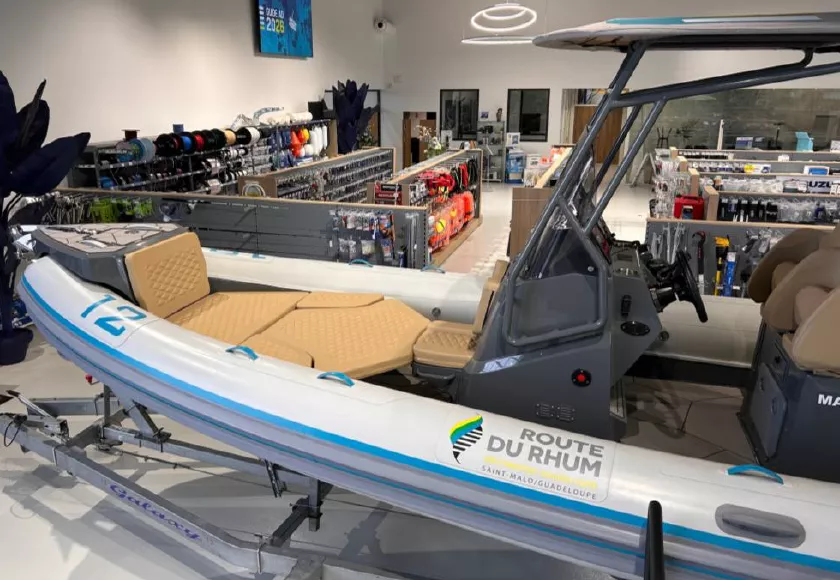 Bateaux officiels développés en partenariat avec la Route du Rhum, produits en quantité très limitée (58 unités au total), numérotés et personnalisés aux couleurs de l’édition 2026.