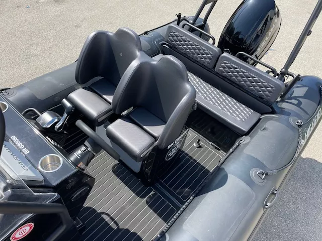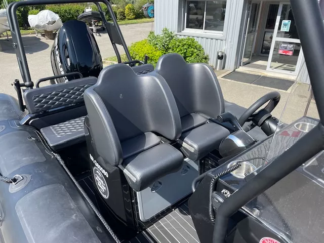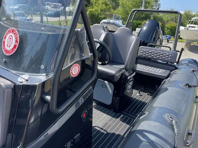 Options inclus : Flotteur Hypalon – Console et Pack électrique – Siège et Banquette arrière intégré avec coussins avec table – Cadènes levage et anneaux de remorquage – Sol Sea Deck – Bande de ragage et Bande de protection d’étrave – Davier – Roll Bar : avec échelle incluse – Coussin avant – Armement de sécurité – Préparation de carène