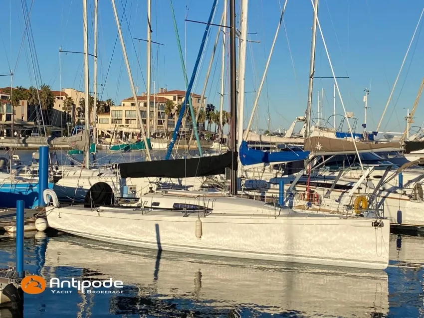J 111, 2011, Volvo D1-20, 19 cv (780 h), Couchage supplémentaire dans la soute arrière tribord (1.80m x 1.40m), Toiles anti-roulis dans le carré, Housses de protection des boiseries basses du carré (cuisine, table à cartes), Bout-dehors carbone rétractable avec sous-barbe dynemaa pour spi asymétrique, Barre à roue aluminium (roulements remplacés en 2024), Mât carbone haut module, posé sur la quille - Hall Spars, Covering sur mât pour protection UV, Etai double gorge Tasker 2024, Gréement dormant Rod Février 2022, 18 voiles utilisables, Grand voile North 3di 2ris régate 2017 bon état toujours utilisée, Grand voile Quantun Carbon Fusion M7 2023 peu servie, Grand voile North 2011 état 40%, Grand voile North 2014 Etat 40%, J1 + J2 + J3 Black aramid Carbon North 2017 bon état, J4 North Dacron 2017 Trés bon état, Tourmentin North 2017 jamais servi, Code 0 North + galette enrouleur 2017 Très bon état, A3 North 2017 avec fermeture éclair bon état, A3 North 2020 très bon état, J1 + J2 + J3 Quantun 2023 Carbon fusion M7 peu servi, A1 + A2 + A5 Quantun peu servi, Taud de grand voile , Gréement de spi asymétrique, Drisse de Code 0 mouflée, Gréement courant Dyneema haut module 2024, Barbers pour spi et pour génois, Pataras textile sur vérin hydraulique avec renvois latéraux au niveau de la barre d'écoute, Electronique B&G 2024 - Hercules Performance, Pilote automatique in board, Triton BG relié sur nmea pack Zeus 2025, Pack vent ws 320 bluetooth relié centrale 2025, Répétiteur B&G Nemesis 12 pouces sur jumbo de mât, Sonde Dst 810 vitesse / sondeur , Antenne GPS Zg 100 , GPS / Traceur Zeus 12 dans le cockpit – avec cartes Irlande / Angleterre / France, Répétiteur GFD Triton dans le cockpit, Haut-parleur VHF cockpit, Balise de détresse - Ocean Signal, Unité réfrigérante 12 V ouverture par le dessus, Gazinière 2 feux + four, Prise de quai 220 V et cable 15m (2025), Batterie moteur avec chargeur dédié (2025), Batterie service - Lithium 200 Ah avec chargeur dédié (2025), Contrôleur / gestionnaire de batteries - Victron, Chauffage EBERSPACHER, Feux de navigation à LED, Réservoir rigide eaux noires, Radeau de survie - Transocean Plastimo 6 places révisé en 2024, Carène préparée régate dès l'origine et refaite chaque année après ponçage en Speedy Carbonium, Profils quille et safran aux plans de l'architecte, 9 gilets autogonflants / Feux à mains à jour / Extincteurs à réviser, Mouillage principal Guardian avec bout plombé de 25m, Amarres et défenses, Visible Méditerranée. Pour plus d'informations ou pour fixer un rendez-vous de visite, contact : Jean-Baptiste Lemaire 06 10 25 00 03 - jb@antipode-yachts.com