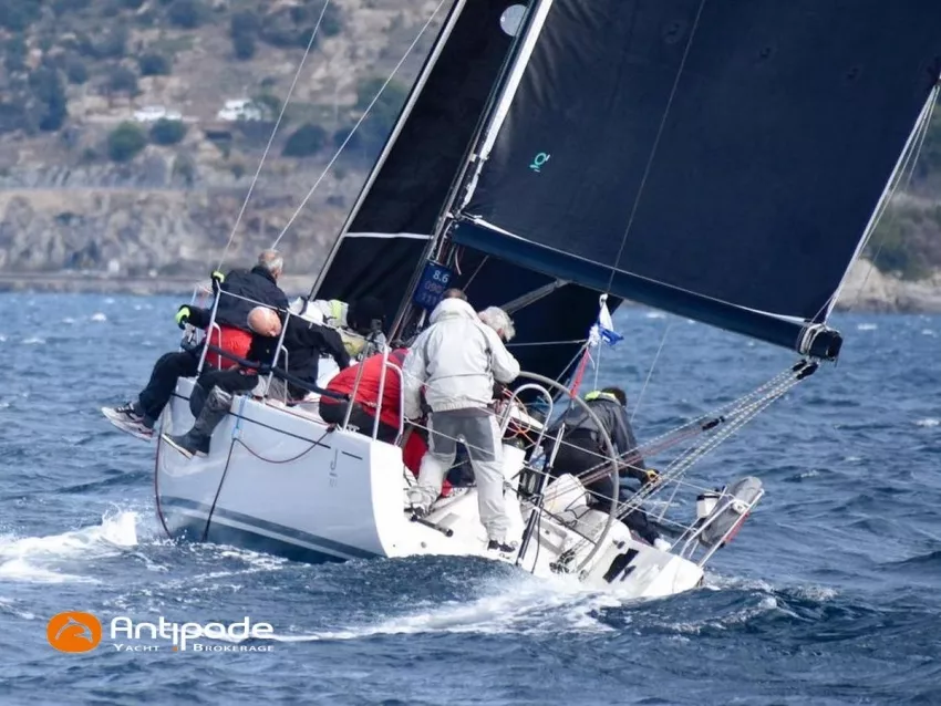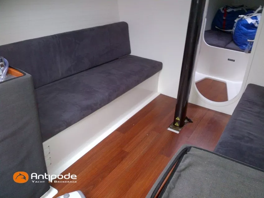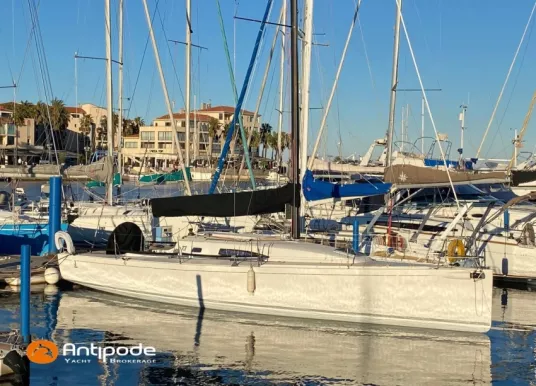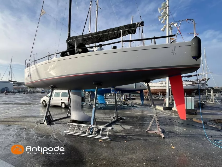 J 111, 2011, Volvo D1-20, 19 cv (780 h), Couchage supplémentaire dans la soute arrière tribord (1.80m x 1.40m), Toiles anti-roulis dans le carré, Housses de protection des boiseries basses du carré (cuisine, table à cartes), Bout-dehors carbone rétractable avec sous-barbe dynemaa pour spi asymétrique, Barre à roue aluminium (roulements remplacés en 2024), Mât carbone haut module, posé sur la quille - Hall Spars, Covering sur mât pour protection UV, Etai double gorge Tasker 2024, Gréement dormant Rod Février 2022, 18 voiles utilisables, Grand voile North 3di 2ris régate 2017 bon état toujours utilisée, Grand voile Quantun Carbon Fusion M7 2023 peu servie, Grand voile North 2011 état 40%, Grand voile North 2014 Etat 40%, J1 + J2 + J3 Black aramid Carbon North 2017 bon état, J4 North Dacron 2017 Trés bon état, Tourmentin North 2017 jamais servi, Code 0 North + galette enrouleur 2017 Très bon état, A3 North 2017 avec fermeture éclair bon état, A3 North 2020 très bon état, J1 + J2 + J3 Quantun 2023 Carbon fusion M7 peu servi, A1 + A2 + A5 Quantun peu servi, Taud de grand voile , Gréement de spi asymétrique, Drisse de Code 0 mouflée, Gréement courant Dyneema haut module 2024, Barbers pour spi et pour génois, Pataras textile sur vérin hydraulique avec renvois latéraux au niveau de la barre d'écoute, Electronique B&G 2024 - Hercules Performance, Pilote automatique in board, Triton BG relié sur nmea pack Zeus 2025, Pack vent ws 320 bluetooth relié centrale 2025, Répétiteur B&G Nemesis 12 pouces sur jumbo de mât, Sonde Dst 810 vitesse / sondeur , Antenne GPS Zg 100 , GPS / Traceur Zeus 12 dans le cockpit – avec cartes Irlande / Angleterre / France, Répétiteur GFD Triton dans le cockpit, Haut-parleur VHF cockpit, Balise de détresse - Ocean Signal, Unité réfrigérante 12 V ouverture par le dessus, Gazinière 2 feux + four, Prise de quai 220 V et cable 15m (2025), Batterie moteur avec chargeur dédié (2025), Batterie service - Lithium 200 Ah avec chargeur dédié (2025), Contrôleur / gestionnaire de batteries - Victron, Chauffage EBERSPACHER, Feux de navigation à LED, Réservoir rigide eaux noires, Radeau de survie - Transocean Plastimo 6 places révisé en 2024, Carène préparée régate dès l'origine et refaite chaque année après ponçage en Speedy Carbonium, Profils quille et safran aux plans de l'architecte, 9 gilets autogonflants / Feux à mains à jour / Extincteurs à réviser, Mouillage principal Guardian avec bout plombé de 25m, Amarres et défenses, Visible Méditerranée. Pour plus d'informations ou pour fixer un rendez-vous de visite, contact : Jean-Baptiste Lemaire 06 10 25 00 03 - jb@antipode-yachts.com