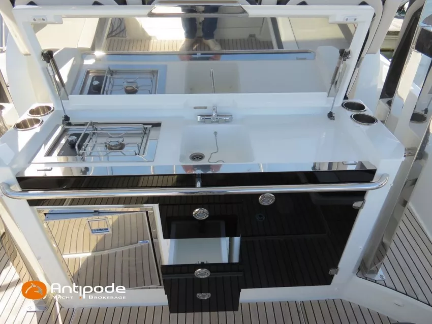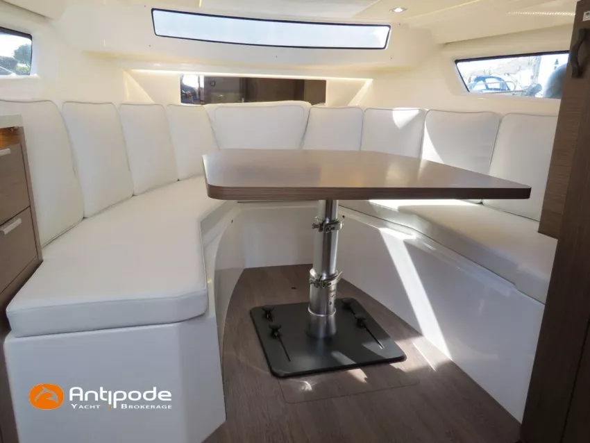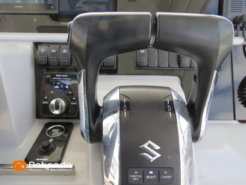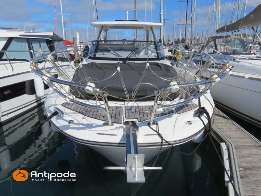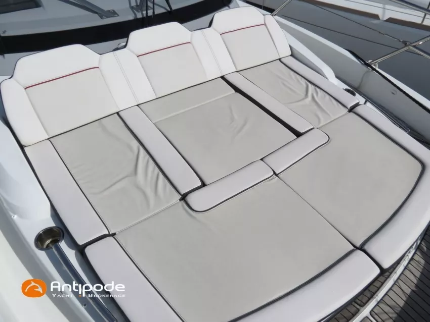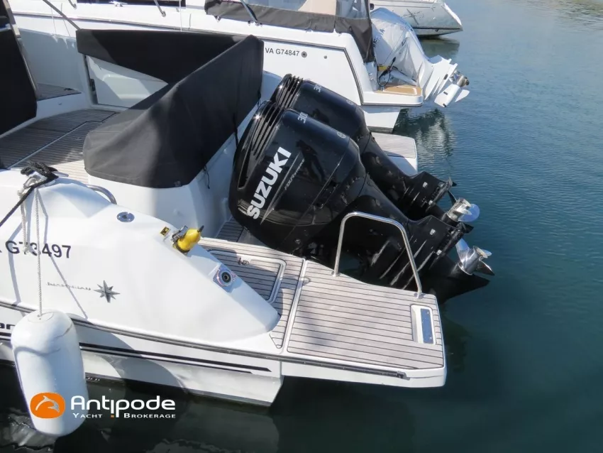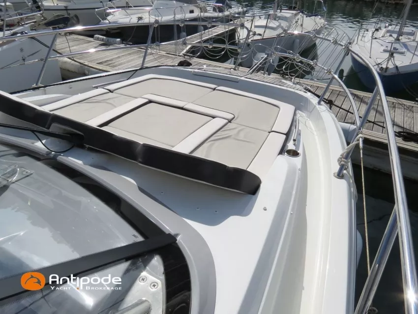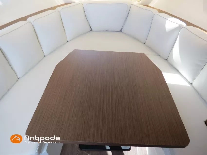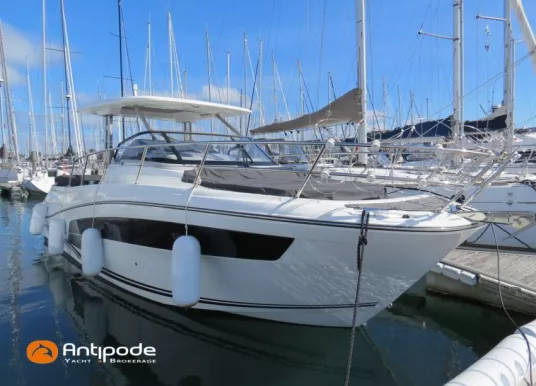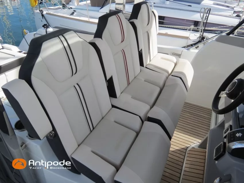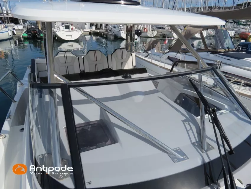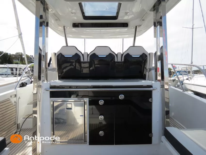 CAP CAMARAT 10.5 WA, 2024, 1ère main, SUZUKI DF300 AP (x2), 2x300 cv (27 h), Propulseur d'étrave, Version S2, Version avec cabine arrière fermée par une porte, Finition Première Silvertex Ice, Selleries carré et cabine PVC Marlin Pure White, Table de carré convertible en couchette double, Moustiquaires de hublots et panneaux de pont, Banquette latérale repliable à babord, Fond de cockpit latté teck, Jupes arrières lattées teck, T-Top cockpit, Selleries de cockpit + taud, Coussins bains de soleil avant + taud, Commande guindeau au poste de pilotage, Plateforme latérale, Mat de ski, Taud de console de cuisine cockpit, Taud de pupitre poste de pilotage, Flaps automatiques Zipwake, GPS / lecteur de carte au poste de pilotage - Garmin GPS Map 923xsv, Cartographie électronique, VHF ASN - Garmin VHF 100, Unité réfrigérante 12 V avec freezer - porte frontale - 80 L, 2 ème unité réfrigérante dans le cockpit - 49 L, Chauffe-eau 220 V, Gazinière 2 feux, Gazinière 1 feu (console cockpit), Lavabo et eau chaude / eau froide dans le cockpit, Four à micro-ondes, Prise de quai 220 V + chargeur de batteries, Prises intérieures 12 & 220 V, Réservoir rigide eaux noires (80 litres), WC électrique, Douchette de cockpit eau chaude / eau froide, Essuie glace et lave glace, Feux de navigations à Leds, Eclairages ambiance intérieurs et exterieur à Leds, Mouillage principal, Amarres et défenses, Visible Bretagne. Pour plus d'informations ou pour fixer un rendez-vous de visite, contact : Jean-Baptiste Lemaire 06 10 25 00 03 - jb@antipode-yachts.com