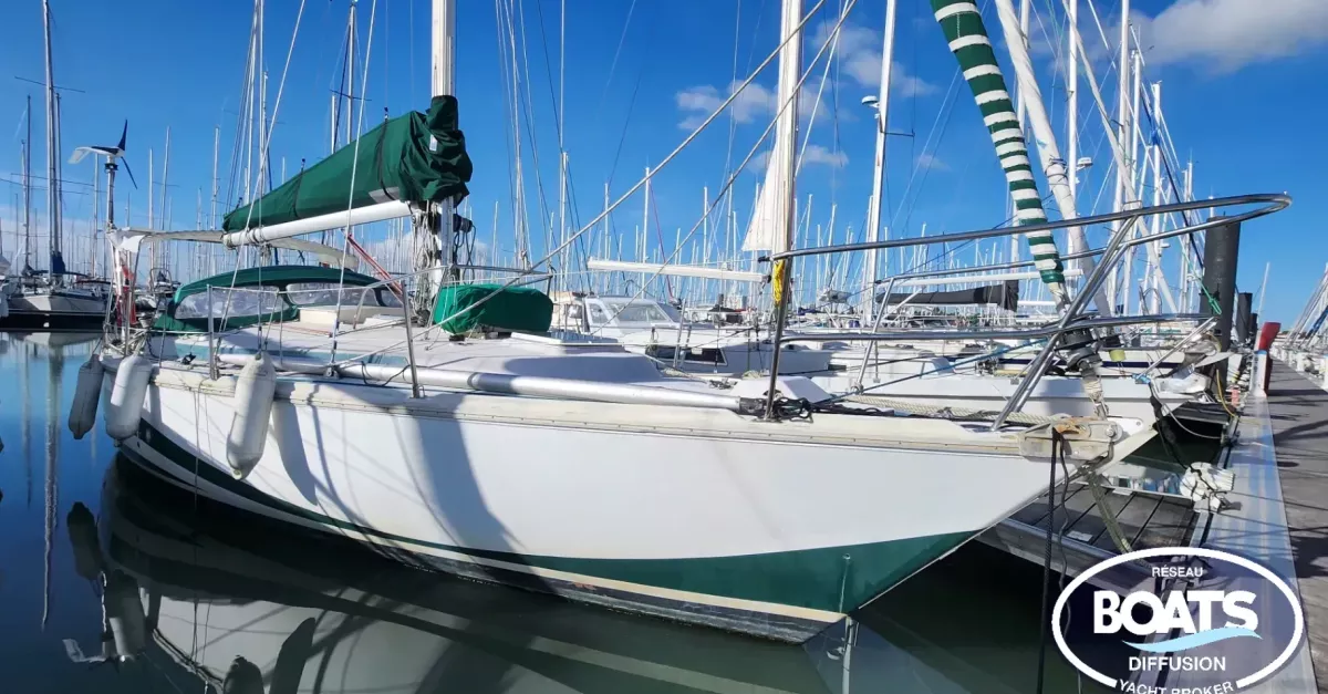 VISIBLE À LA ROCHELLE - CONTACTEZ JEAN-PIERRE OU AUDREY AU 06 09 42 34 55 - Le Gin Fizz de 1979, version à deux cabines, offre un agencement fonctionnel et spacieux. La cuisine en L fait face à une table à cartes avec couchette navigateur attenante. Le carré, particulièrement vaste, peut accueillir jusqu’à cinq couchages. À l’avant, on trouve les WC ainsi qu’une cabine double aménagée dans la pointe. La cabine arrière, totalement indépendante, est accessible par une seconde descente.