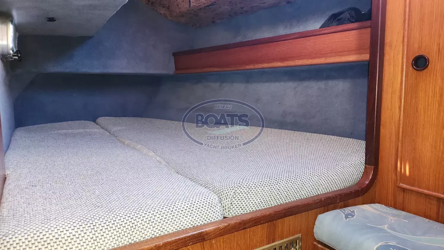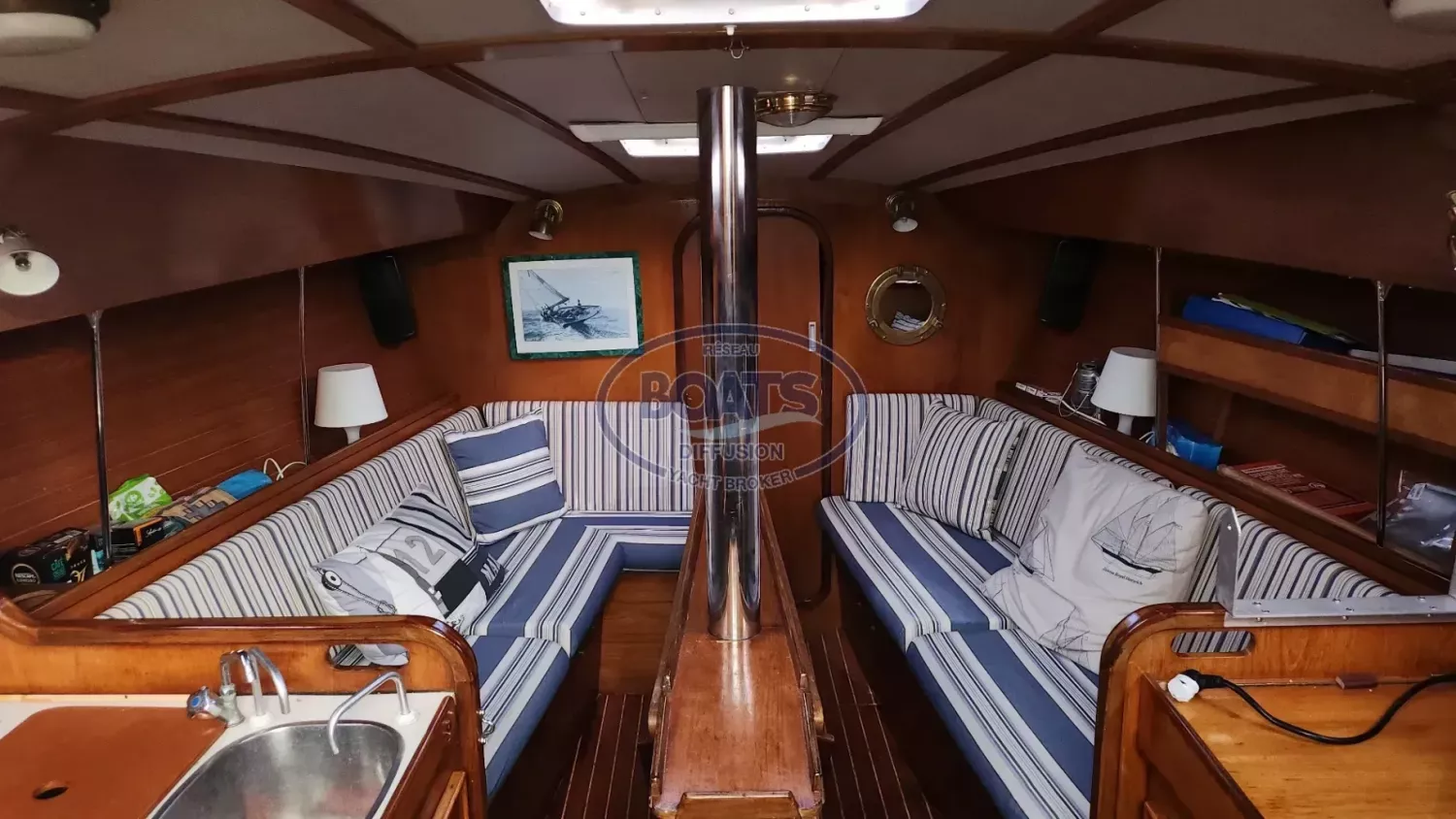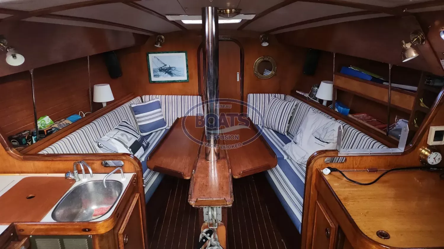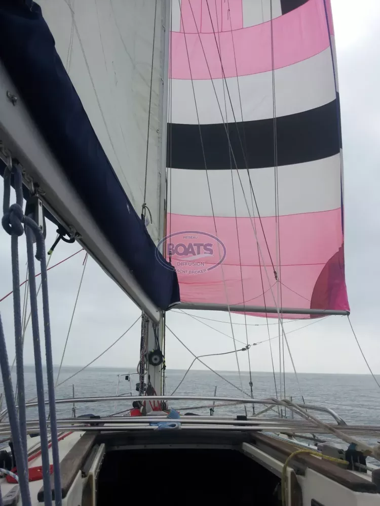 VISIBLE À LA ROCHELLE - CONTACTEZ JEAN-PIERRE OU AUDREY AU 06 09 42 34 55 - europeanboatcourtage@gmail.com - Sun Rise 34, voilier polyvalent, considéré comme l’une des plus belles réussites du chantier Jeanneau - Version dériveur lesté - Aménagements : 3 cabines : une cabine avant et deux cabines arrière décalées - Motorisation : Moteur neuf de 2013 - Révision du circuit de refroidissement et remplacement du coude d’échappement en 2024 - Travaux et entretiens réalisés : Remplacement du tube d’étambot et de la bague de safran en 2015 ; Remplacement de la cuisinière à gaz en 2014 ; Remplacement des hublots latéraux et des plexiglas de capots ouvrants en 2016 ; Traitement curatif de l’osmose et traitement de la quille « saumon » en 2018 ; Remplacement du presse-étoupe en 2024 ; Réfection des coussins du carré en 2024 ; Révision de la grand-voile et du lazy-bag en 2024 ; Dernier carénage effectué en mai 2025.