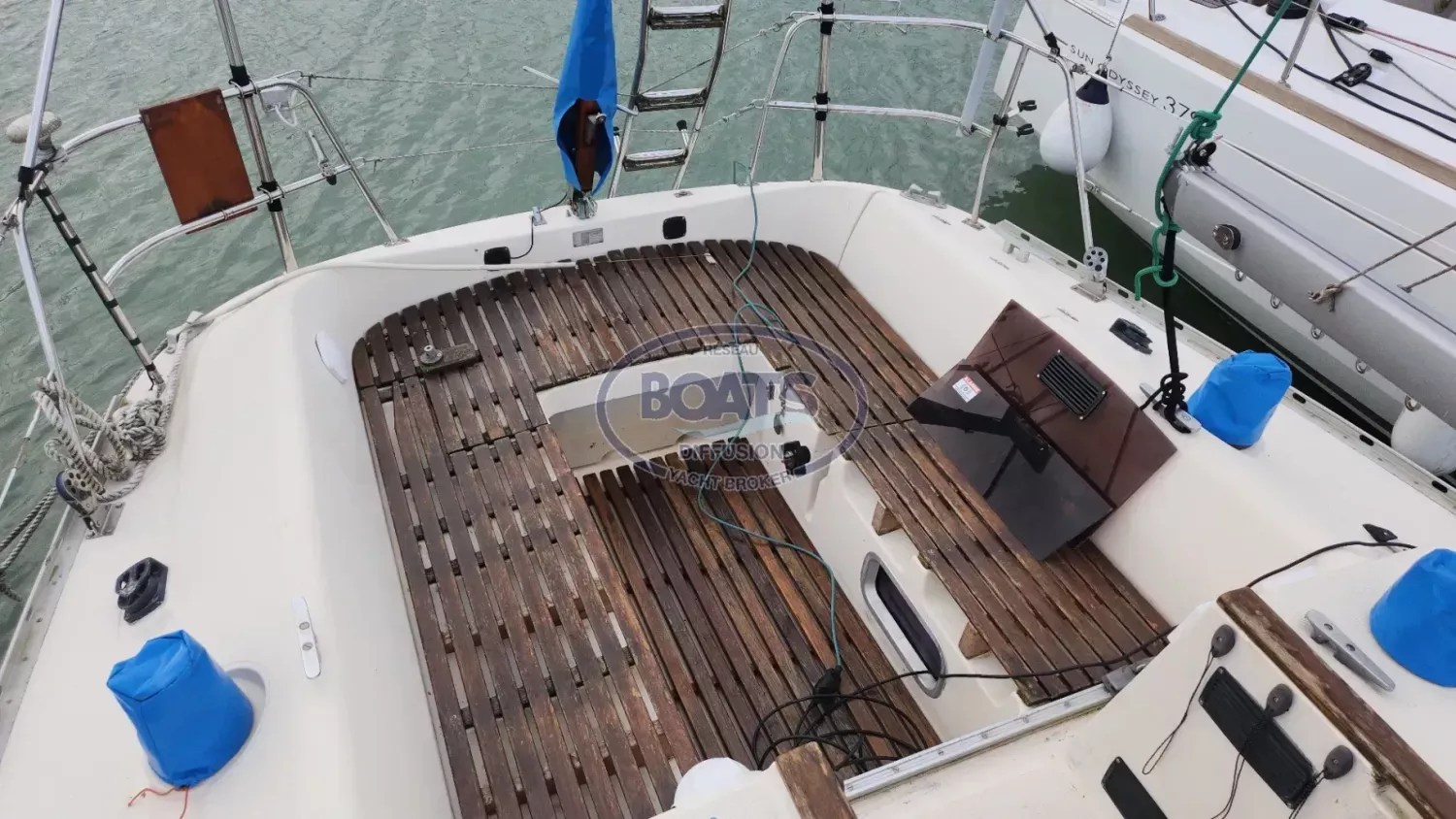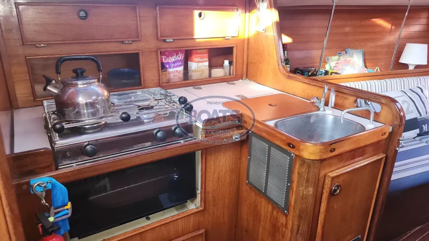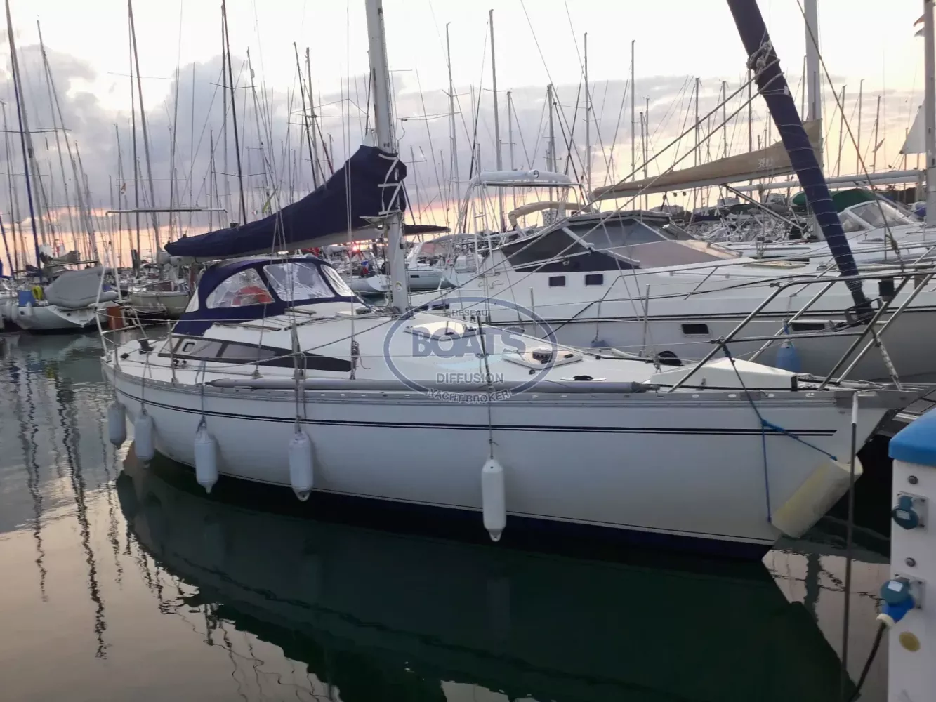 VISIBLE À LA ROCHELLE - CONTACTEZ JEAN-PIERRE OU AUDREY AU 06 09 42 34 55 - europeanboatcourtage@gmail.com - Sun Rise 34, voilier polyvalent, considéré comme l’une des plus belles réussites du chantier Jeanneau - Version dériveur lesté - Aménagements : 3 cabines : une cabine avant et deux cabines arrière décalées - Motorisation : Moteur neuf de 2013 - Révision du circuit de refroidissement et remplacement du coude d’échappement en 2024 - Travaux et entretiens réalisés : Remplacement du tube d’étambot et de la bague de safran en 2015 ; Remplacement de la cuisinière à gaz en 2014 ; Remplacement des hublots latéraux et des plexiglas de capots ouvrants en 2016 ; Traitement curatif de l’osmose et traitement de la quille « saumon » en 2018 ; Remplacement du presse-étoupe en 2024 ; Réfection des coussins du carré en 2024 ; Révision de la grand-voile et du lazy-bag en 2024 ; Dernier carénage effectué en mai 2025.