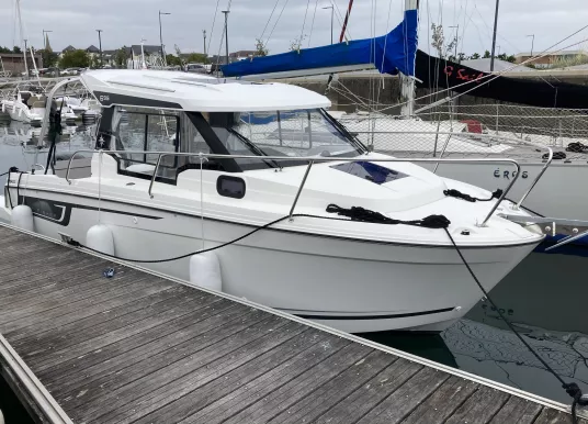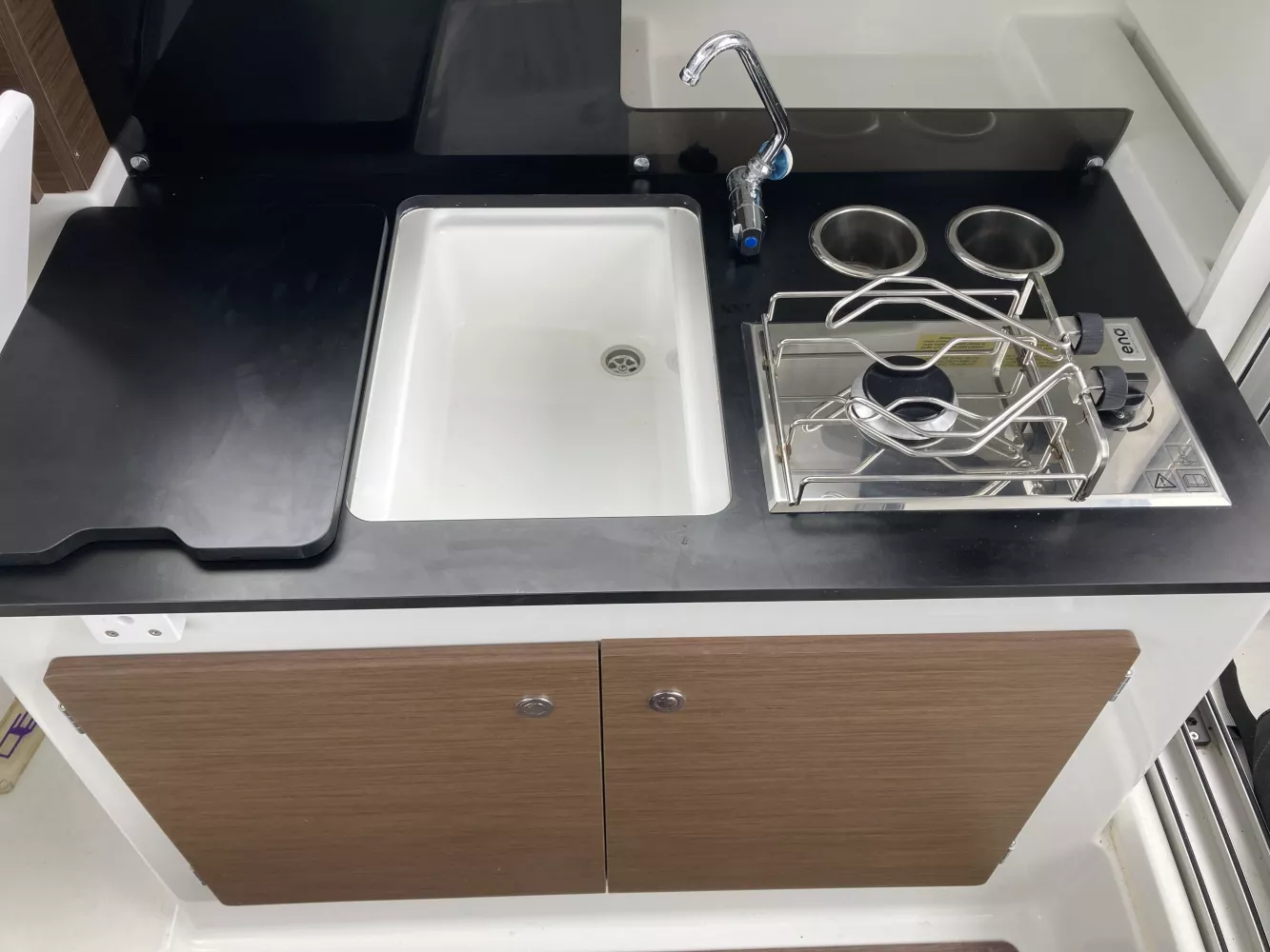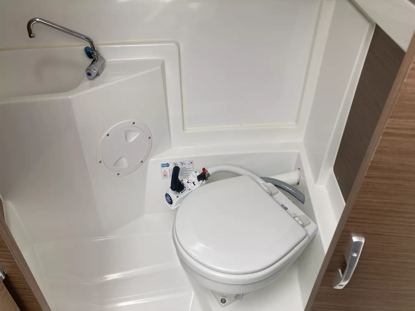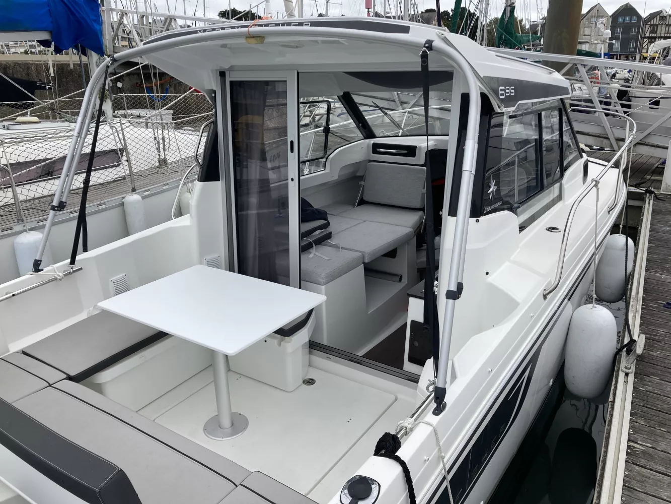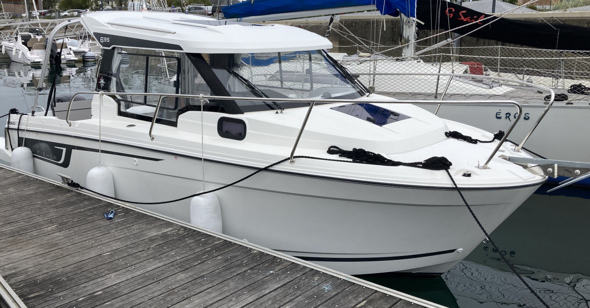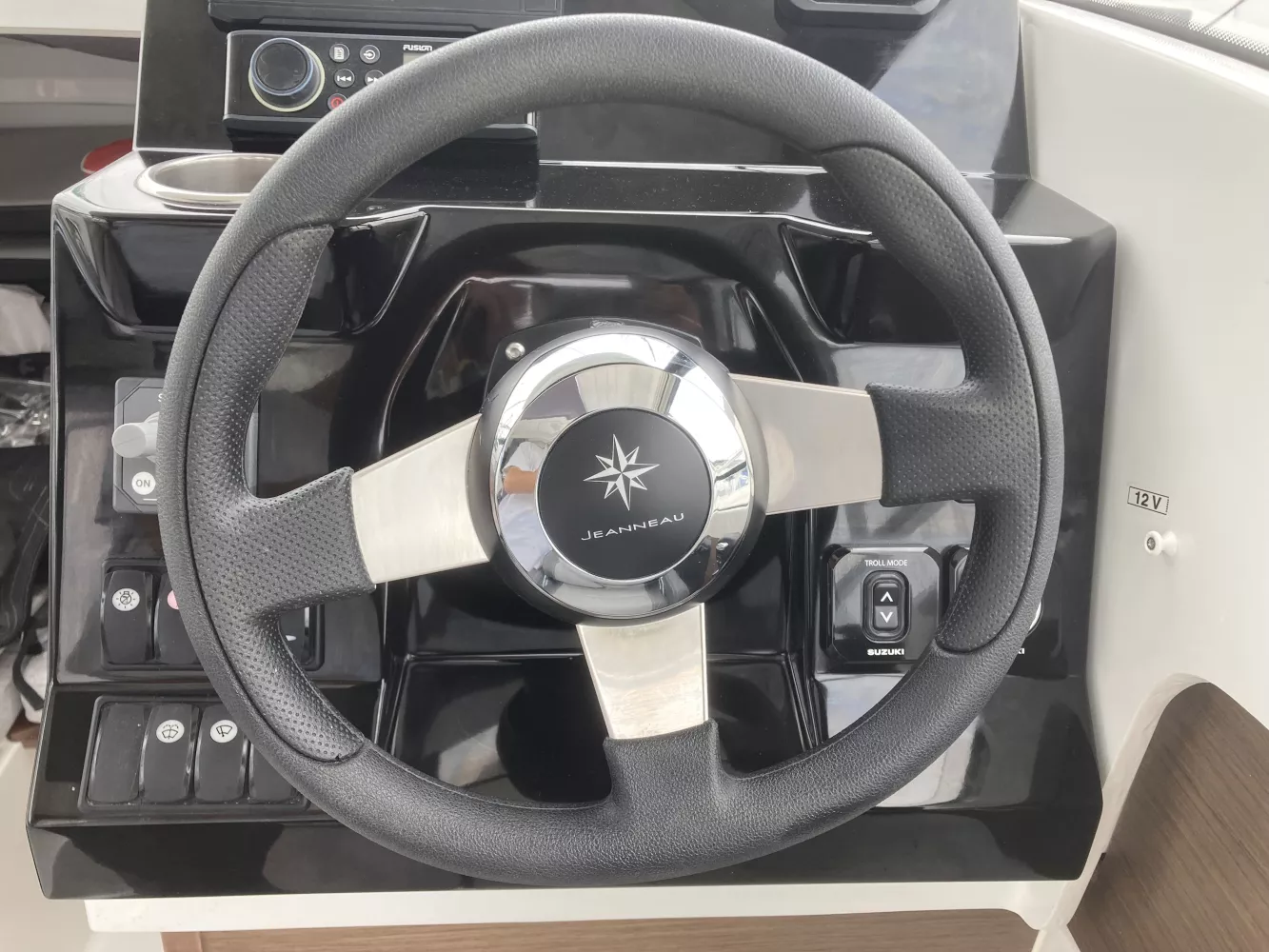 Version avec compartiment fermé et hublot avant // Finition Première // Pack électronique GARMIN // Pack audio FUSION RA70N // Guindeau électrique // Carré de cockpit en U transformable en bain de soleil // Taud de soleil de cockpit // Plateformes de bain // Propulseur d’étrave // Pack circuit eau douce // Cuisine luxe // Réchaud gaz // Couchage carré + cabine // Rideaux intérieurs de timonerie // WC marin avec réservoir à eaux noires // Circuit lave-glaces.