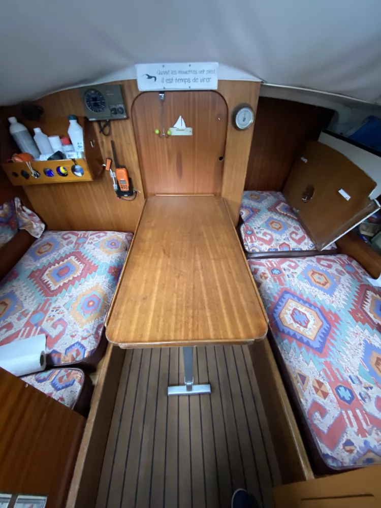 Sangria visible au port du Crouesty (Sur ber jusqu'au 1° novembre puis à flot). Carénage réalisé en Octobre 2025. GV restaurée en 2024, Génois sur enrouleur RAS, spi symétrique à chaussette RAS, trinquette sur étai largable RAS, gréement dormant très bon état, VHF fixe distress neuve (enregistré MMSI), antenne inox neuve, anémomètre clipper neuf, feux de mouillage, de route, sondeur, VHF portable, annexe, moteur hors bord 8ch révision faite et turbine de refroidissement remplacée en septembre 2025, winch inox Andersen 18 entretenus , pilote automatique, 35 mètres de mouillage en 8, division 240 OK pour sa catégorie, etc
