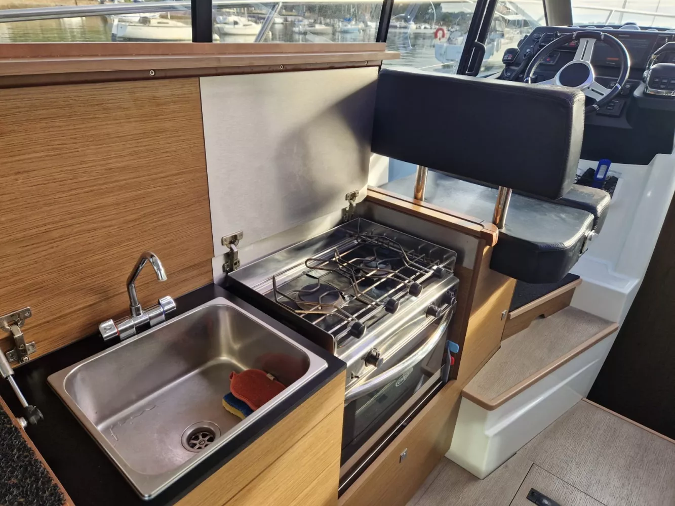 Bateau idéal pour 10 personnes afin de profiter de sorties entre amis ou en famille à la journée. Il offre la possibilité à 6 personnes de dormir à bord. Parfaitement équipé, il vous offrira un confort optimal pour vos sorties.