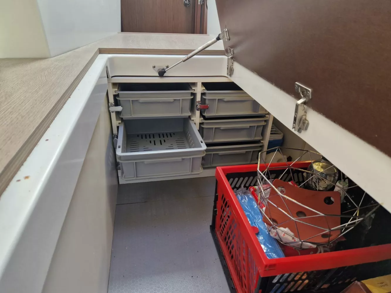 OPTIONS INCLUS : COQUE GRISE – GPS / SONDEUR TRACEUR RAYMARINE ES97 – VHF FIXE NAVICOM RT550 AIS – GUINDEAU ELECTRIQUE + COMMANDE – FLAPS ELECTRIQUE – ECLAIRAGE DE COCKPIT ET DE PASSAVANT – CIRCUIT 220 V – WC ELECTRIQUE SUR EAU DE MER – COMPLEMENT DE COUCHAGE DANS LE CARRE – DOUCHETTE DE COCKPIT – ECHELLE DE BAIN – PLATEFORME DE BAIN – POMPE DE CALE ELECTRIQUE – RÉSERVOIRS D’EAU 160 L – RÉSERVOIRS DE CARBURANT 300 L – PRISE D’EAU DOUCE DE QUAI – KIT DE FERMETURE ARRIERE COMPRENANT L’OTPION CASQUETTE DE COCKPIT – COUSSIN DE BAIN DE SOLEIL AVANT – PROPULSEUR D’ETRAVE – PROJECTEUR DE PONT – FOND DE COCKPIT LATTE TECK – ARMEMENT COTIER