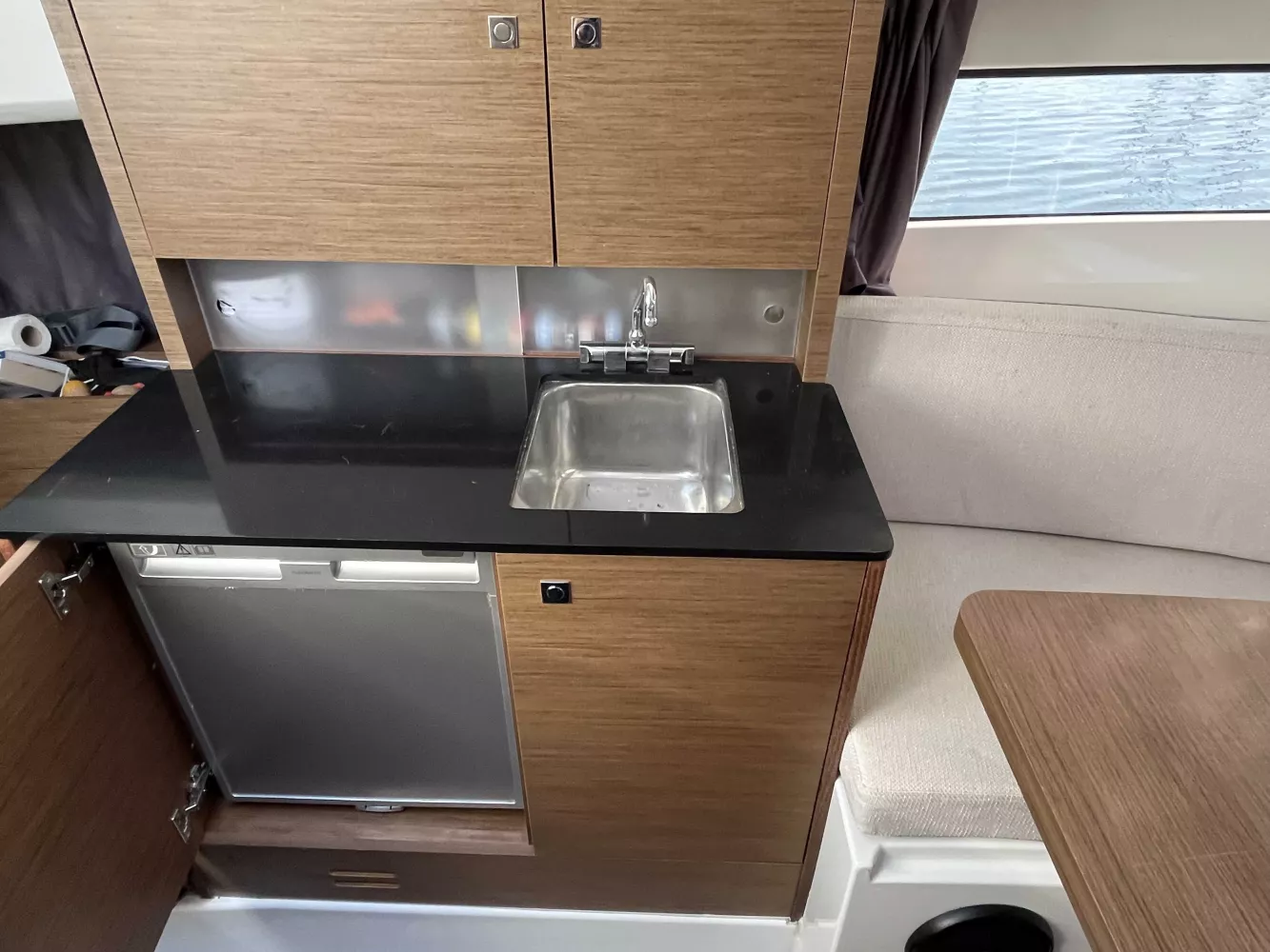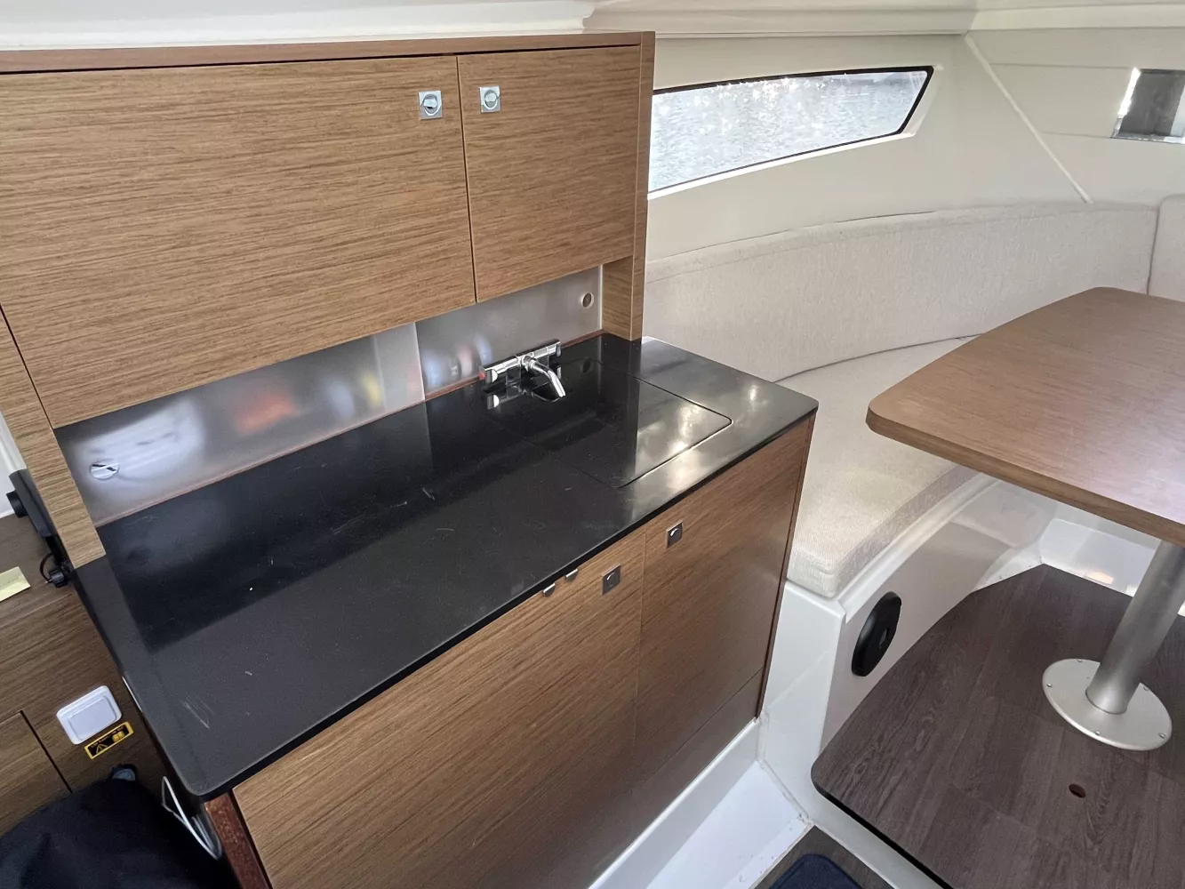 - Finition 1ère : Guindeau électrique, Évier dans la cuisine intérieure, Réfrigérateur intérieur 65L, Pack ambiance (éclairage intérieur & extérieur à Leds), Douchette de cockpit, Panneau de pont ouvrant.