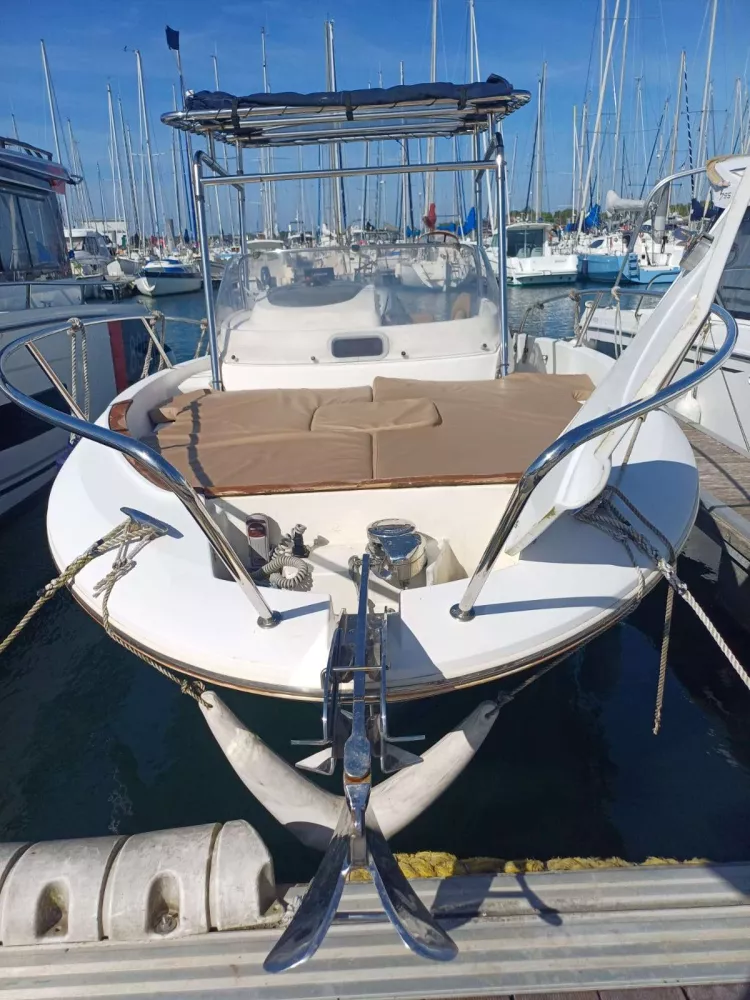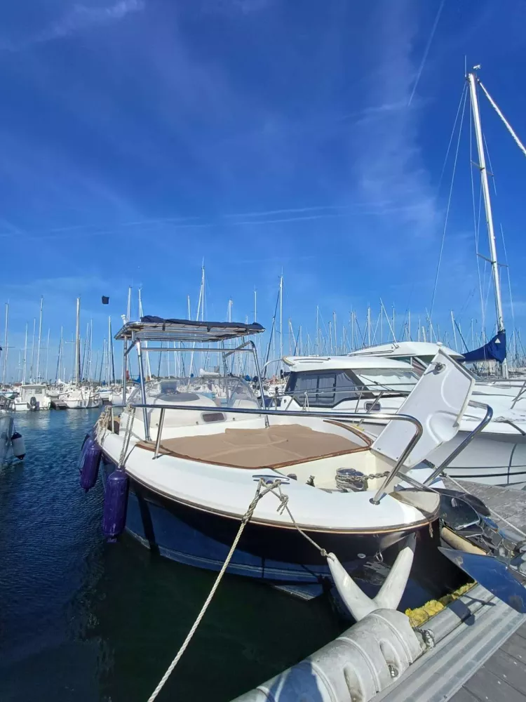 Longueur de coque : 6.98 m Longueur HT : 6.95 m Largeur : 2.54 m Tirant d'eau : 0.49 m Capacité carburant : 280 L Moteur : Hors-Bord HONDA 225 CV Catégorie : C