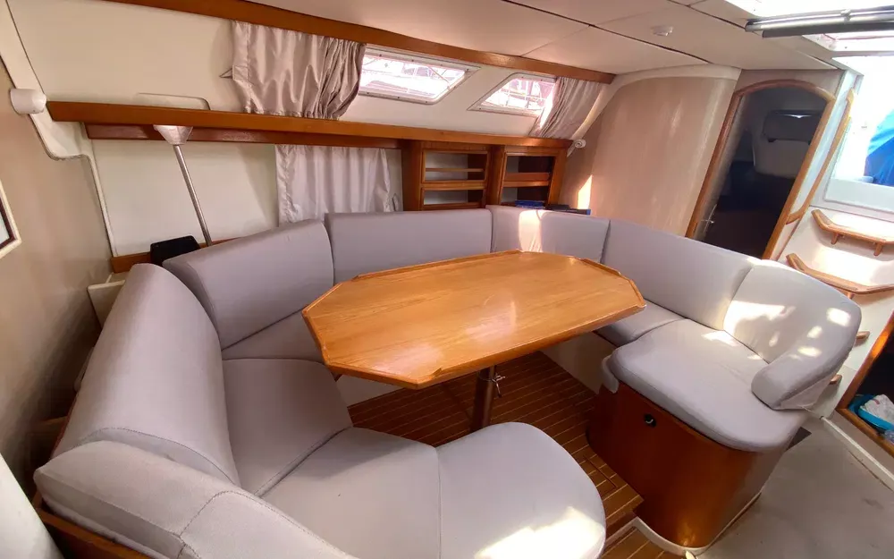 Ce voilier dispose de 3 cabines et 6 couchages, ainsi que 2 salles de bain, vous garantissant l’intimité et le bien-être à bord, même lors de longues navigations. L’aménagement intérieur comprend un vaste carré lumineux, une cuisine équipée (évier, réfrigérateur, four, gazinière, nombreux rangements), ainsi qu’une grande table à carte pour préparer sereinement vos traversées.